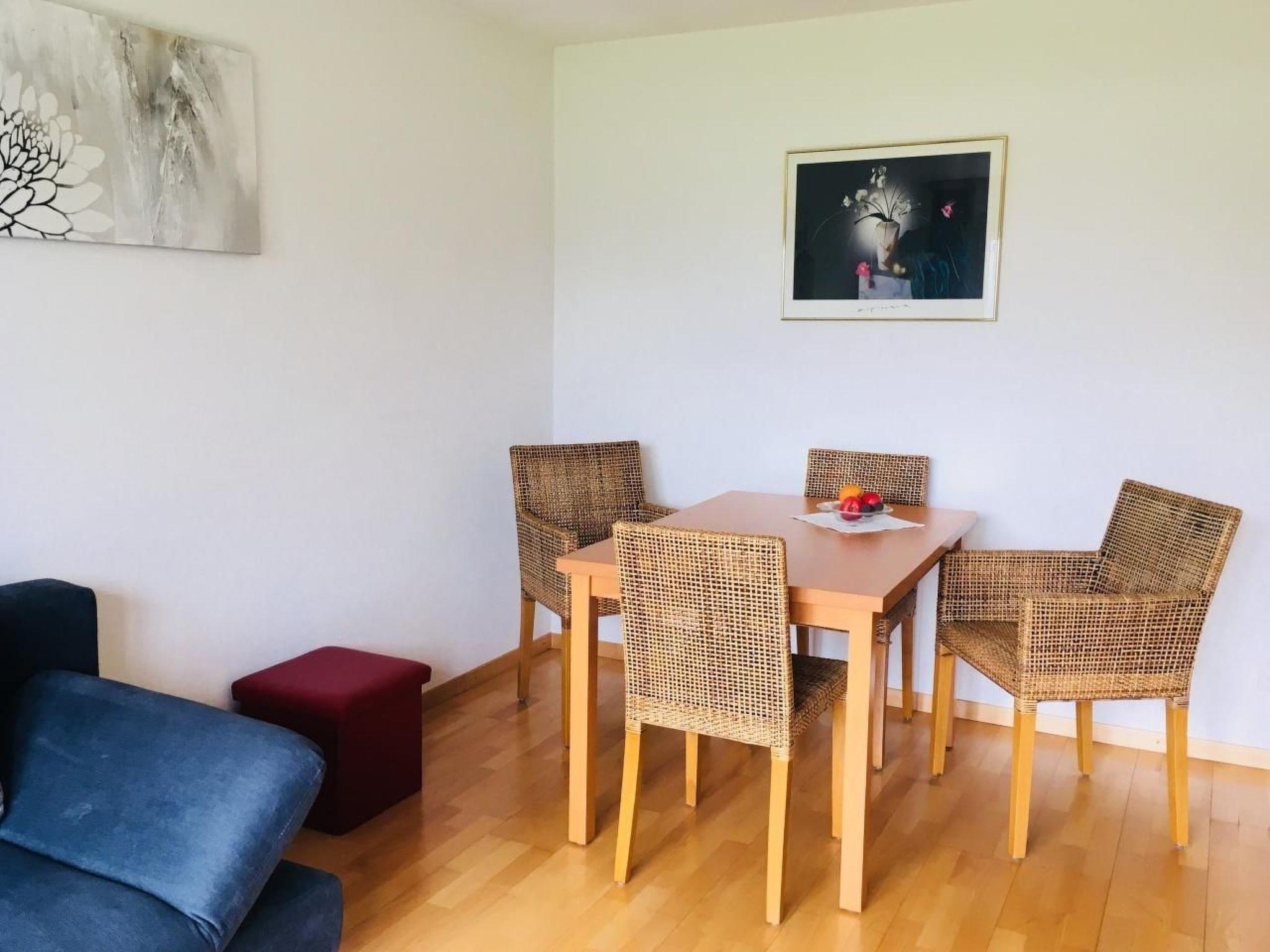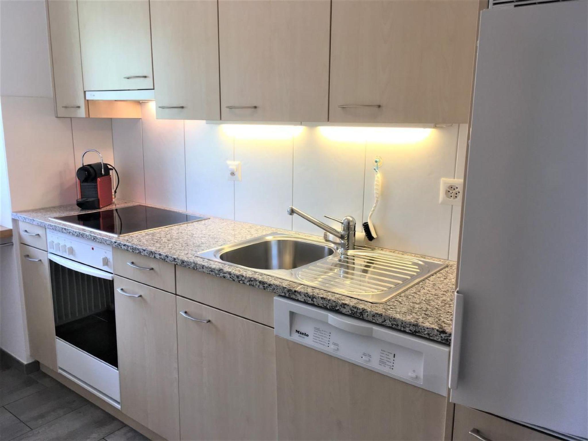 The 2-room apartment (42 m2) is on the 1st floor. The apartment is new, modern and comfortably furnished. In the bedroom there is a double bed (180x200). In the living-dining room the sofa can also be used as a bed, flat screen TV and radio. The kitchen is easy to clean in maple decor and has a granite cover with a glass ceramic stove, oven, refrigerator and Nespresso coffee maker. The living room and bedroom have parquet flooring. The bathroom is equipped with shower/WC/avabo. Bed linen and towels are available.