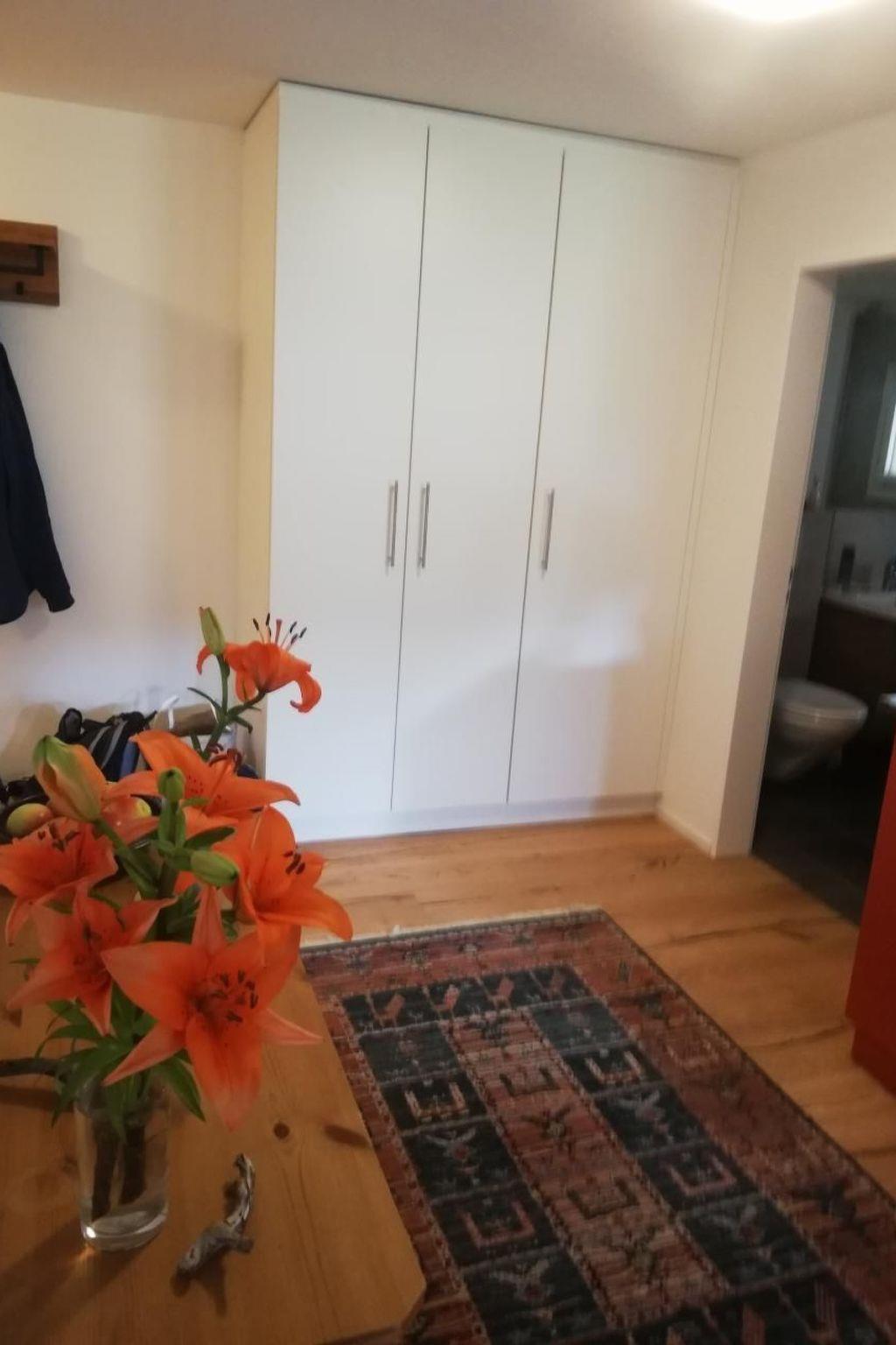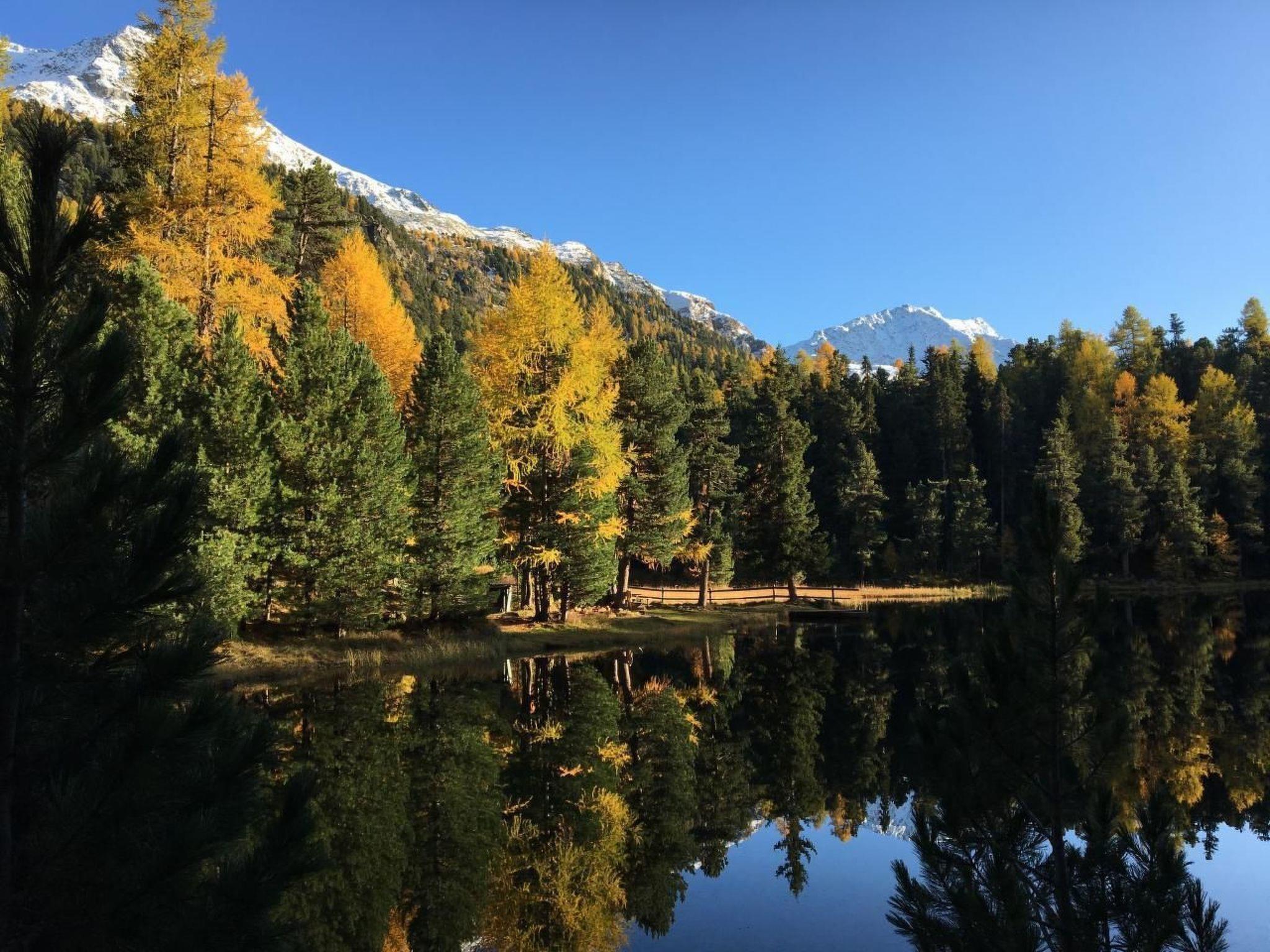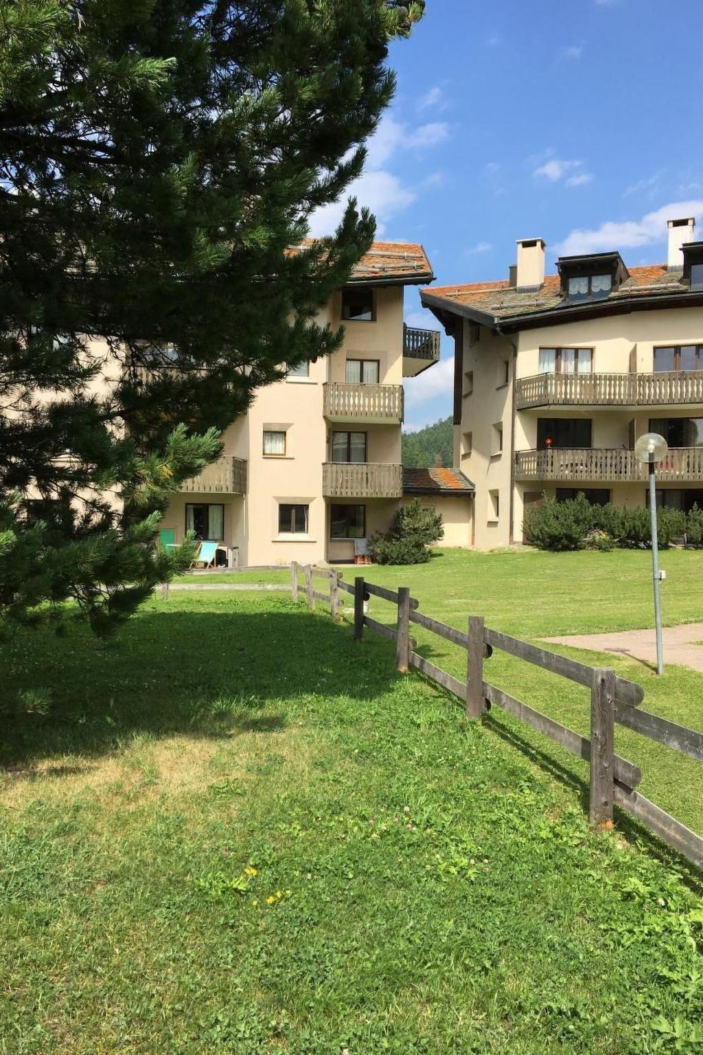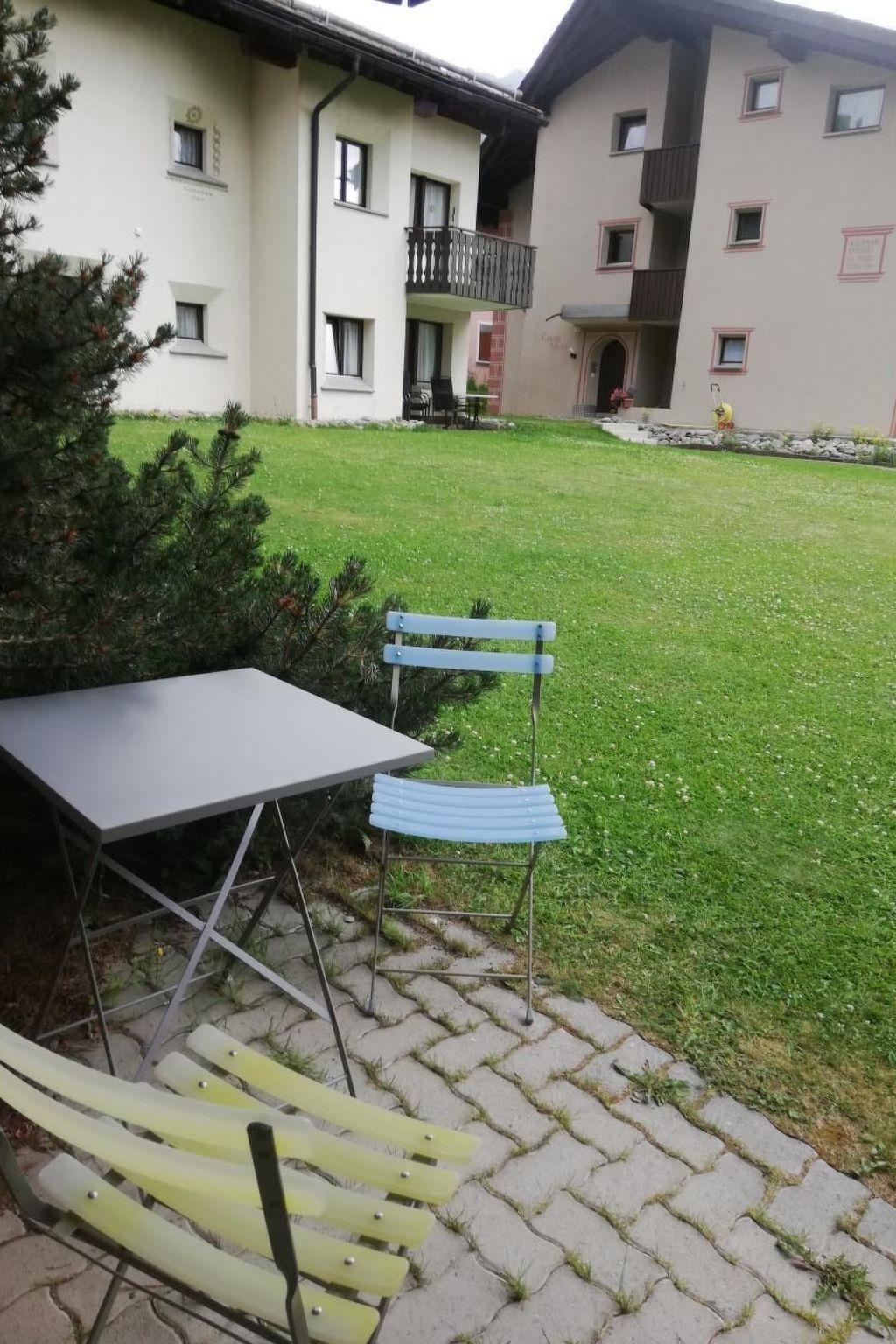 Beautiful, modern renovated, spacious studio (38m2) despite ground floor bright, with lots of charm and comfortably furnished. Very quiet location - in the middle of the wonderful lake landscape of the Upper Engadin. Only 5 minutes walk to bakery/coffee shop, bus, cross-country trail and hiking trails, 10 minutes to the ski lift and restaurants. Ideal starting point for skiing on Corvatsch/Furtschellas and cross-country skiing, hiking or biking. Good connection to the bus network of the Upper Engadin. Living room with double bed (160x200cm), TV/radio/WiFi, long chaise. Open, generously furnished kitchen with dining table. Stylish bathroom with bathtub/shower. Washing machine/tumbler and ski-/bike-room available in the house. Own parking place in the underground car park. Seat with deckchairs and direct access to the green area of the settlement. Pets not allowed. Non-smoking apartment.