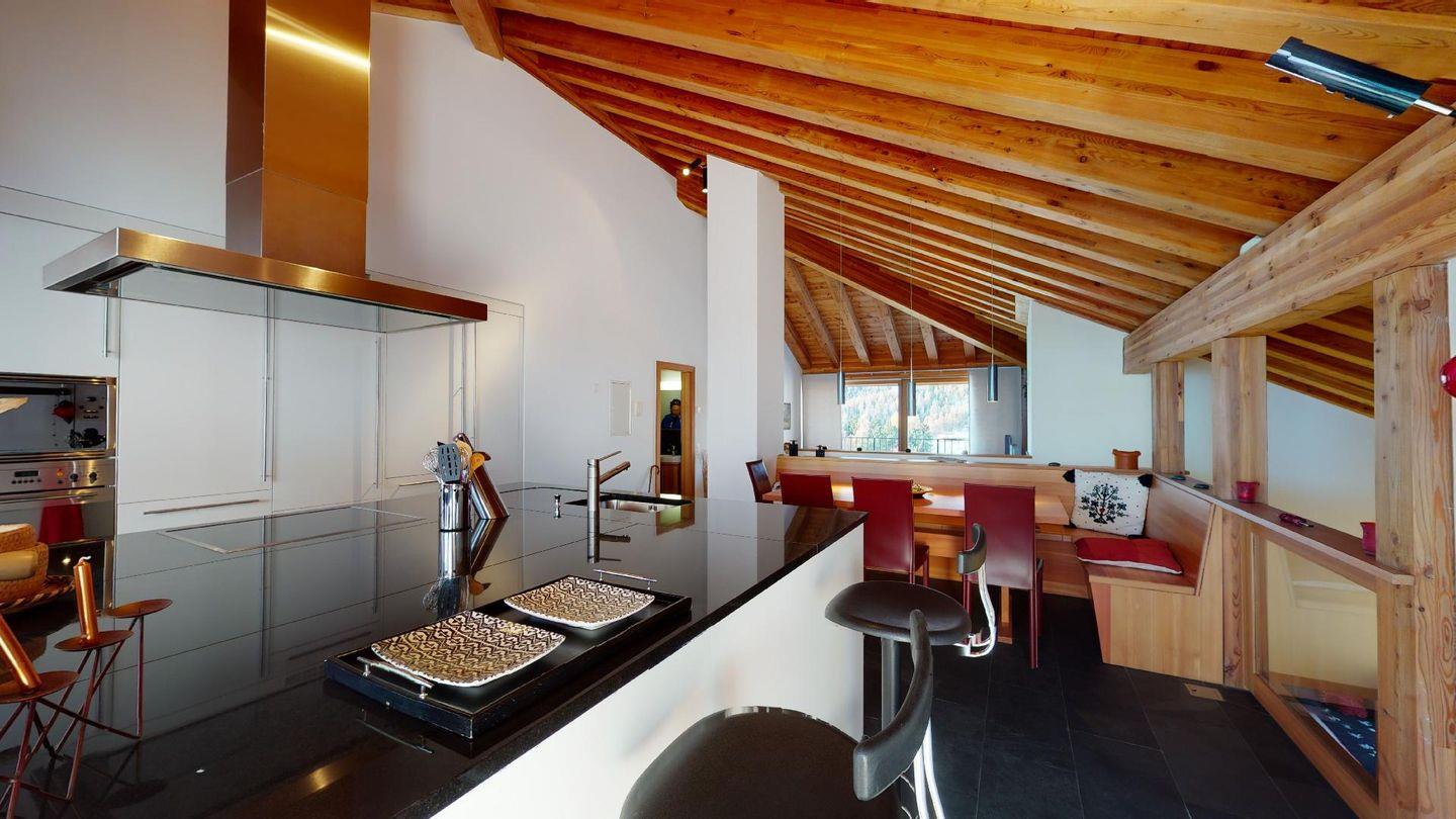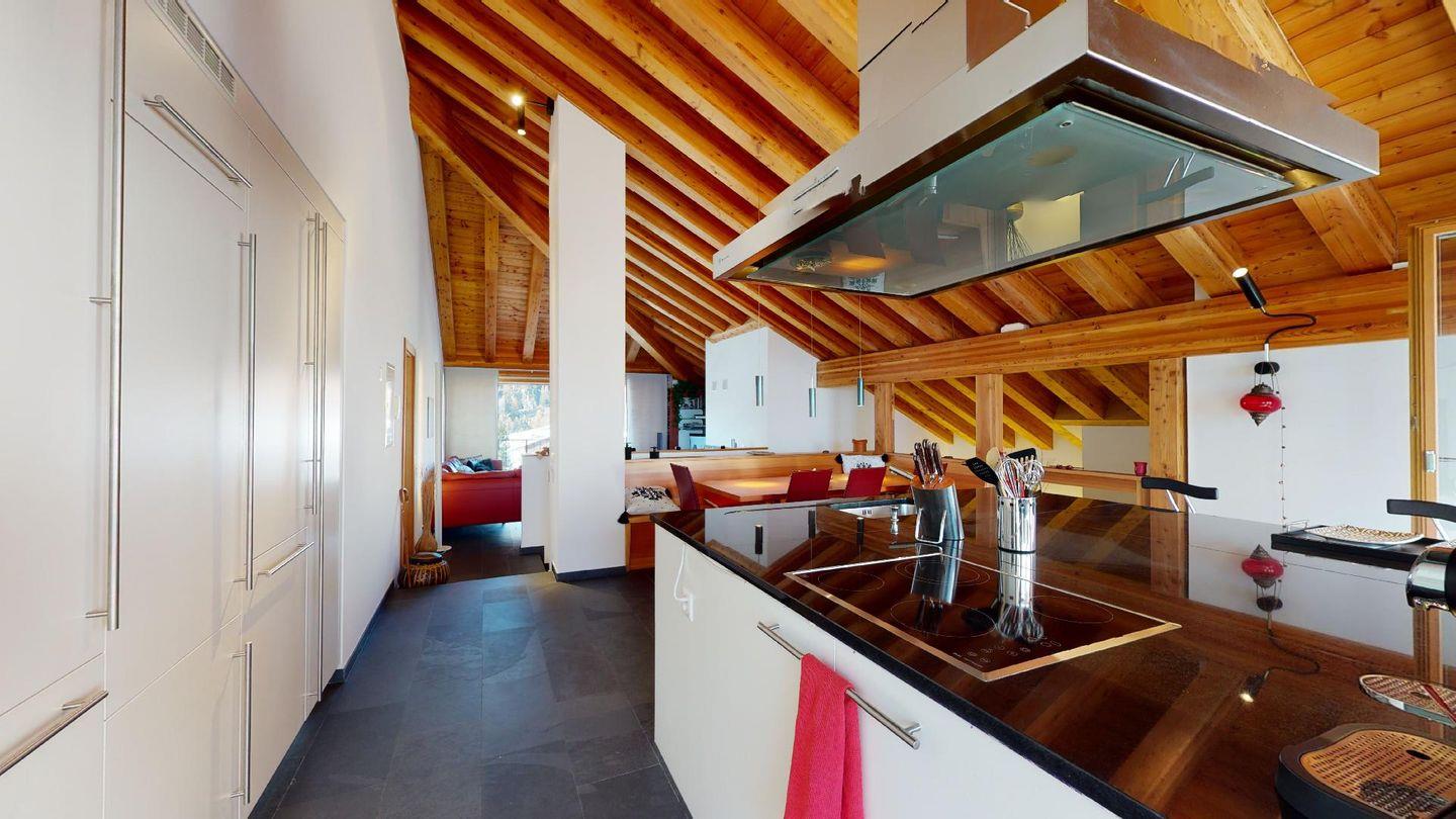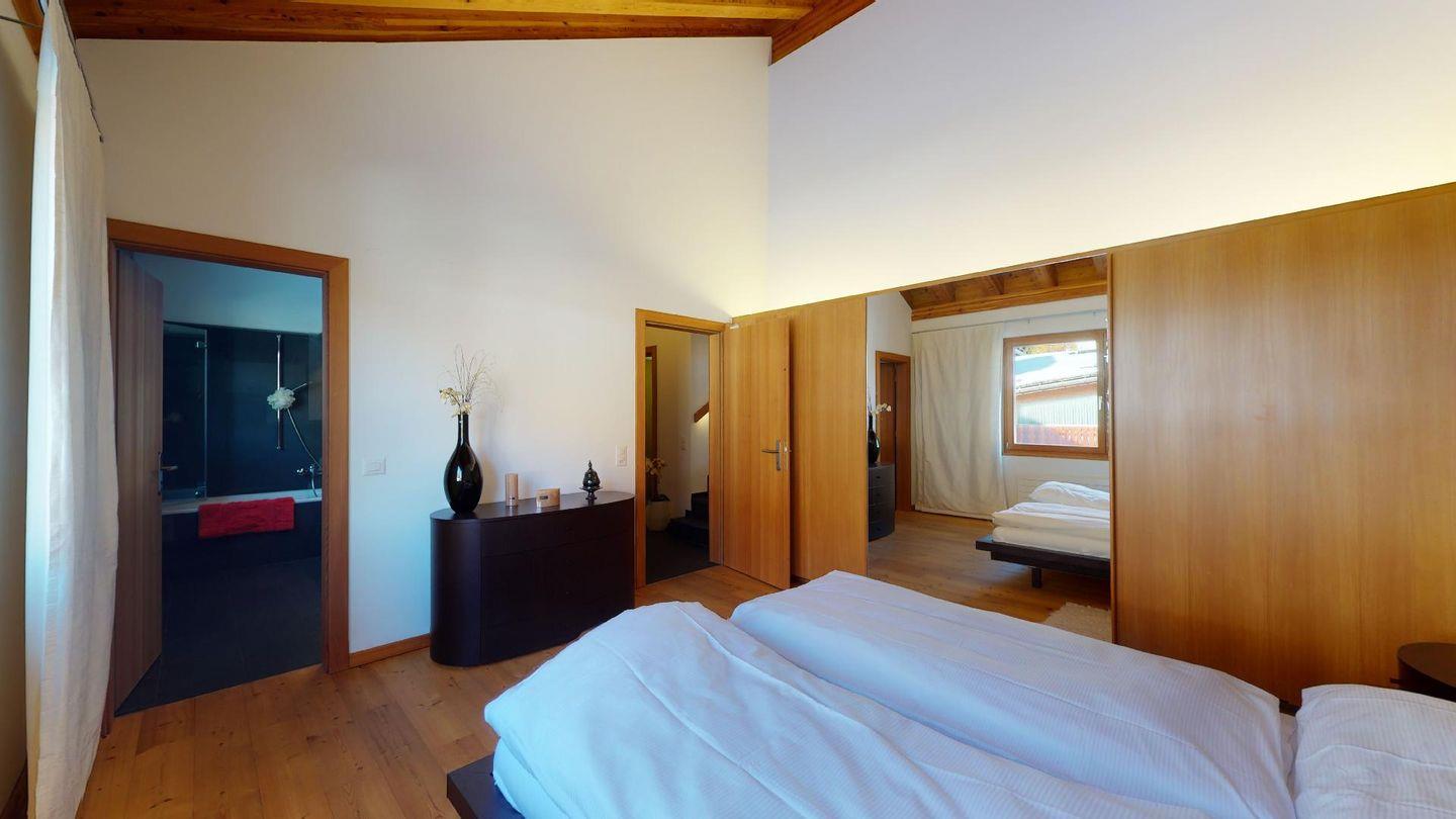 Grosse 3-½ Zimmermaisonette Wohnung im 2. Stock. Eingang mit grosser Garderobe. Ein Doppelschlafzimmer mit eigenem Badezimmer. Ein Schlafzimmer mit zwei Einzelbetten und zwei Hochbetten. Badezimmer mit Dusche. Obere Etage mit offener Küche mit Kühlschrank, Tiefkühler, Herd, Ofen, Mikrowelle und Geschirrspüler, Essecke sowie Balkon. Wohnzimmer mit TV und Kamin. Gemeinschaftliche Waschmaschine. 2 Parkplätze in der Tiefgarage. Haustiere sind nicht erlaubt.