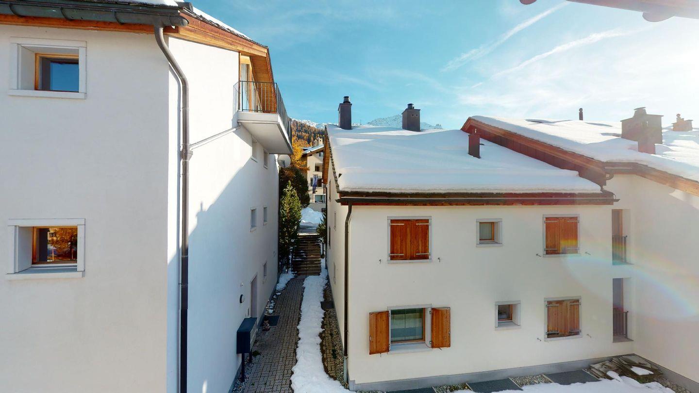 Das Haus befindet sich kurz vor dem Skiservice Corvatsch in Surlej.