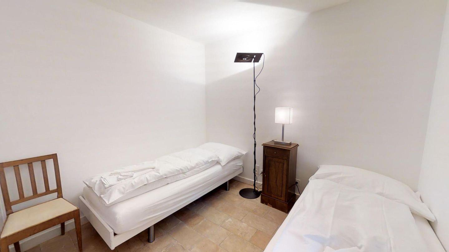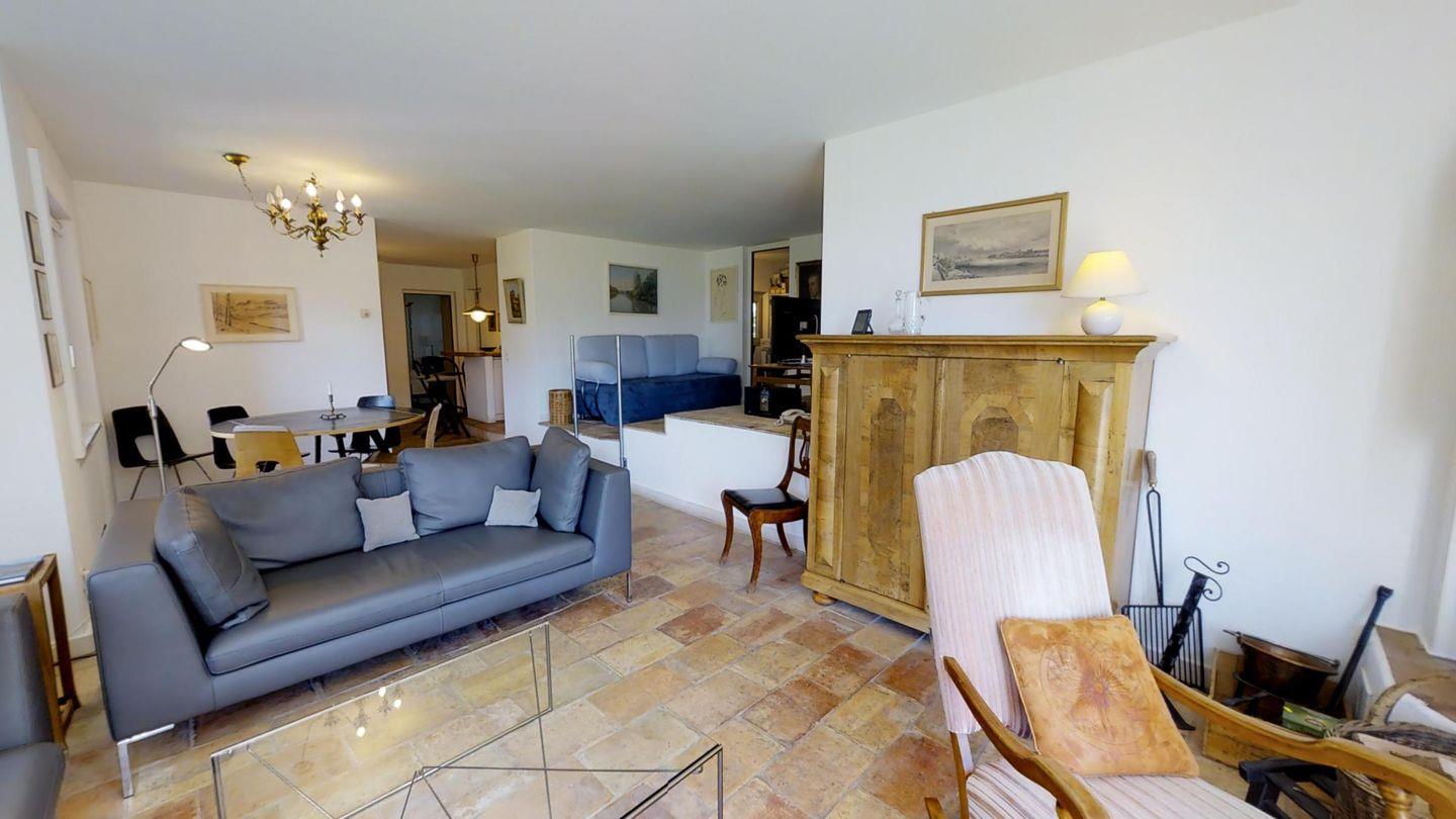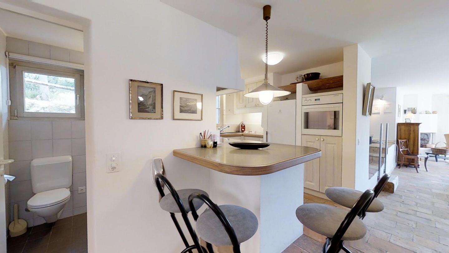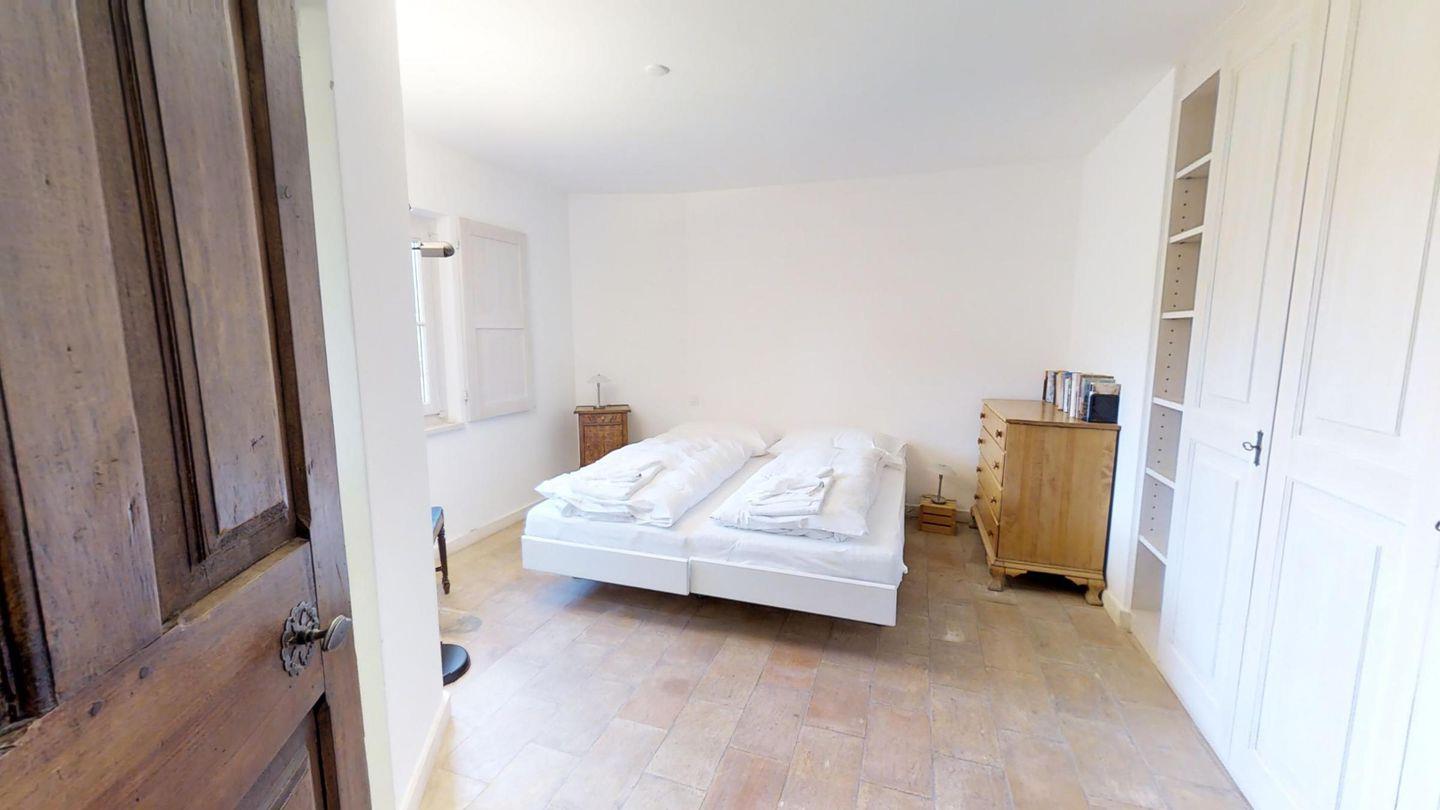 Einzigartige 3 ½ -Zimmerwohnung im Erdgeschoss. Ca. 120 m2, an sehr sonniger und ruhiger Lage direkt am Waldrand. Eingang mit Garderobe. 1 Doppelschlafzimmer mit Bad/Doppellavabo/WC. 1 Zimmer mit zwei separaten Betten. Dusche/WC/Lavabo. Offene Küche mit Backofen, Kühlschrank, Tiefkühler und Geschirrspüler. Kaffeemaschine CHICCO D'ORO. Gemütliches und helles Wohn-/Esszimmer mit Kamin und direktem Ausgang zum Garten. Einzigartige Berg- und Seesicht. Abstellraum mit Waschmaschine und Tumbler. 2 Garagenplätze. Haustiere sind erlaubt.