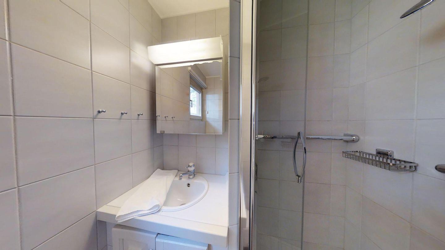 Einzigartige 3 ½ -Zimmerwohnung im Erdgeschoss. Ca. 120 m2, an sehr sonniger und ruhiger Lage direkt am Waldrand. Eingang mit Garderobe. 1 Doppelschlafzimmer mit Bad/Dusche(Doppellavabo/WC. 1 Zimmer mit zwei separaten Betten. Dusche/WC/Lavabo. Offene Küche mit Backofen, Kühlschrank, Tiefkühler und Geschirrspüler. Kaffeemaschine CHICCO D'ORO. Gemütliches und helles Wohn-/Esszimmer mit Kamin und direktem Ausgang zum Garten. Einzigartige Berg- und Seesicht. Abstellraum mit Waschmaschine und Tumbler. 2 Garagenplätze und Aussenparkplätze für Besucher sind ebenfalls vorhanden. Haustiere sind erlaubt.