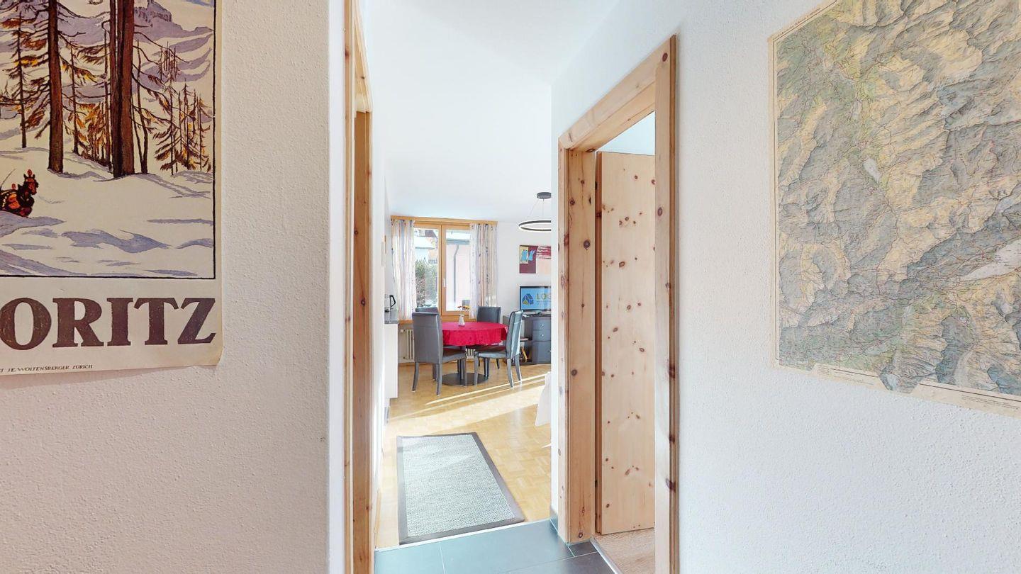 Helle 2-Zimmerwohnung mit ca. 45m2 im 1. Stock (2. Halbgeschoss), in ruhiger Lage in Surlej nahe der Corvatschbahn. Entrée mit Arven Garderobenschrank. Geräumiges Wohnzimmer (Parkettboden) mit rundem Esstisch für 4 Personen, 2 Sessel sowie einem Schlafsofa (140x200). Sideboard mit Radio und Flachbild TV, direkter Ausgang zum Balkon Richtung Süden mit Bergsicht. Neue Küche mit 4 Herdplatten, Backofen, Geschirrspülmaschine, Wasserkocher und Chicco d`Oro Kaffeemaschine. Fondue und Raclette-Ofen vorhanden. Schlafzimmer (Parkettboden) mit Doppelbett (2 Matratzen 90x190), Einbauwandschrank in Arvenholz, Fenster mit Blick Richtung Süden. Neue renoviertes Badezimmer (2016) mit Badewanne / WC / Lavabo. Waschmaschine und Skiraum zur Mitbenutzung. Kein Veloraum. Aussenparkplatz. Nichtraucherwohnung. Haustiere sind nicht erlaubt.