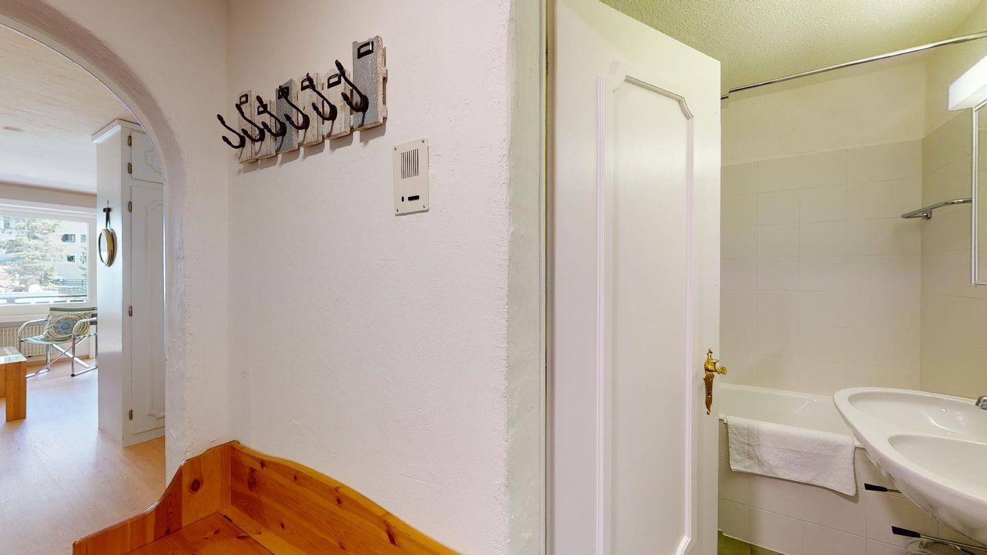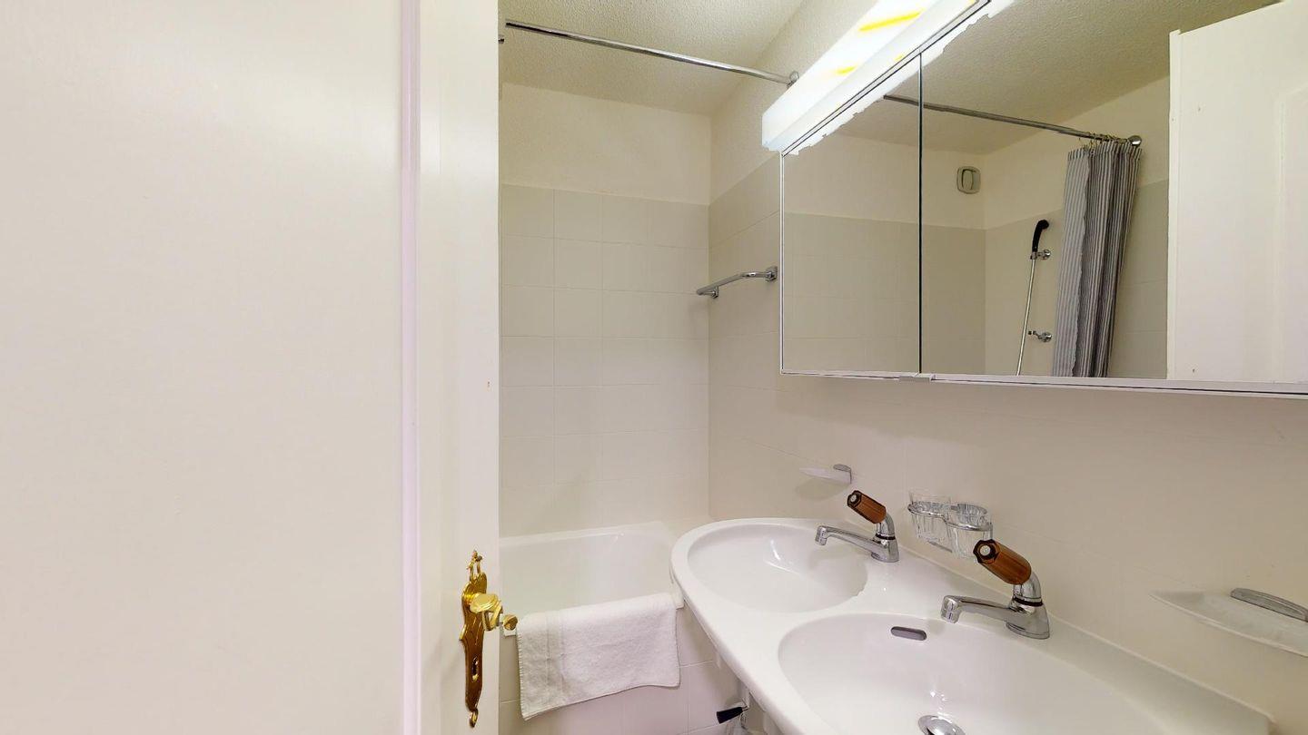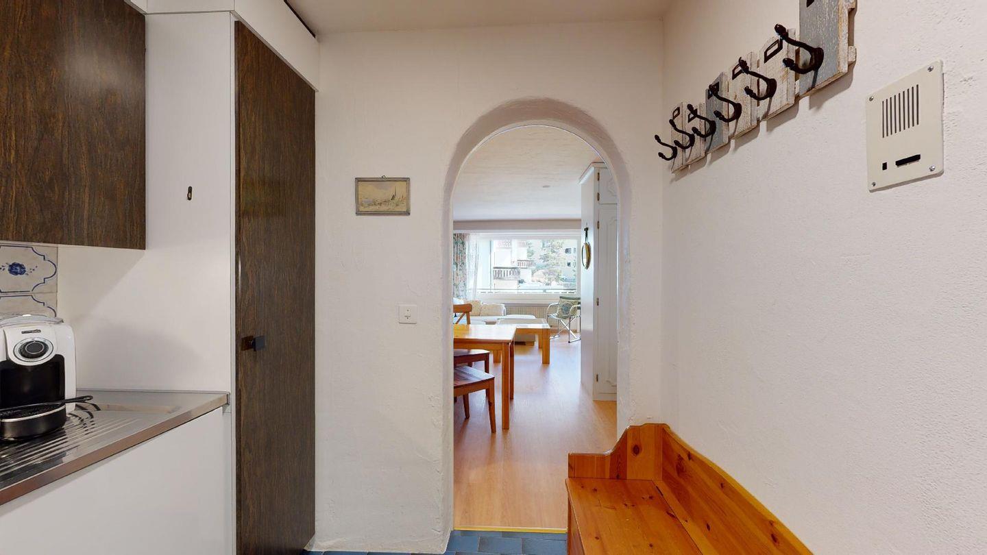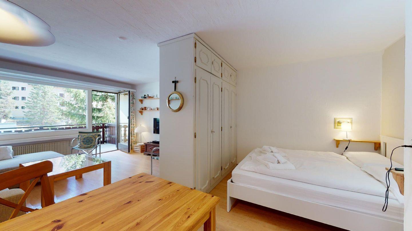 1-Zimmerwohnung im 1. Stock, ca. 40 m2, an ruhiger, sonniger Südlage. Entree mit Kochnische, Kühlschrank und Backofen. CHICCO D'ORO Kaffeemaschine. Hübsches Wohn-/ Esszimmer mit abgetrenntem Schlafbereich. Schöne Bergsicht. Terrasse mit Liegestühlen. Radio, Fernseher, Internet und Telefon. Bad/WC/Lavabo. Komfortable Einrichtung. 1 Aussenparkplatz. Waschküche und Skiraum zur Mitbenützung. Haustiere sind nicht erlaubt.