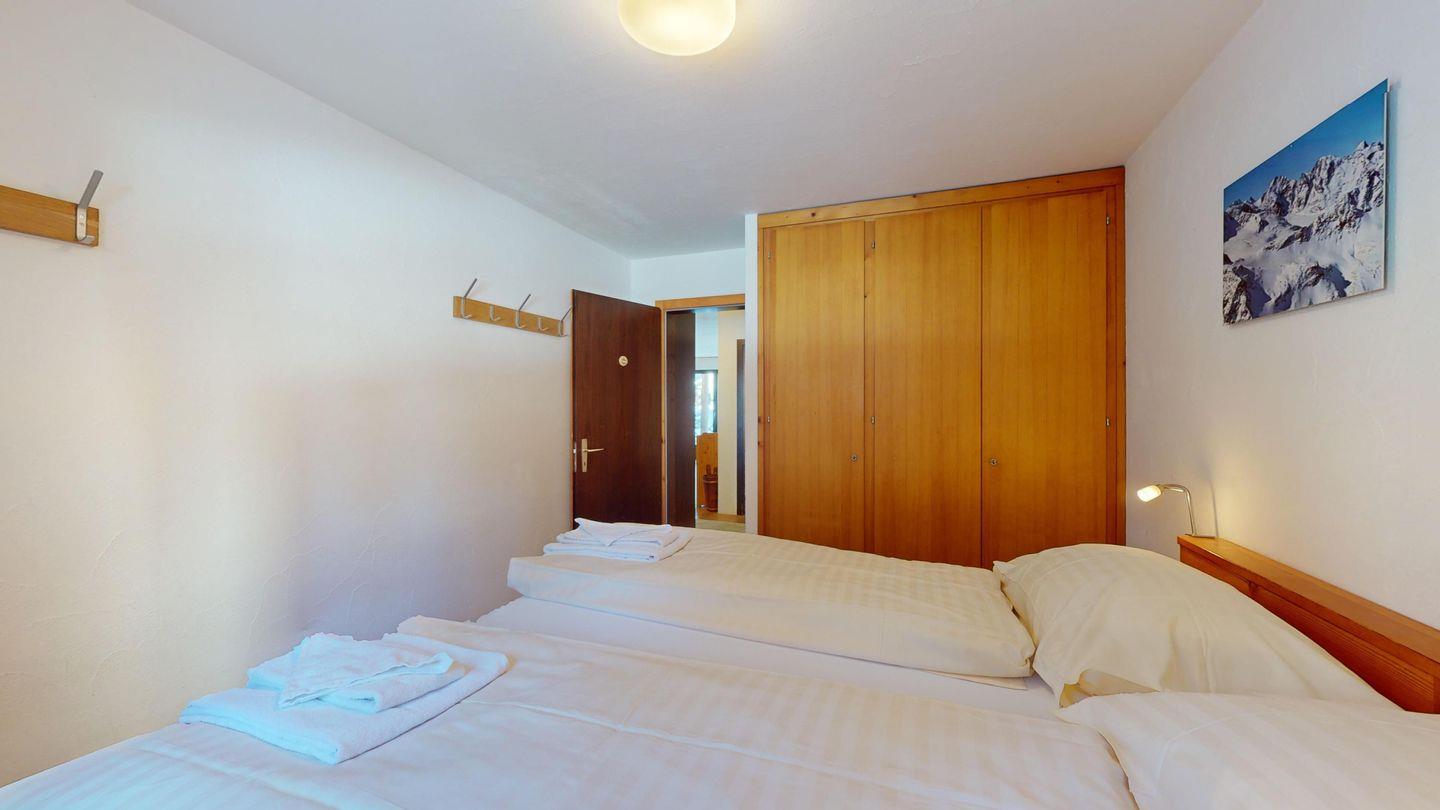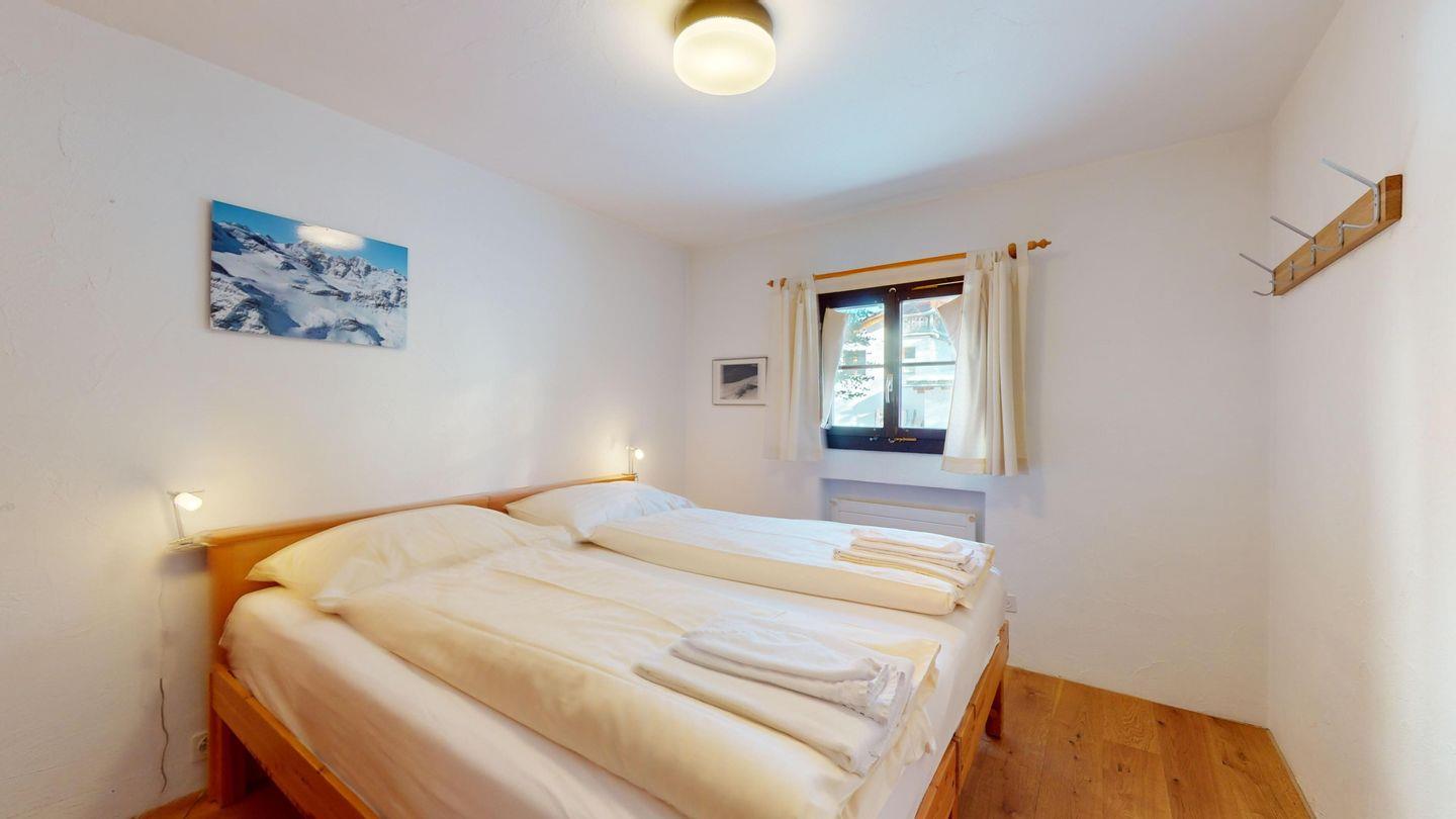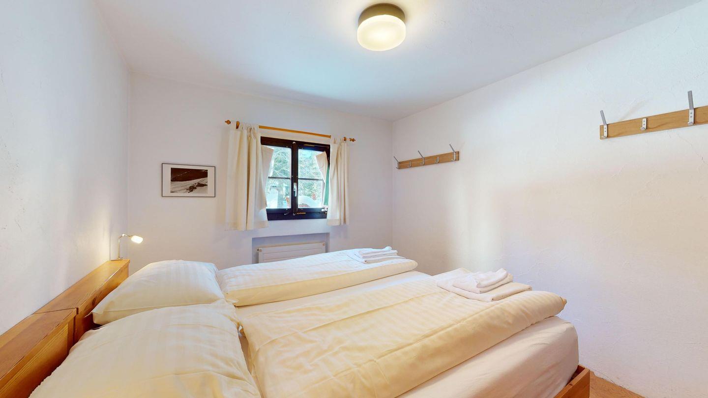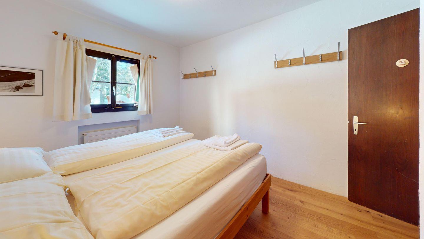 3-Zimmerwohnung im Erdgeschoss, Eingang mit Garderobe, Wohnzimmer mit Essecke und Ausgang auf den Gartensitzplatz. Geschlossene voll ausgestattete Küche mit Chicco d'Oro Kaffeemaschine. Doppelzimmer mit Einbauschrank. Zimmer mit 2 Betten. Badezimmer mit Waschbecken/Dusche/WC. Für den Gartensitzplatz gibt es Gartenmöbel. Der Kamin funktioniert nicht! Garagenplatz (Höhe 1.90 m)