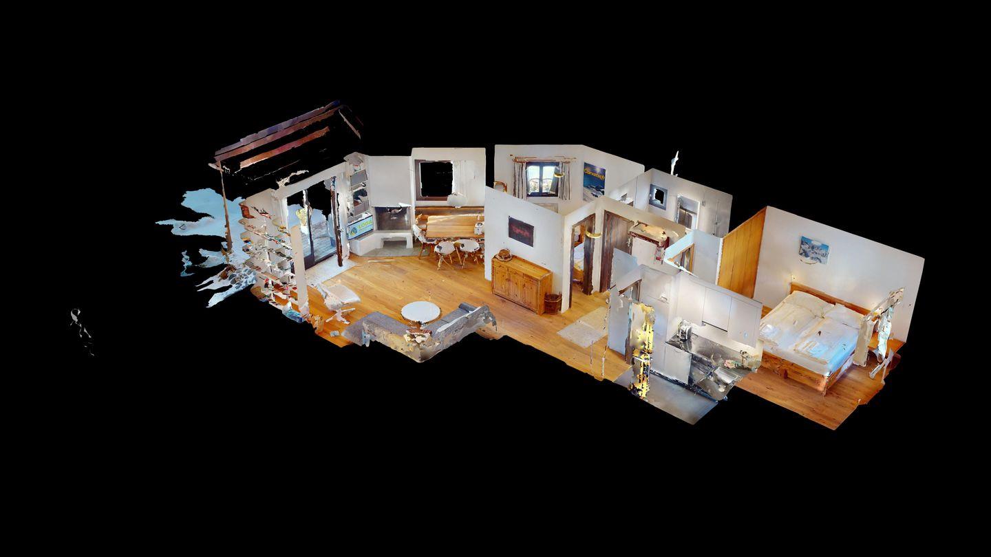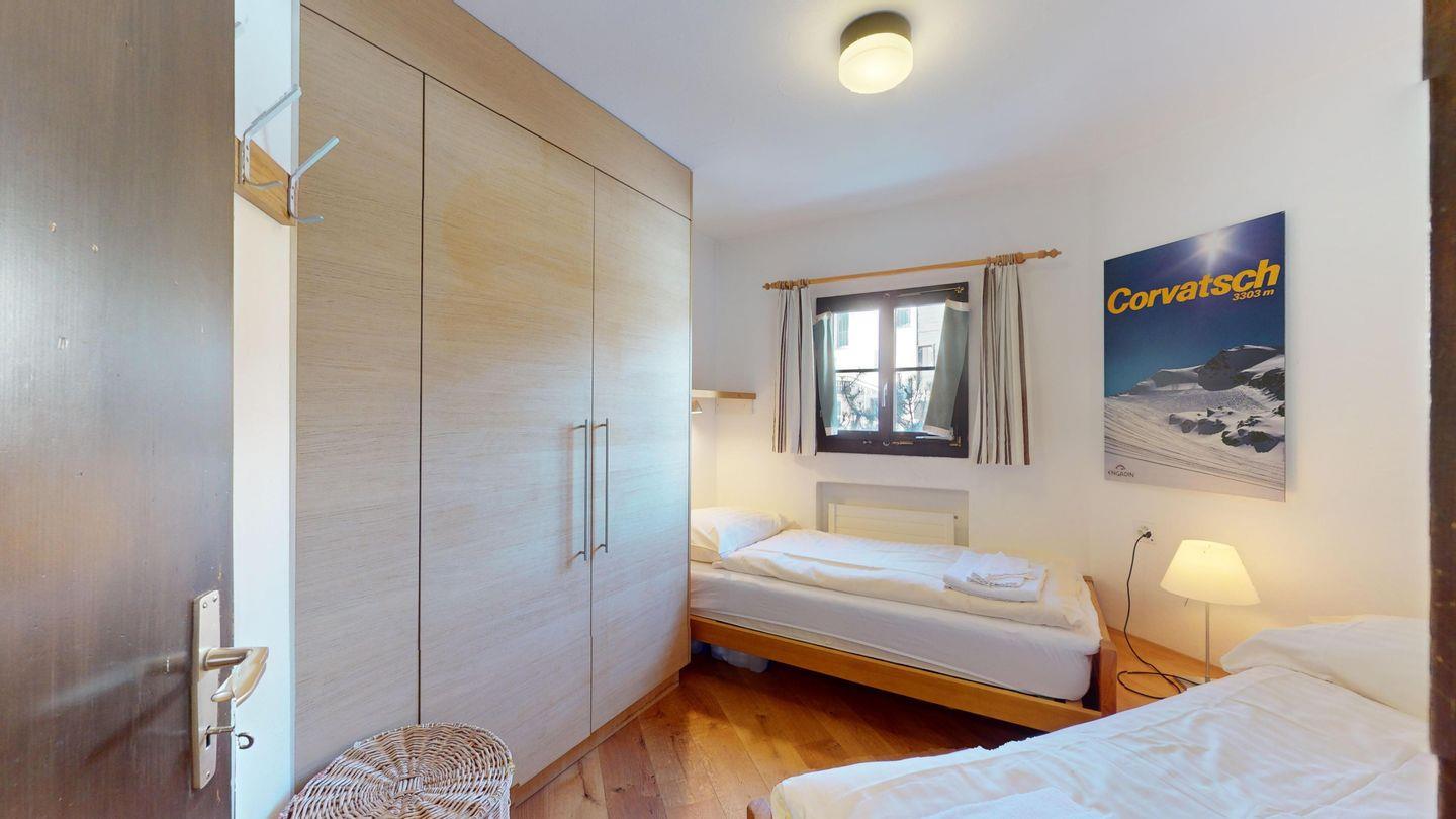 3-Zimmerwohnung im Erdgeschoss, Eingang mit Garderobe, Wohnzimmer mit Essecke und Ausgang auf den Gartensitzplatz. Geschlossene voll ausgestattete Küche mit Chicco d'Oro Kaffeemaschine. Doppelzimmer mit Einbauschrank. Zimmer mit 2 Betten. Badezimmer mit Waschbecken/Dusche/WC/Lavabo. Für den Gartensitzplatz gibt es Gartenmöbel. Der Kamin funktioniert nicht! Garagenplatz (Höhe 1.90 m)