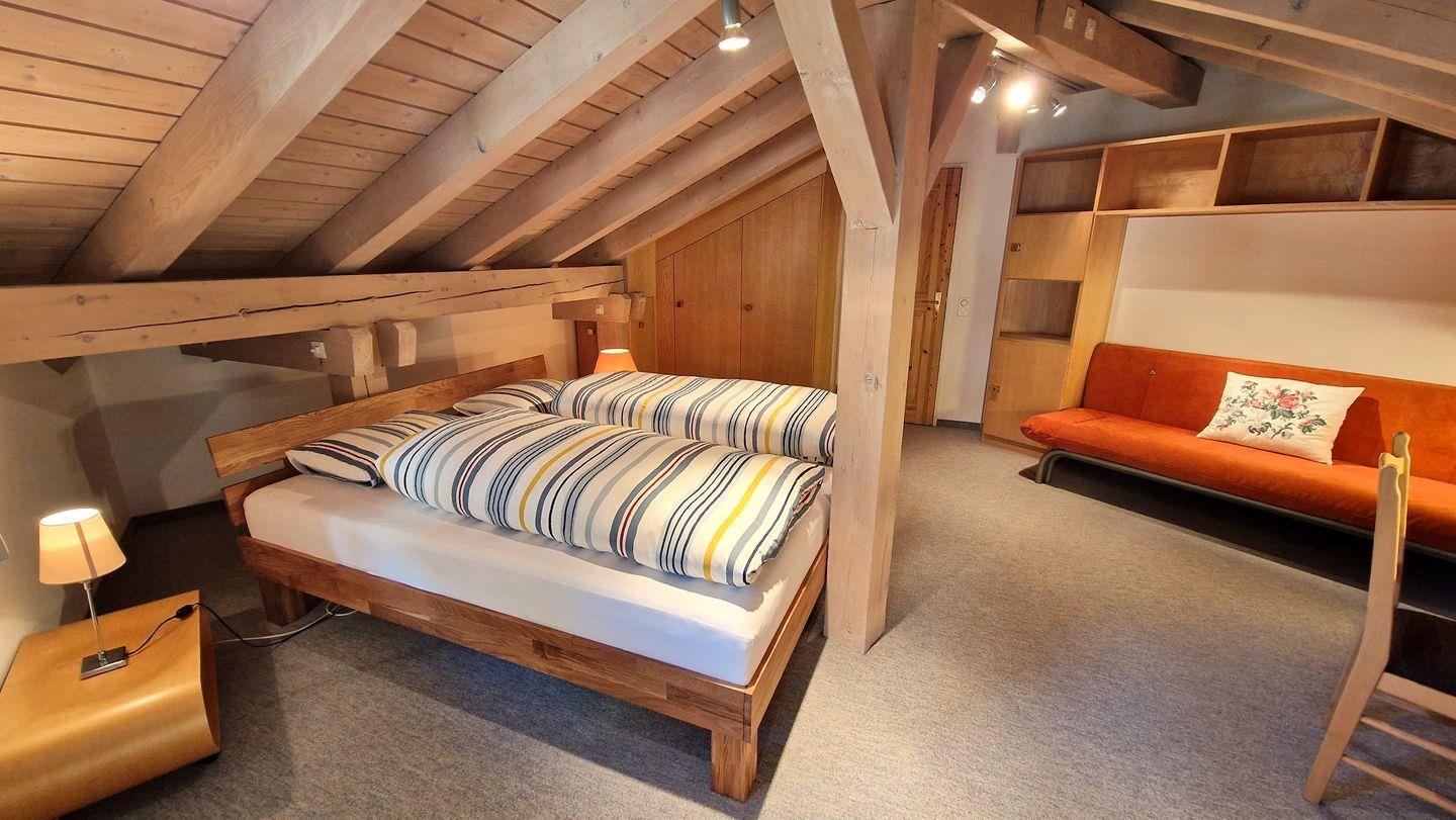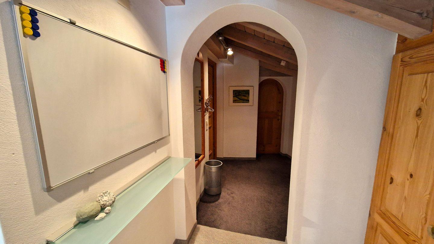 5 1/2-Zimmer-Dachwohnung im Haus Leivra, 4. Stock, 150 m2. Die helle und gemütliche Wohnung ist zweistöckig angelegt. Im unteren Stock befindet sich die Küche mit Geschirrspüler, der Essbereich mit Balkon sowie ein Badezimmer mit Dusche; im oberen Stock sind die drei Schlafzimmer, das Wohnzimmer mit Fernseher und ein Badezimmer mit Badewanne. Der nach Süden ausgerichtete Balkon offenbart eine prächtigen Blick auf das Corvatschgebiet und den Silvaplanersee. Nichtraucherwohnung.