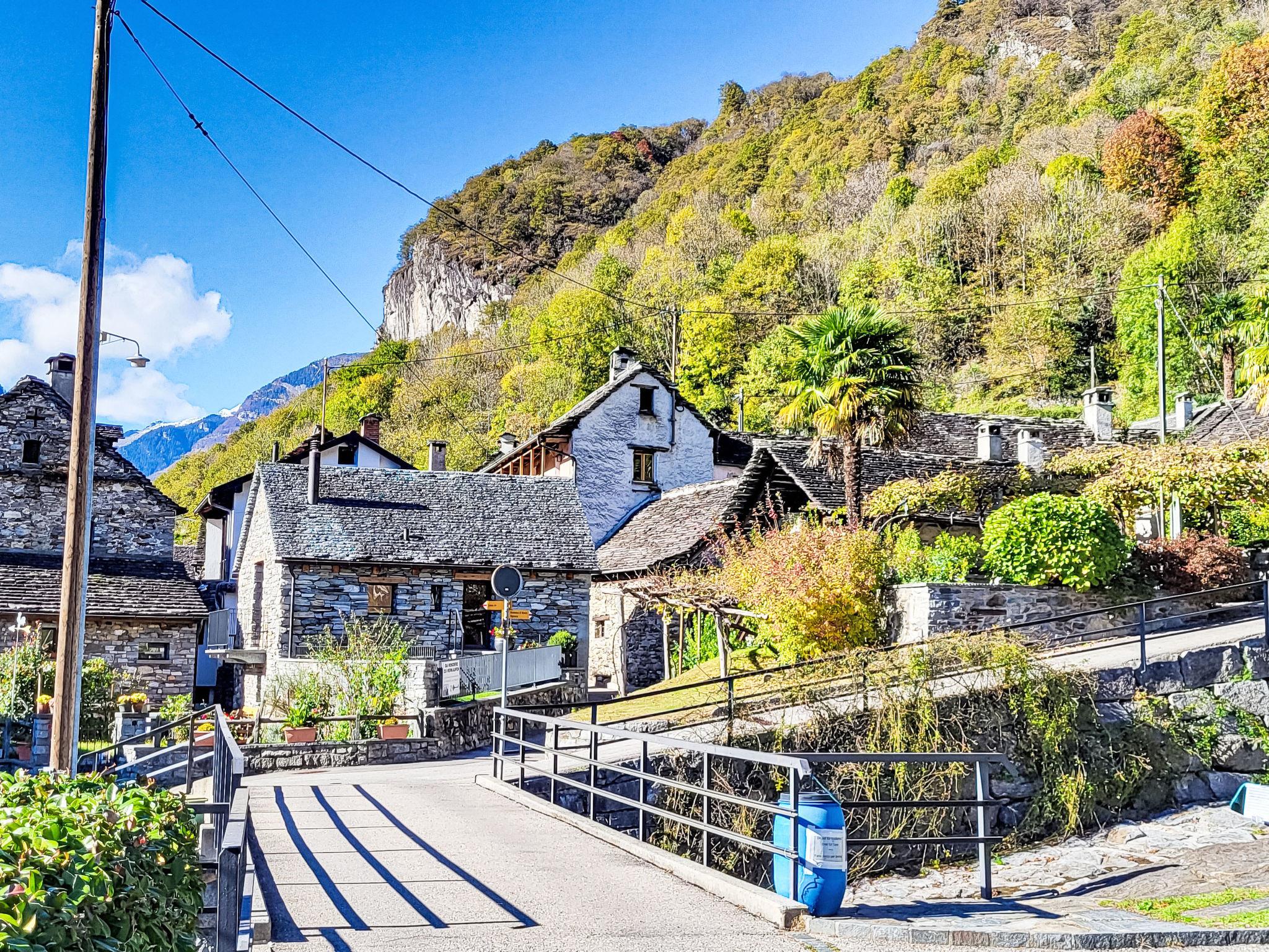 Someo 20 km from Locarno: Cosy "rustico" cottage "Ca Sina", 2 storeys, from the 18th century. In the centre of Someo, 50 m from the edge of the forest, 200 m from the river, west facing position. Private: patio, terrace, planted inner courtyard. Motor access to the house. 100 m footpath to the house. Public parking 100 m on the road extra. Supermarket 3 km, bakery 3 km, café 3 km, bus stop "Someo (Linie 315)" 200 m, pebble beach "Maggia" 200 m. Golf course (18 hole) 21 km, slopes 22 km. Nearby attractions: Vallemaggia, Foroglio / Mogno, Maggiatal-Schlucht, Flusshängebrücke von Giumaglio, Cascata di Foroglio. Well-known ski regions can easily be reached: Bosco Gurin 22 km. Well-known lakes can easily be reached: Lago Maggiore. Hiking paths: Vallemaggia, Valle di Lodano, Val Bavona. Object suitable for 4 adults.