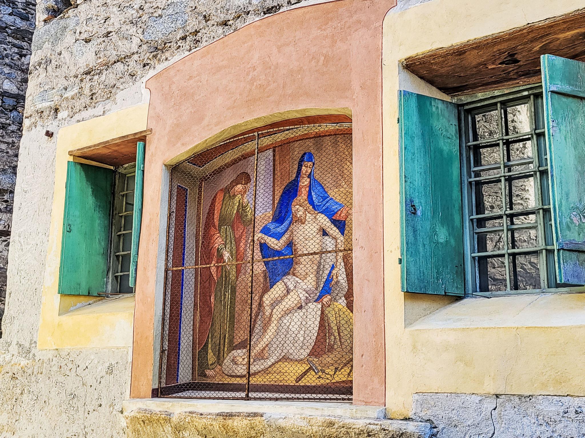 "La Curtascia", 4-room house 80 m2 on 2 levels, west facing position. Object suitable for 5 adults. Practical and antique furnishings: dining room, Low door height 175 cm with open-hearth fireplace, flat screen, radio, DVD and heating stove. Open kitchen (oven, 4 ceramic glass hob hotplates, toaster, kettle, electric coffee machine, Capsules for coffee machine (Nespresso) extra) with electric heater. Shower/WC. Underfloor heating. Upper floor: (exterior staircase), 1 room, Low door height 175 cm with 1 double bed (1 x 160 cm, length 200 cm), electric heater. (exterior staircase), 1 room, Low door height 175 cm with 1 sofabed (140 cm, length 200 cm), electric heater. (exterior staircase), 1 room, Low door height 175 cm with 1 sofabed (120 cm). Sep. WC. Natural stone floors. Small terrace 12 m2, west facing position. Terrace furniture. View of the mountains and the resort. Facilities: Internet (WiFi). Please note: fridge without freezer, non-smokers only. Maximum 1 pet/ dog allowed.