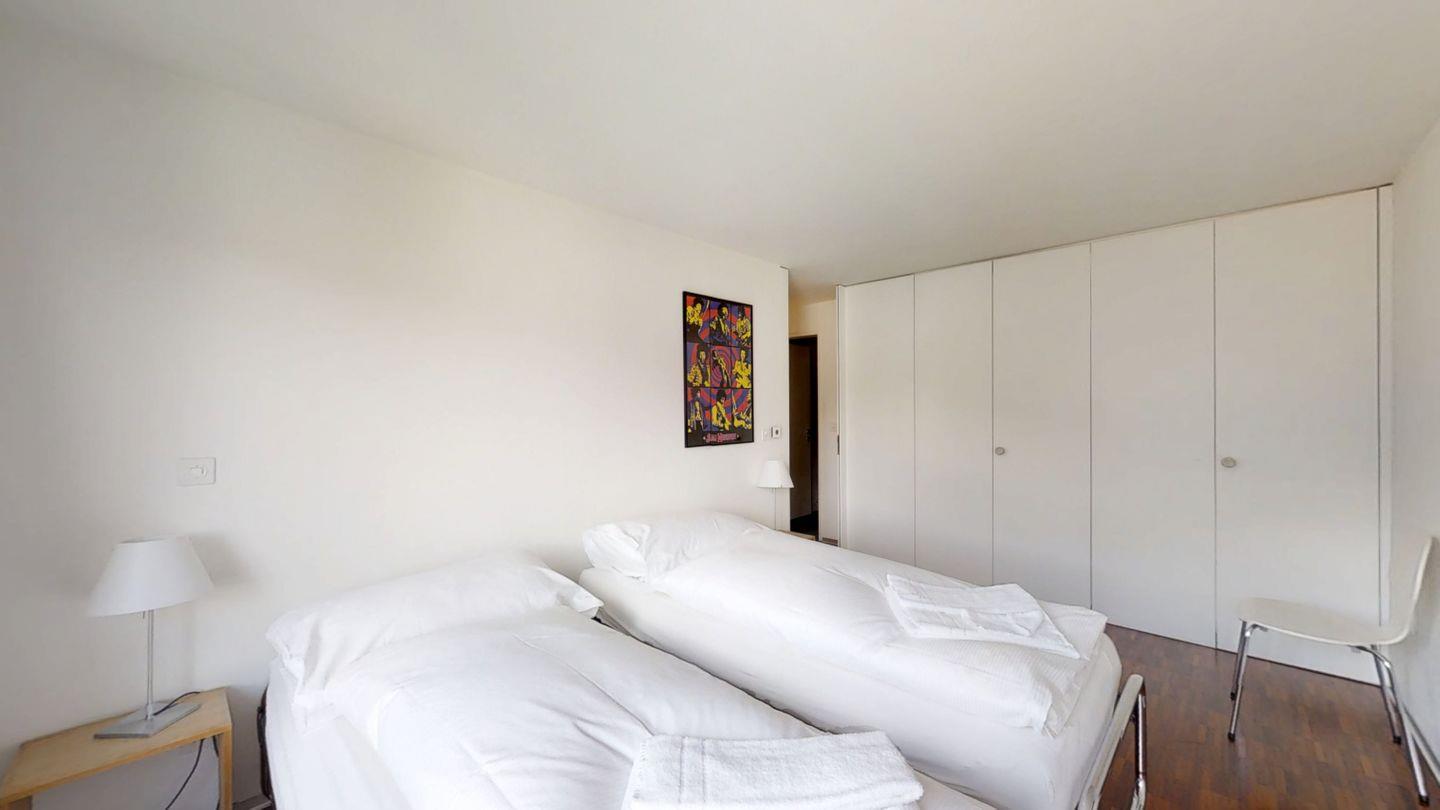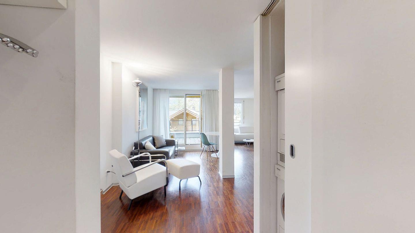 Geschmackvoll eingerichtete 3-Zimmerwohnung im 2. Obergeschoss, Eingang mit Garderobe und Schrank mit Waschmaschine und Tumbler, Wohn-Esszimmer mit Ausgang auf den Balkon und offener moderner Küche, Nespresso Kaffeemaschine TV, Radio und Internet. Doppelschlafzimmer (2 Matratzen) mit Einbauschrank, Doppelschlafzimmer (2 Matratzen), Badezimmer mit Badewanne/Lavabo/WC, Badezimmer mit Dusche/Lavabo/WC, Garagenplatz, Haustiere sind nicht erlaubt. Achtung: kein Aufzug im Haus und steile Stufen in den 2. Stock.