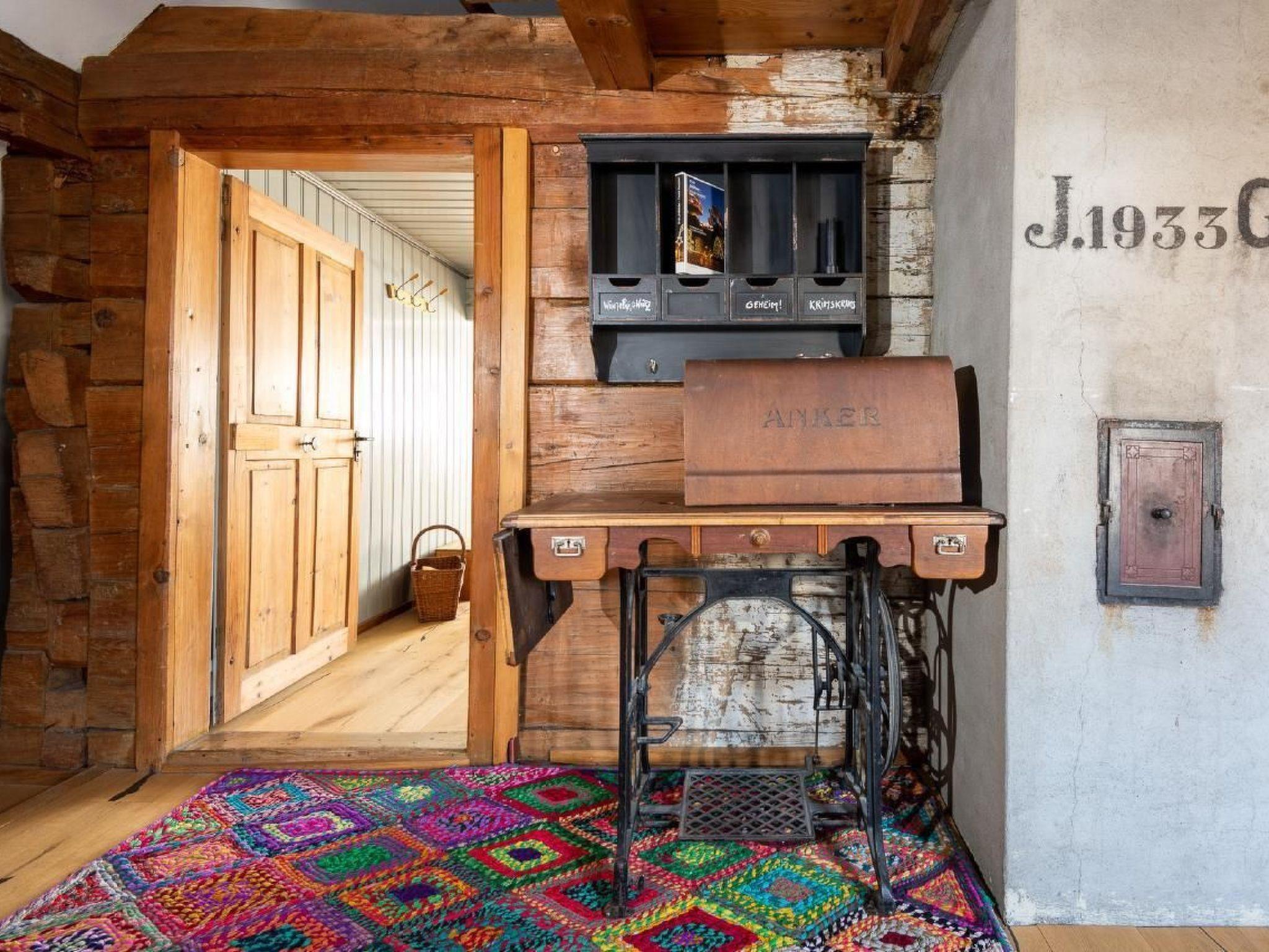 Inside, a fascinating blend of tradition and comfort awaits you. Due to the listed architecture, the ceilings are between 1.80 and 1.90 metres high - sometimes even higher, which gives each room a special atmosphere. For music lovers, there is a record player with a diverse selection of records that will take you back to different musical eras. The nostalgic charm of the house is rounded off by the original 'T'schüttelikasten' (an old shop) and a colourful play box for children.