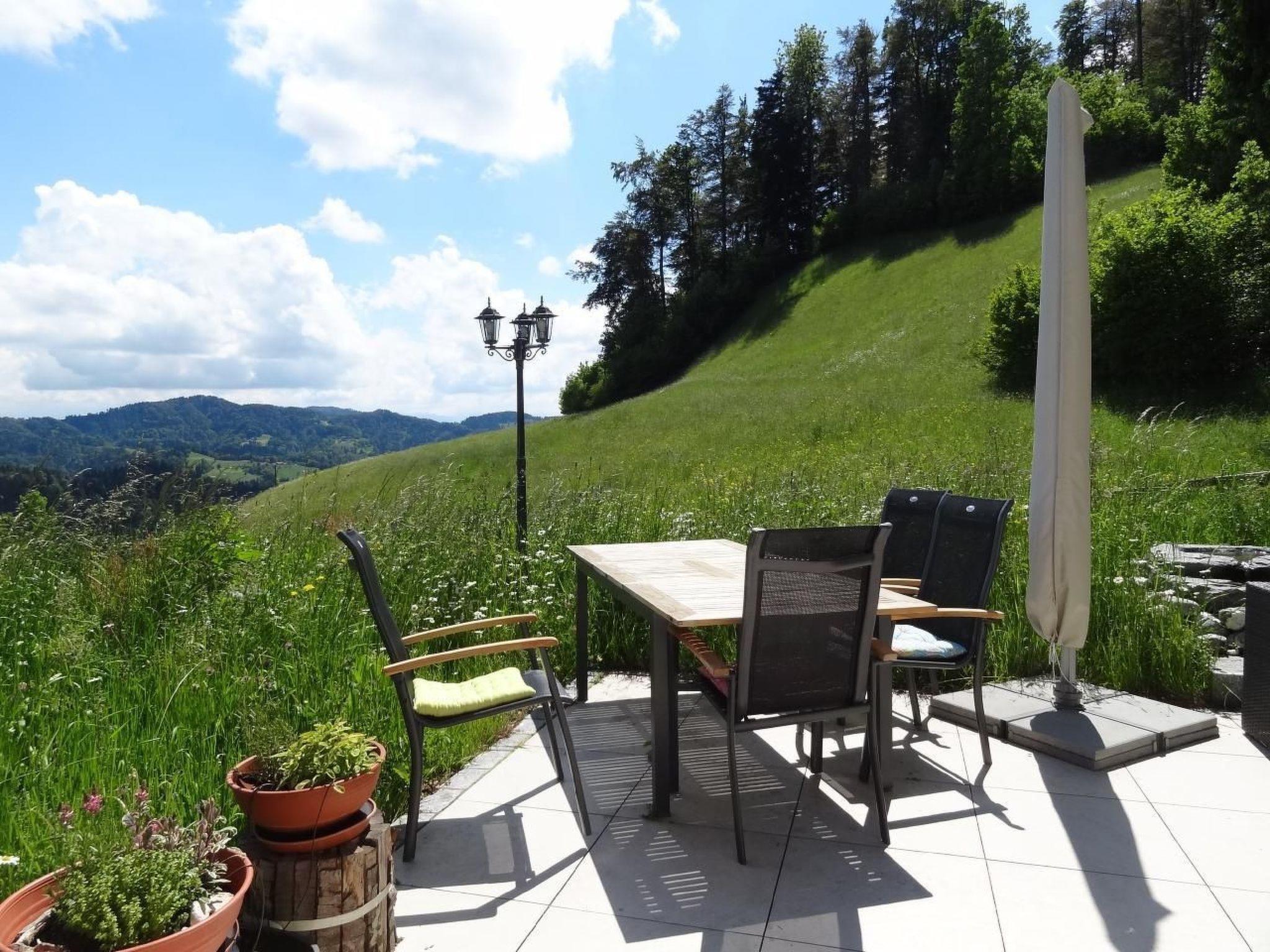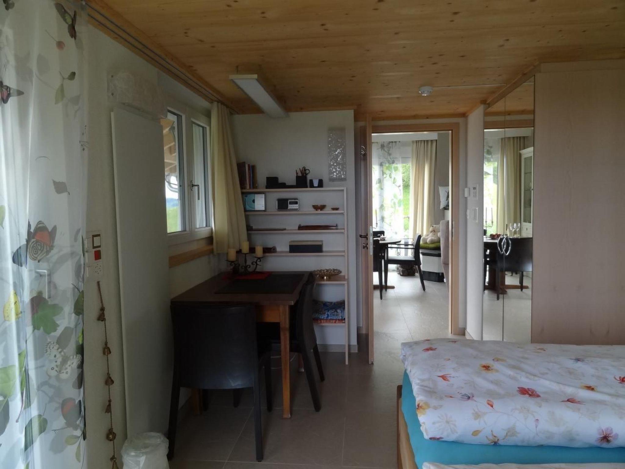 Holiday home with honeymoon suite, idyllically situated on the edge of the forest; secluded, but with magnificent panoramic views, ideal for peace, retreat and relaxation in an elegant ambience. - Let like a hotel room with an extensive minibar, but without breakfast. However, the necessary ingredients for a romantic dinner and a hearty breakfast are available in the "minibar" (on the kitchen shelf, in the fridge and in the freezer); we will send you the list. - What you will also find: