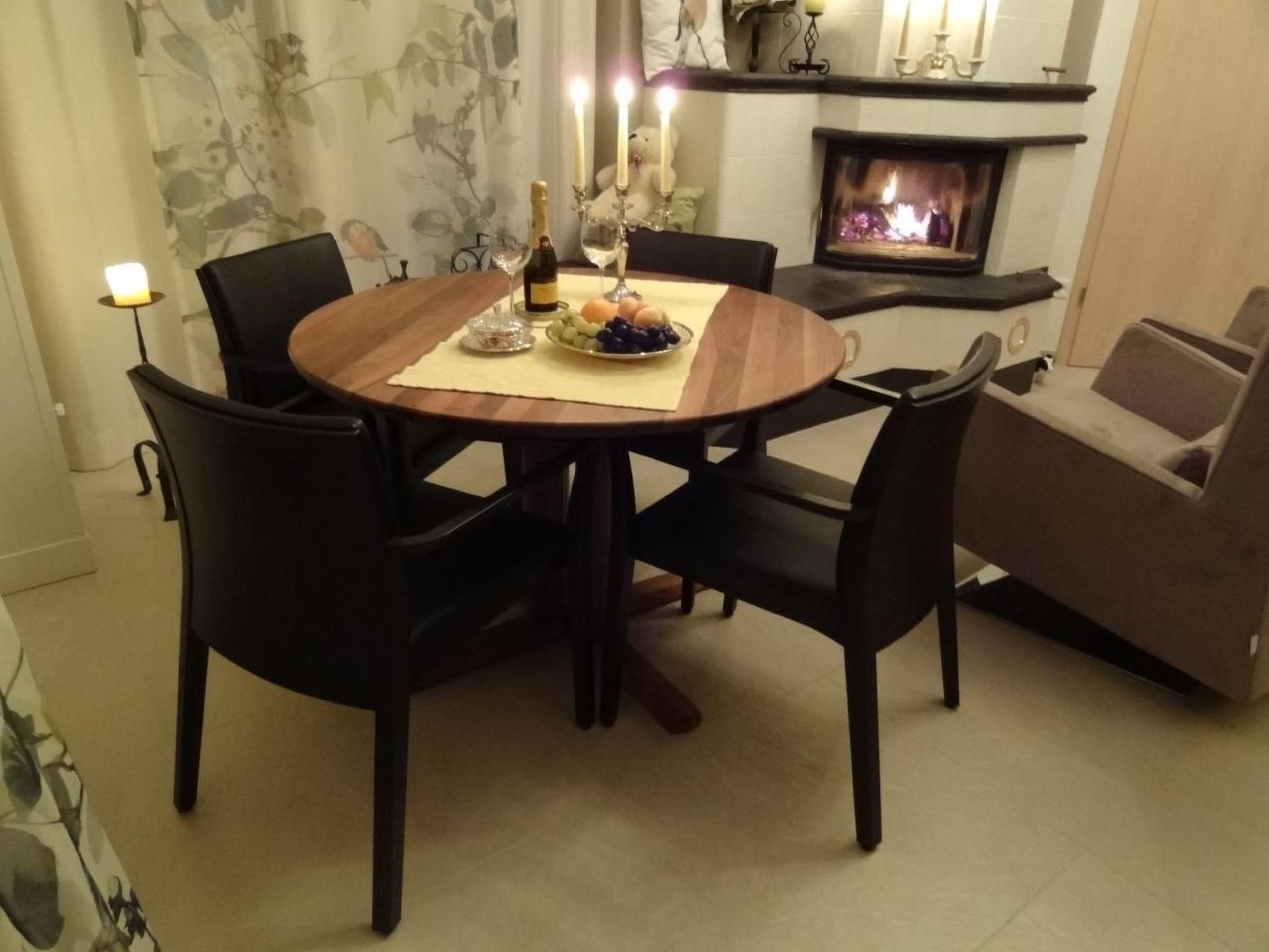 - Salon with large, extendable table made of solid walnut, especially comfortable chairs