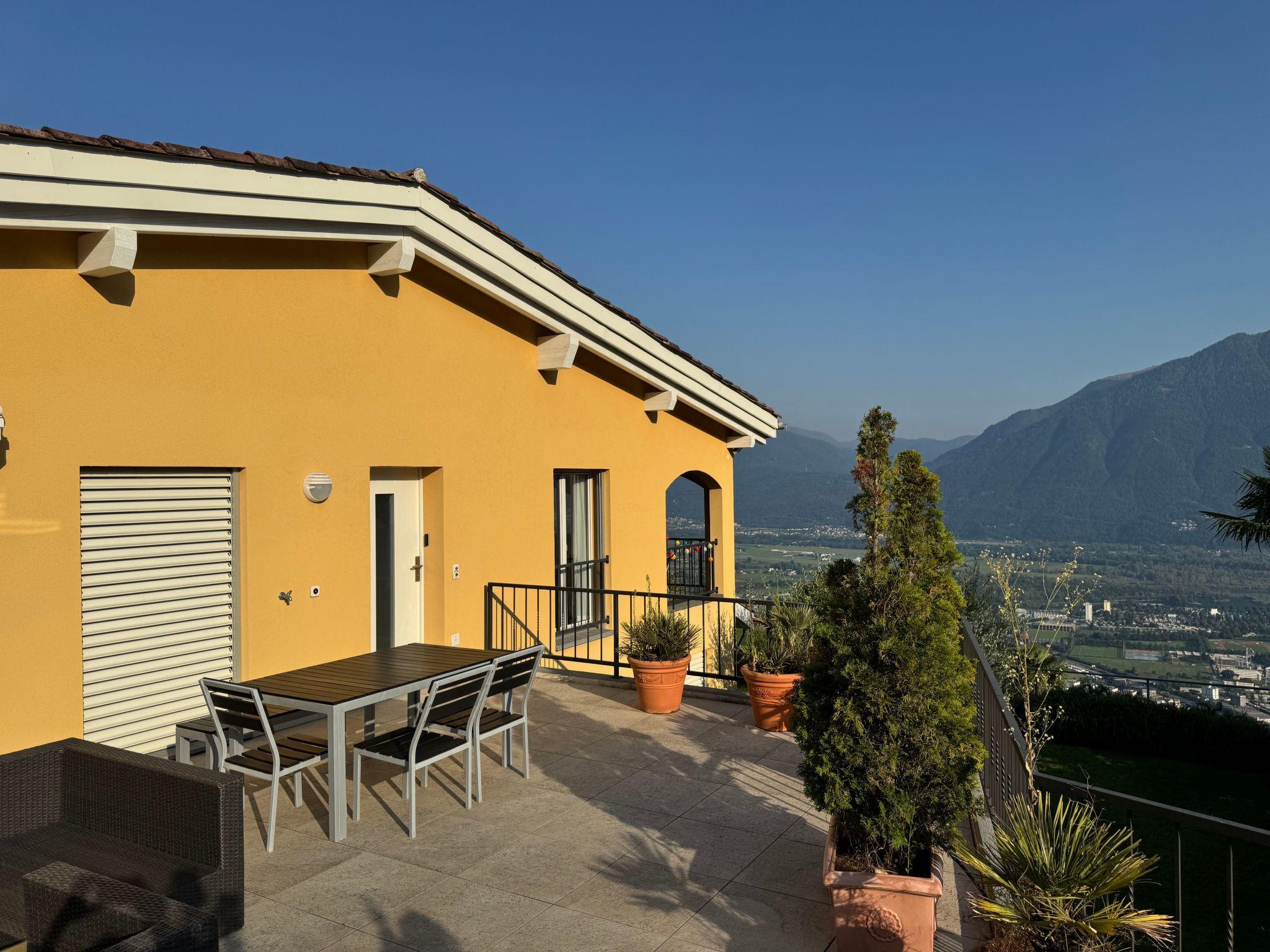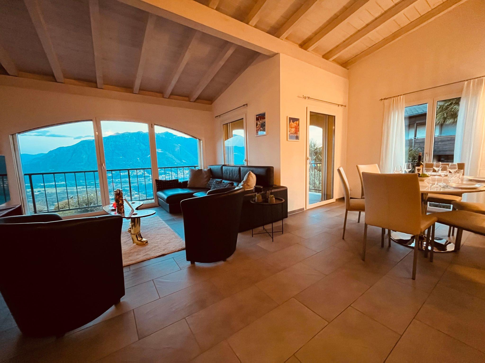 Welcome to your next holiday destination in Tenero-Contra, in picturesque Ticino, Switzerland's sunniest region. La Camelina - our spacious and fully equipped holiday flat is practical in layout, yet elegant in appearance. It offers a wonderful view of Lake Maggiore, the mountains around Monte Tamaro and the Magadino plain. The flat is accessible at ground level as the top unit of a cleverly arranged, Mediterranean-style terraced property. It is ideal for couples or families of up to 5 people and offers you the perfect base for discovering the beauties of the Locarnese and relaxing in a private atmosphere. Enjoy the peace and quiet at the end of the road at the top of Contra, right at the start of the hiking trail. An environment that invites you to explore.