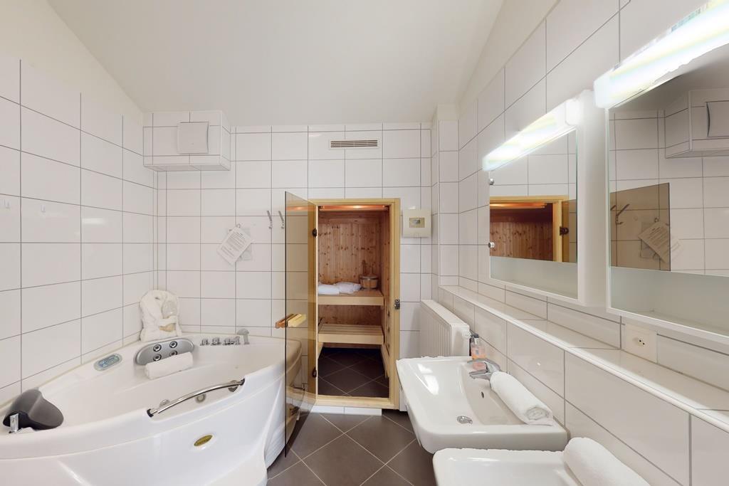 The holiday apartment has3 bedrooms with 2 single beds eacha bathroom with shower, whirlpool bath, toilet, washbasin and saunaa separate toilet with washbasina separate shower with washbasina fully equipped kitchen with Nespresso capsule machinea balcony with a breathtaking view of the lakeInterior & technical equipment