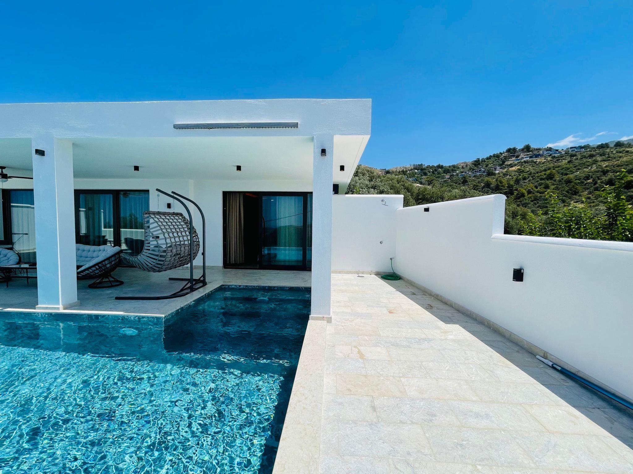 Discover the perfect holiday home for two in Üzümlü, Anatolia - an idyllic retreat for couples that offers you and your better half complete privacy in the midst of breathtaking nature. Nestled in the picturesque region of Üzümlü near Kalkan, this detached holiday home is an oasis of tranquillity. Here, far away from the hustle and bustle, you can experience unforgettable moments in cosy togetherness - ideal for newlyweds or for a romantic getaway. The villa is characterised by its elevated position, which not only provides fresh air, but also offers a fascinating view of the surrounding natural landscape.