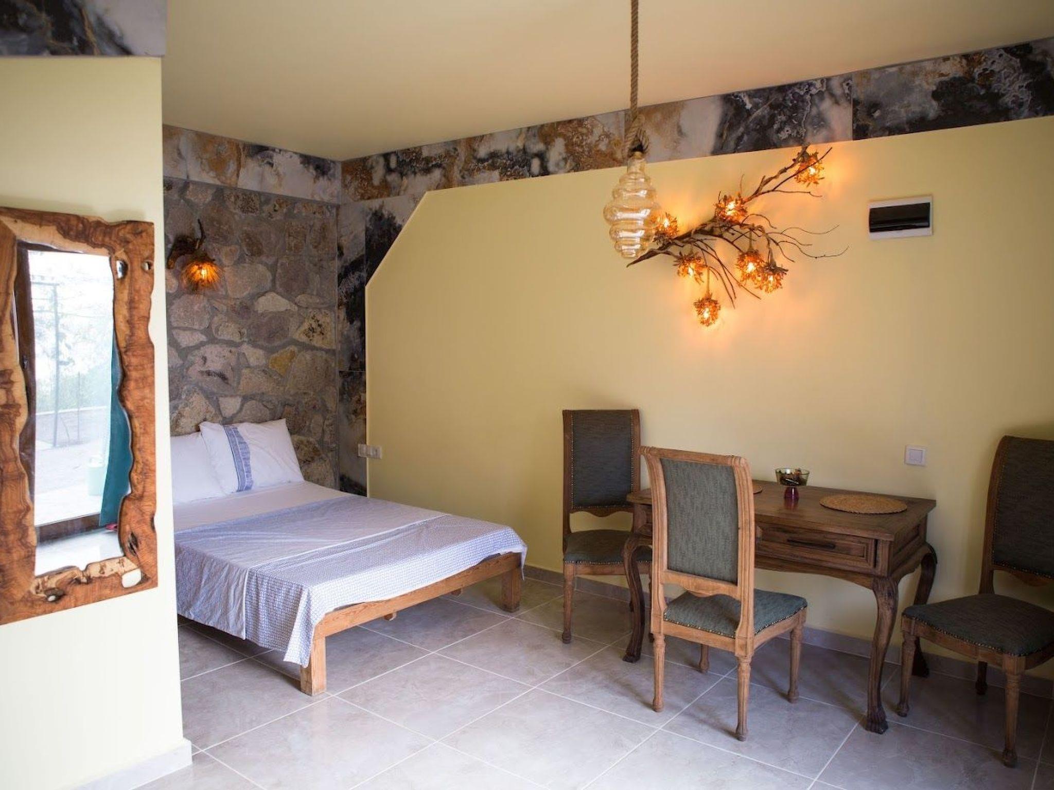 What makes it special is certainly its unusual architecture and its location. The room is very tastefully decorated. The distance to the sea is approx. 50 metres. A beautifully tended olive grove, many natural stone walls built to prevent soil erosion and the secluded location should be emphasised. The lush nature of the surrounding area is also worth mentioning. The house is situated between 2 beaches, one of which is sandy and the other pebbly,