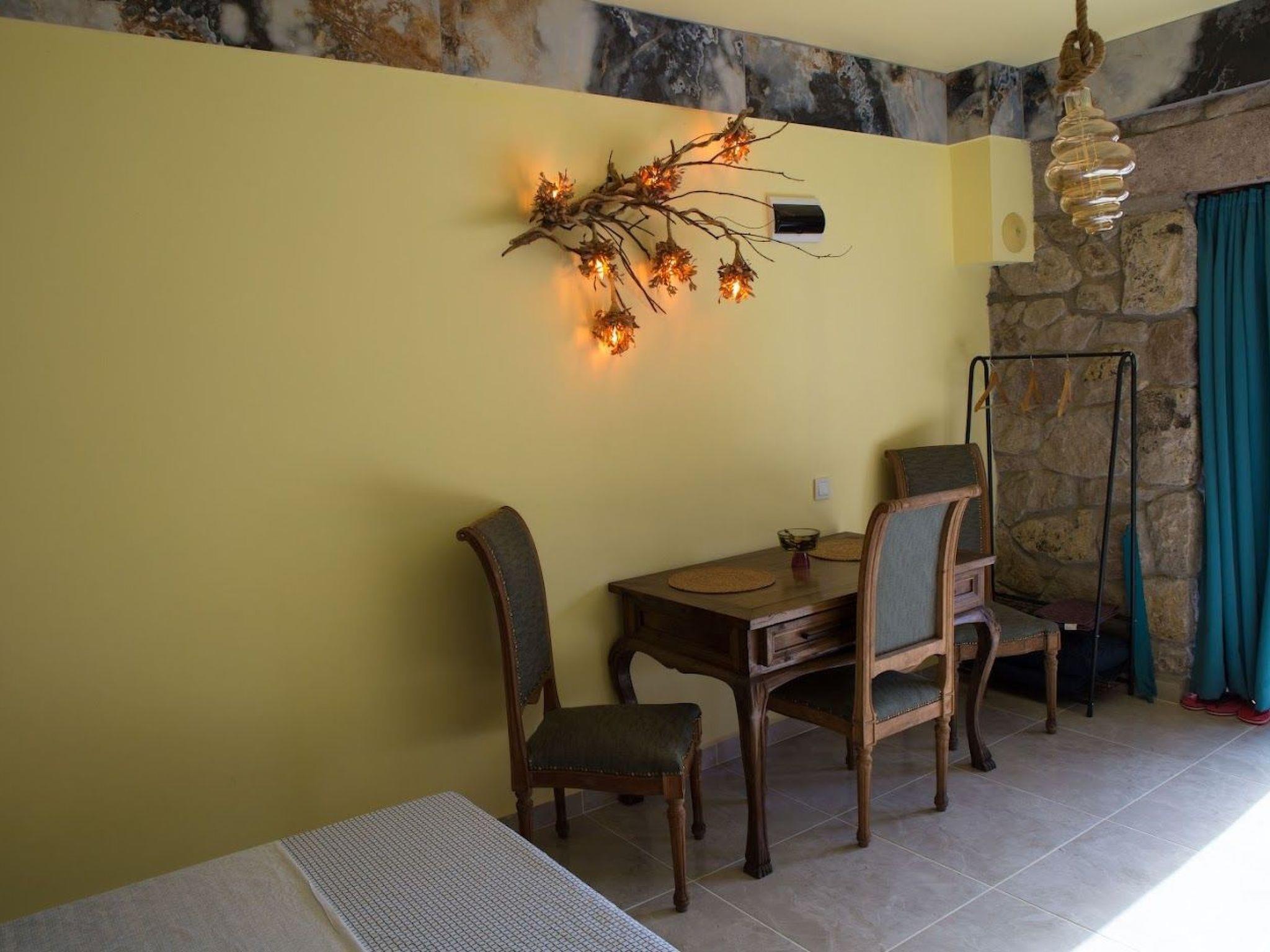 What makes it special is certainly its unusual architecture and its location. The room is very tastefully decorated. The distance to the sea is approx. 50 metres. A beautifully tended olive grove, many natural stone walls built to prevent soil erosion and the secluded location should be emphasised. The lush nature of the surrounding area is also worth mentioning. The house is situated between 2 beaches, one of which is sandy and the other pebbly,