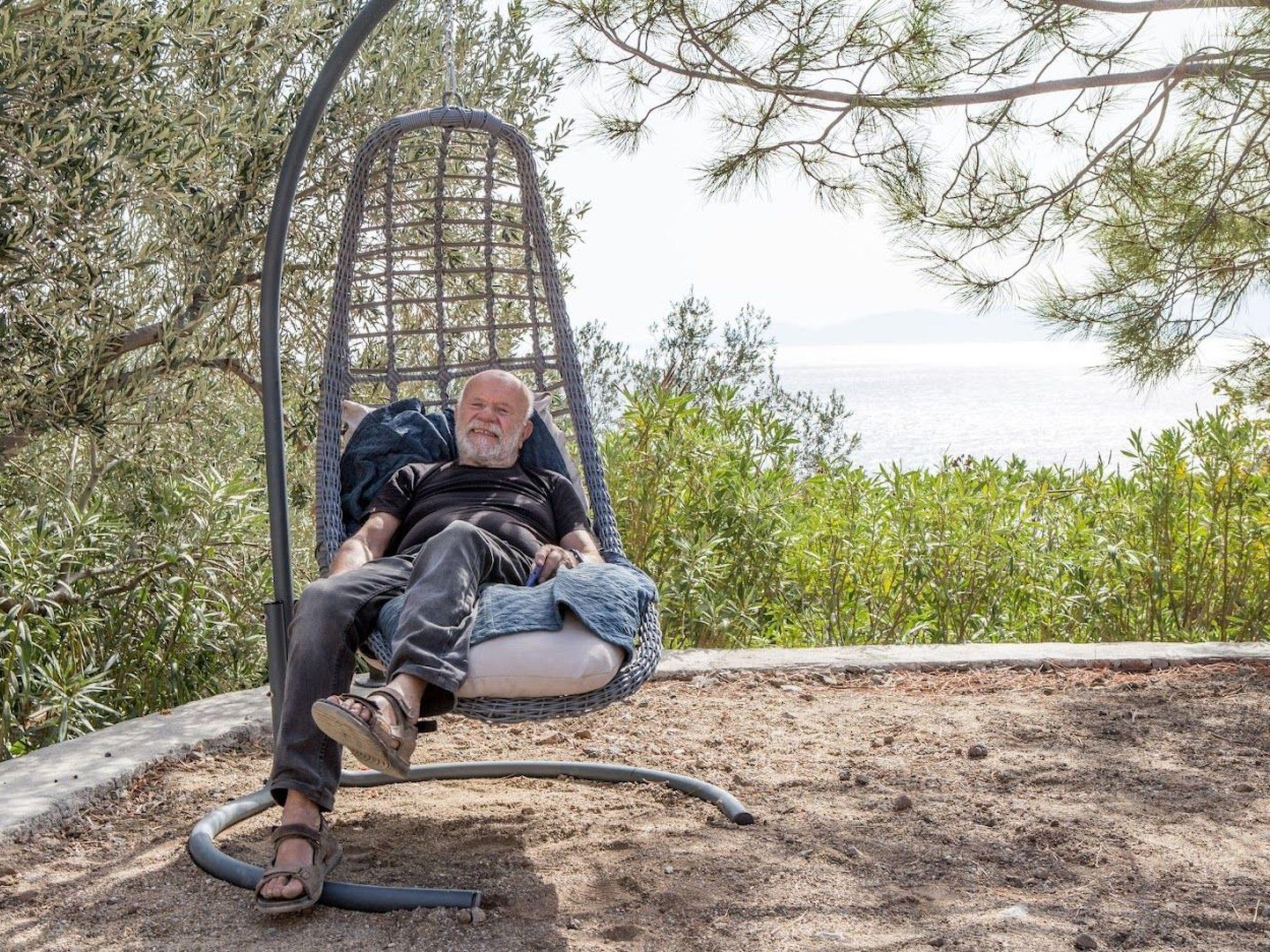 A jetty into the sea invites you to swim. Above the jetty is a 2nd pergola with an outdoor shower.