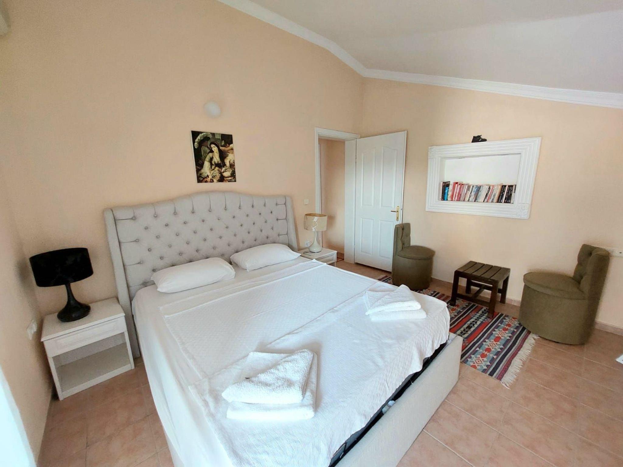 Suitable for elderly people with mobility issues but not having a wheel chair access.Smoking is not allowed in the propertyNo pets allowedSelf-cateringCheck In : 16:00 (onwards)Check Out : 10:00 (latest)Facilities:General: Air conditioning in every room. CD/DVD player in the lounges.Standard Utilities: Gas Hob and Electric Oven, Microwave, Fridge/Freezer, Dishwasher, Washing Machine, Kettle, Toaster, IronRooms: 5 Bedrooms (2 of them en-suite), 2 shared family bathroomsOther: Linen provided, we provide towels for bathroom and swimming, to save your suitcase space.Parking: Permitted on the road parking spaces.Outdoors: The garden is well maintained with mature shrubs and flowers, also green lawn on the outdoor sitting and BBQ area. Salt system 36sqm private pool and sun terrace.Further details:If you want to travel around the area by a car or scooter, it is easy to arrange and very cheap. We also have the local Saturday market in town on each weekend within minutes from the villa. Transfers can also be arranged.Distances:•Dalaman International Airport: 25km.