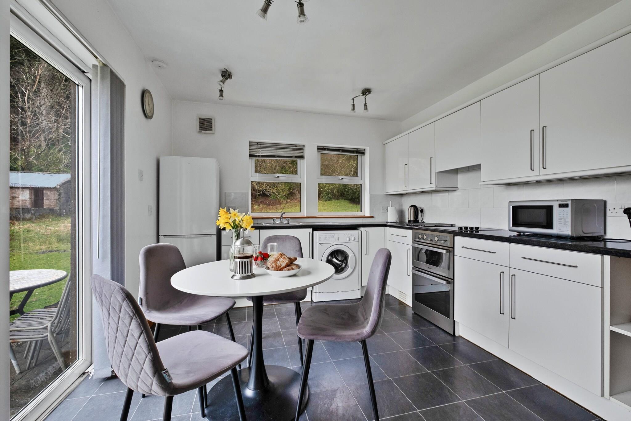 This charming cottage is nestled at the head of a picturesque loch, offering stunning views and a peaceful escape for up to six guests. The accommodation includes three comfortable bedrooms: a generous double on the ground floor and two twin rooms upstairs, each with traditional wood panelling. The property also features a spacious sitting room with large windows that capture the breathtaking lochside views, while the dining kitchen offers French doors that lead directly onto the patio, blending indoor and outdoor living seamlessly. The cottage is pet-friendly, welcoming two dogs, with the first staying free of charge. Located at the edge of the loch, the property boasts ever-changing, scenic vistas of the surrounding hills and water, creating a tranquil and picturesque environment. A meandering burn runs through the garden, adding to the cottage’s natural charm. The village of Achahoish is a short distance away, where guests can enjoy the serene Scottish countryside. For those seeking outdoor adventures, the loch provides plenty of opportunities for peaceful walks, wildlife spotting, or simply unwinding by the water. Inside, the cottage is well-equipped with modern amenities, including Wi-Fi, parking, and a washing machine. The spacious garden is ideal for families or dog owners to relax, while the warmth of an open fire in the sitting room ensures comfort during cooler evenings.