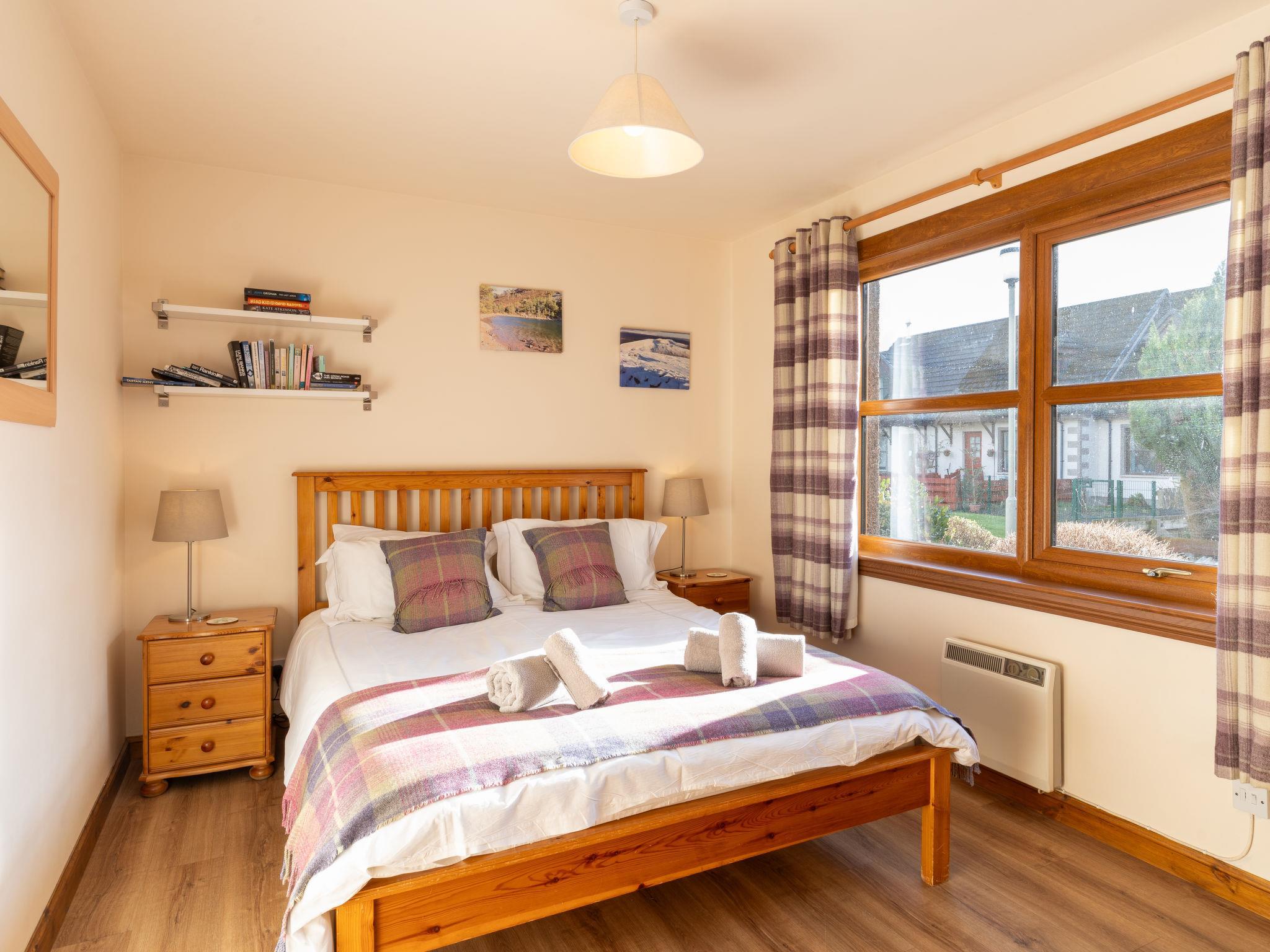 Child friendly, comfortable bungalow "Braeriach", semi-detached. 2 km from the centre of Aviemore, in a quiet, sunny position, 7 km from the lake, 18 km from the skiing area, in a cul-de-sac. Private: garden with lawn. Patio, garden furniture. In the complex: storage room for bicycles, storage room for skis, washing machine, tumble dryer. Parking at the house, public parking. Shop, supermarket 100 m, restaurant 1 km, bar 1 km, bus stop "Aviemore (burnside rd)" 500 m, railway station "Aviemore" 2 km. Golf course (18 hole) 1 km, ski lift 18 km. Nearby attractions: Dalfaber Golf & Country Club 1 km, Cairngorm National Park, Highland Wildlife Park 15 km, Inverness 48 km, Landmark Forest Adventure Park 9 km, Highland Folk Museum 27 km. Well-known ski regions can easily be reached: Cairngorms ski resort 18 km, The Lecth Ski resort 54 km. Well-known lakes can easily be reached: Loch Morlich 15 km, Loch Garten 14 km, Loch Ness 69 km. Please note: car recommended. Suitable for families, baby equipment (included). 4 new rapid Electric Vehicle charging points are available in the Coop car park only 100 metres from the house.