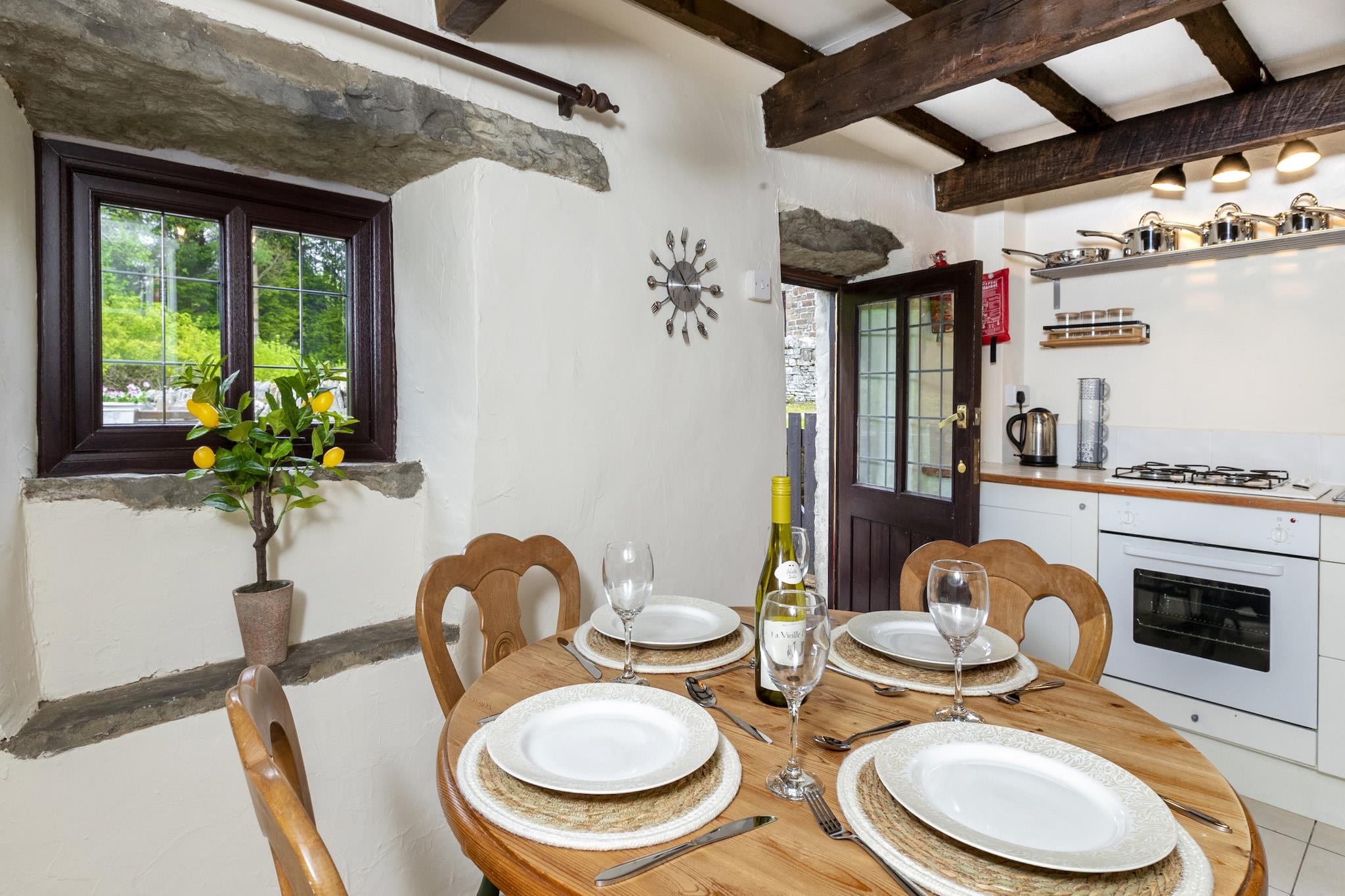 This charming 17th-century cottage, located on Boardmans Farm, offers a cosy retreat perfect for couples. The property features a luxurious four-poster double bed with countryside views and is complemented by a comfortable living area with a log fire for those colder evenings. Modern amenities, including a well-equipped kitchen with all necessary utensils for cooking, ensure a convenient stay. The cottage also offers internet access, heating, and parking for two cars. Outside, guests can enjoy the south-west facing garden with outdoor furniture, ideal for relaxing in the summer sun. The property is pet-friendly, allowing two well-behaved pets for an additional fee. Situated down a quiet lane, the cottage provides a peaceful setting, surrounded by picturesque gardens and the beautiful landscape of Hawkshaw. It is within a mile of the local pub in Hawkshaw Village, where additional amenities such as a village store are available. The location offers the perfect base for exploring the surrounding countryside, and guests can enjoy the tranquil rural environment, ideal for walks and outdoor activities. Inside, the cottage exudes rustic charm with oak beams, a grandfather clock, and a cosy living room perfect for unwinding. The bathroom features a bath and shower, and complimentary amenities are provided for a comfortable stay. The fully stocked kitchen provides everything guests need to prepare meals, while the quiet and charming surroundings allow for a relaxing experience. This property offers a warm, historical ambiance with all the modern comforts for a memorable getaway.