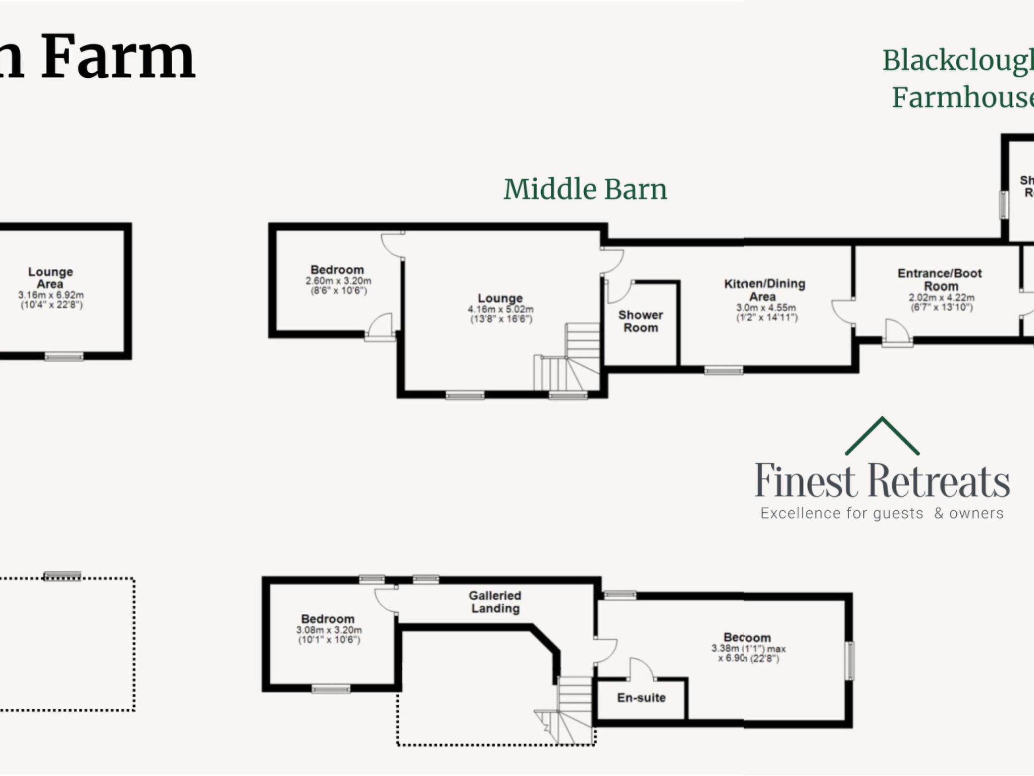 "The Cottages Collection at Blackclough Farm", 7-room house 260 m2. Object suitable for 12 adults. Living room with open-hearth fireplace. 1 room with 3 beds. 1 room with 1 double bed. 1 room with 1 double bed. 1 room with 1 double bed. 1 room with 1 bed. 1 room with 1 double bed. Kitchen (oven, dishwasher, toaster, kettle, microwave, freezer, electric coffee machine). Bath/WC, 4 showers/WC. Facilities: washing machine, iron. Internet (WiFi, free). Parking (4 cars). Please note: non-smokers only. 2 pets/ dogs allowed. Smoke alarm.