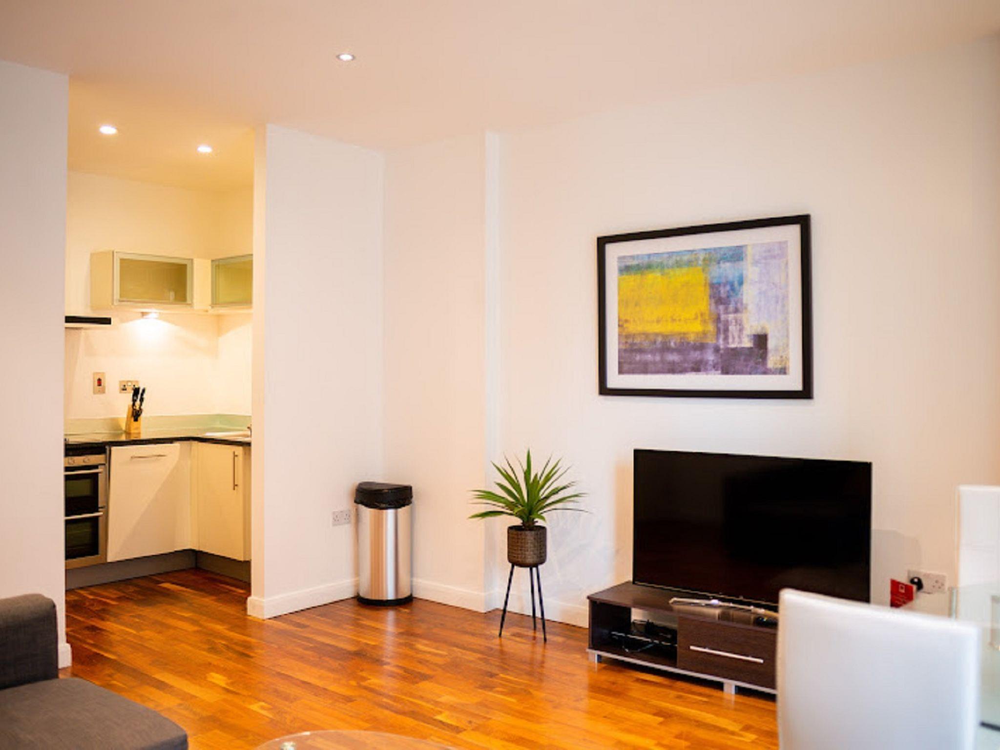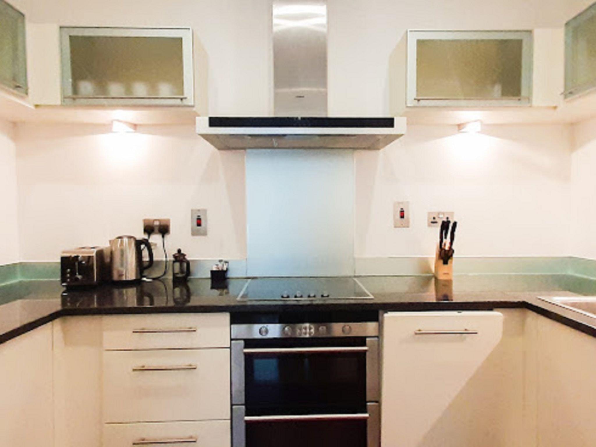 "Discovery Dock", 2-room apartment 40 m2. Modern and stylish furnishings: living/dining room with dining table and TV (flat screen). 1 double bedroom with 1 double bed and bath/shower/WC. Open kitchen (4 hot plates, oven, dishwasher, toaster, kettle, microwave, freezer). Heating. Facilities: washing machine, dryer, iron. Internet (WiFi, free). Please note: non-smoking house. TV only EN. The property is one of a type of property or apartment.