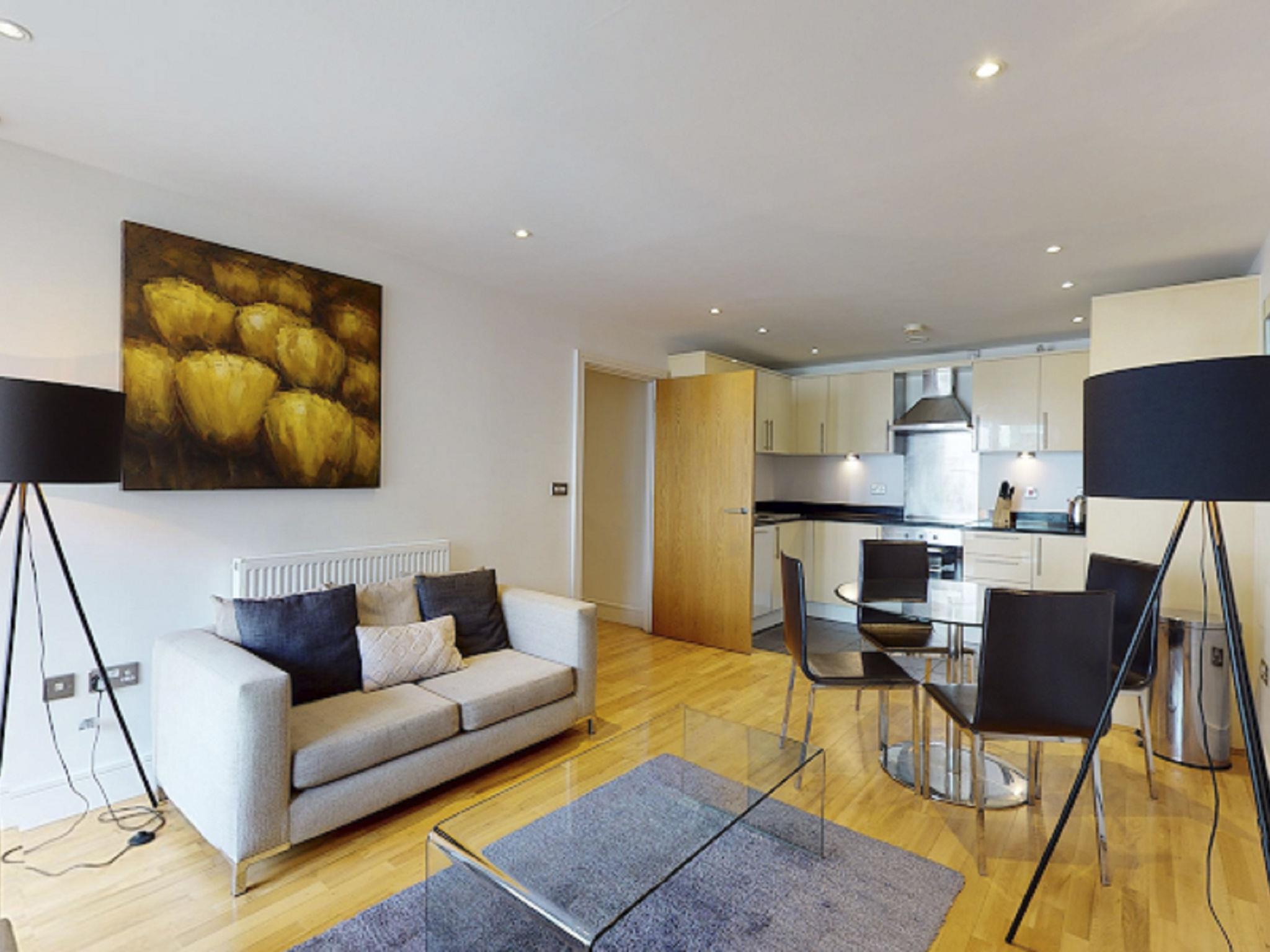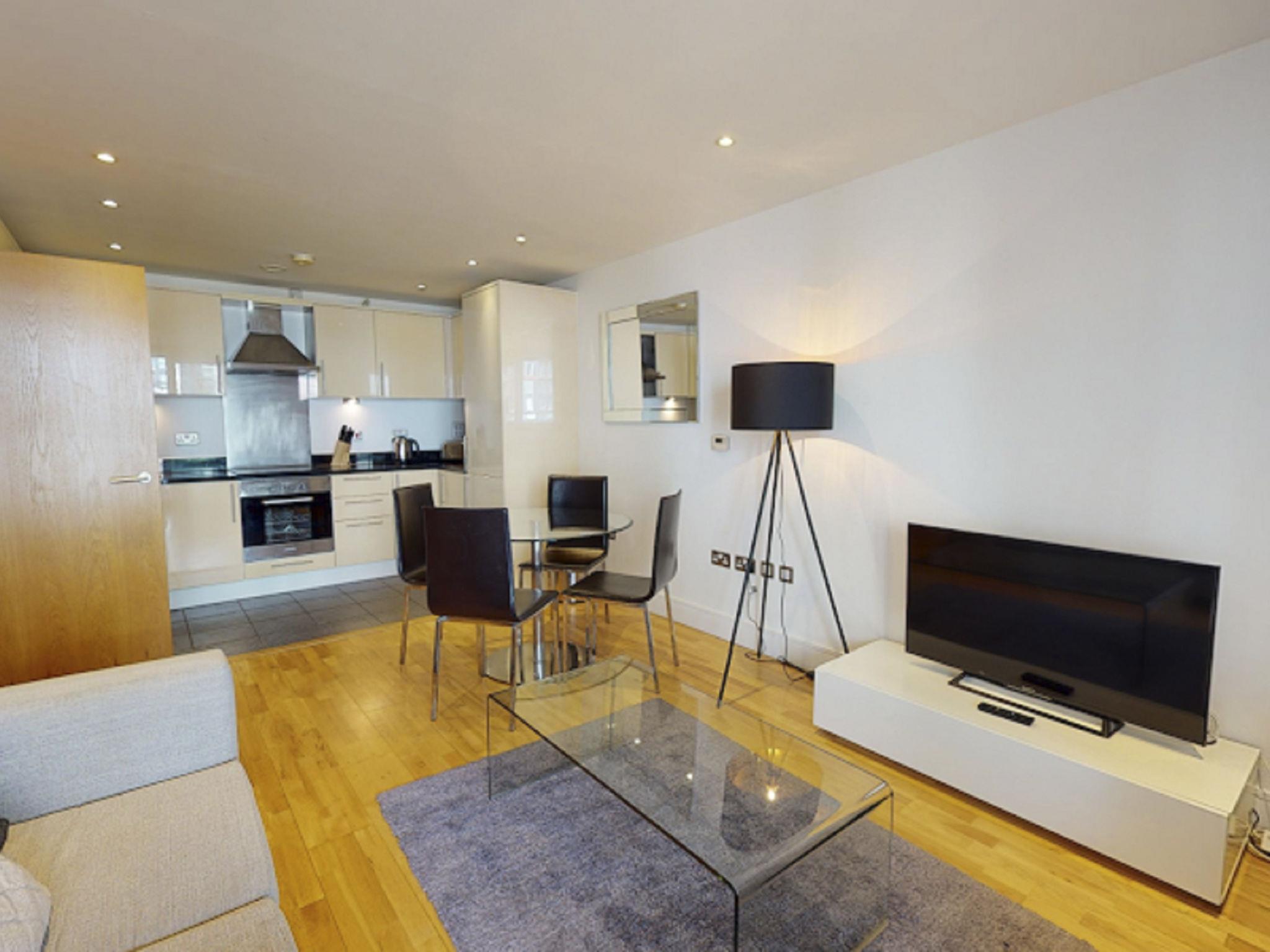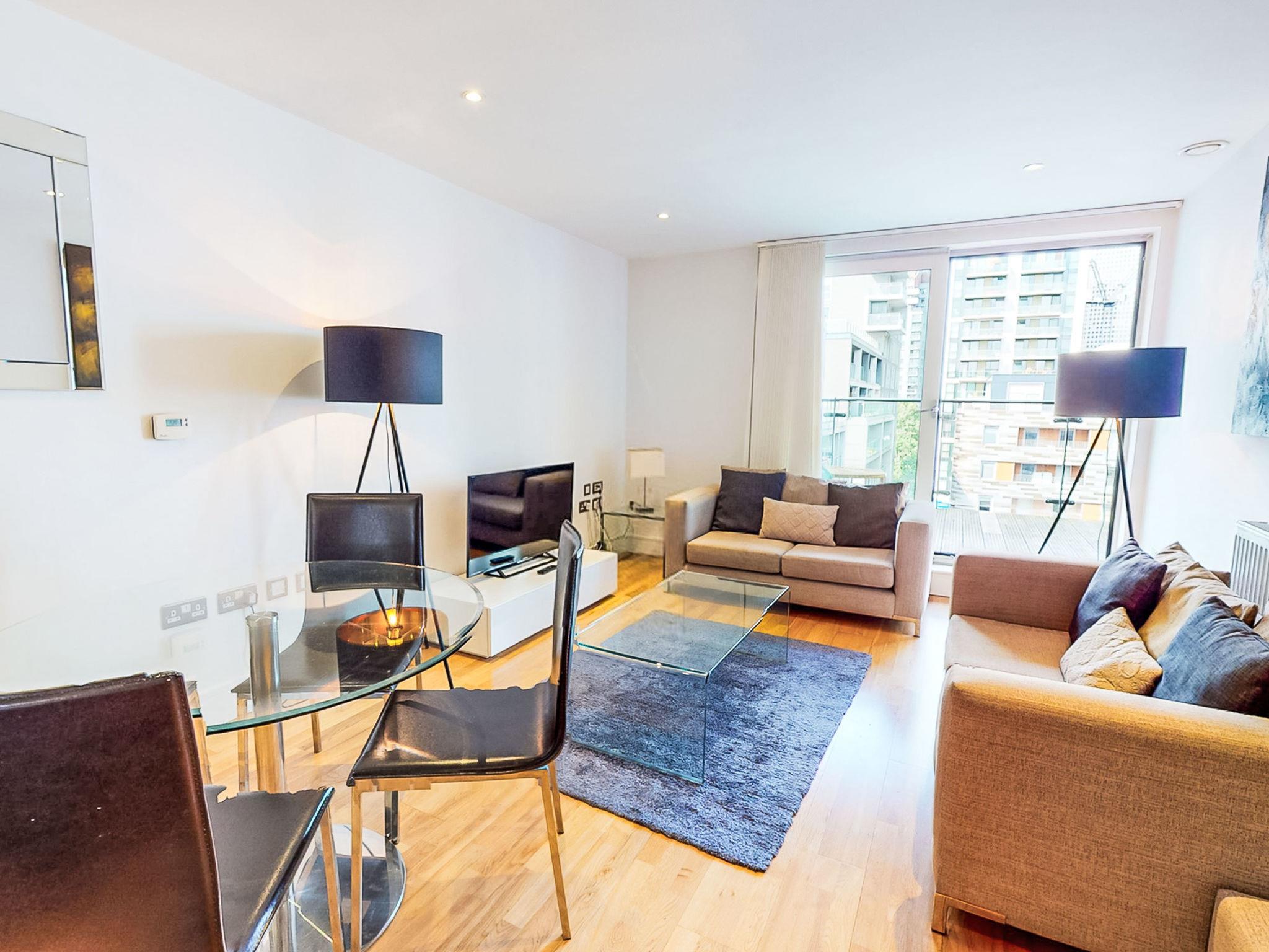Modern apartment block. On the outskirts, 2 km from the centre of Canary Wharf, in a central position. In the house: reception, restaurant, bar, bistro, internet access, WiFi, shopping facilities, lift, central heating system. Room cleaning weekly (included). Bus stop "Hutchings Street" 1 km, railway station "Canary Wharf" 2 km, underground station "Canary Wharf" 2 km. Nearby attractions: Billingsgate market 2 km, O2 Arena 4 km, London Eye 9 km, Greenwich market 8 km, Tower of London & Tower Bridge 5 km, Buckingham Palace 10 km. Please note: baby equipment on request (extra). The photograph shows a typical example. The holiday properties may differ in living space, floorplan, equipment and furnishing.