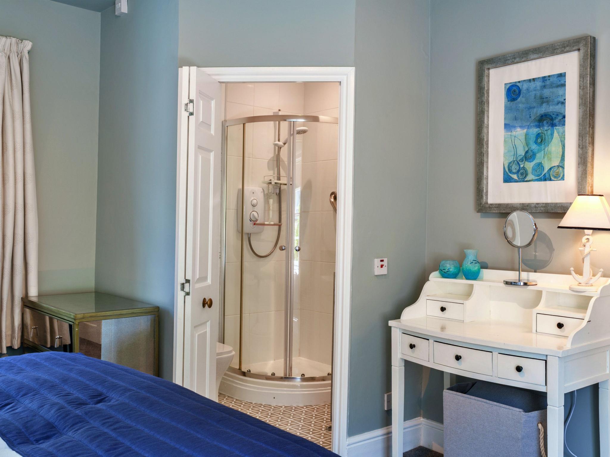 "Woodleigh, Cawsand", 5-room house 120 m2, on the ground floor. Object suitable for 8 adults. Living room. 1 room with 2 x 2 bunk beds. 1 room with 1 french bed. 1 room with 1 french bed. 1 room with 1 double bed. Kitchen (oven, dishwasher, toaster, kettle, microwave, freezer). Bath/WC, shower/WC, sep. WC. Terrace. Facilities: washing machine, iron. Internet (WiFi, free). Please note: non-smokers only. 1 pet/ dog allowed. Smoke alarm.