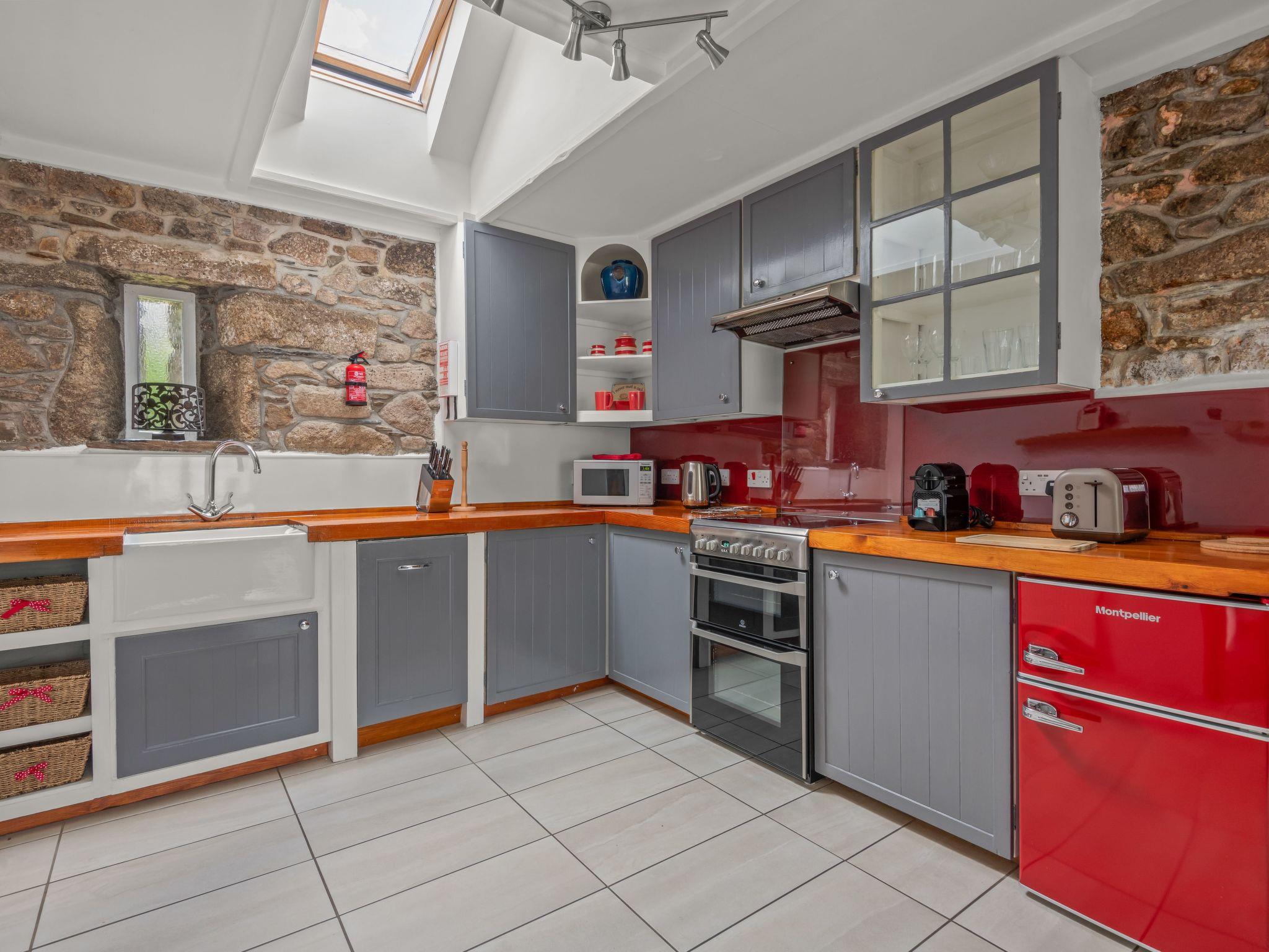 Rosemary is a charming, one double bedroom cottage which has achieved a Four Star Gold Award from Visit England (the UK's official tourist board) it is a single storey, pet friendly property and accommodates 2 people. The open plan layout comprises large refurbished kitchen and spacious dining/lounge area with wood burning stove. A stylish bathroom has been installed with back lit mirror, soft shades of tiling, attractive flooring and a large powerful walk-in shower.Inclusive Extras : Fresh flowers, Cornish cream tea, Unlimited access to fast speed broadband, Starter pack of Nespresso Coffee Pods, Crisp cotton linen, Soft and fluffy towels, Hairdryer, hand wash, free onsite parking, discounted entrance tickets to The Lost Gardens of Heligan. Cottage Features: Wood-burning stove with first basket of logs and kindling can be purchased directly from ourselves at a competitive price ( 1st October to 31st March), Central heating throughout, TV with Freeview, Radio with Bluetooth Technology, American style jug/filter coffee machine, Nespresso machine & pods, Dishwasher, Fast speed wireless broadband, large comfortable sofa and matching armchair, stylish shower room with spacious walk-in shower, fridge/freezer, washing machine and dryer in separate laundry room.