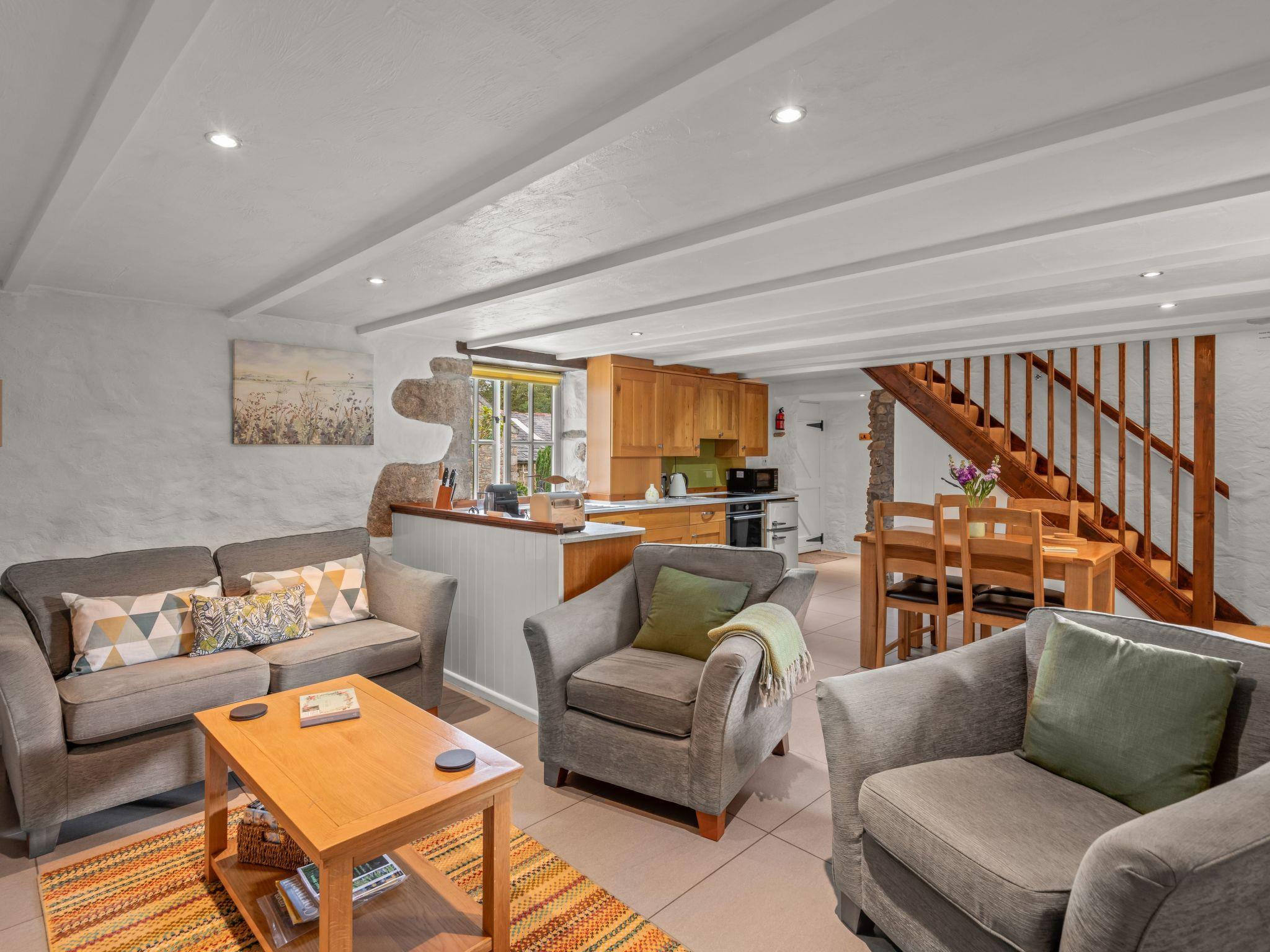 The open plan layout on the ground floor consists of a recently refurbished kitchen/diner and lounge area with a wood burning stove, the two bedrooms on first floor are cosy and inviting with crisp cotton bedding and soft throws. A stylish bathroom has been installed with back lit mirror, new tiling, light fittings, attractive flooring and a large powerful shower. Inclusive Extras : Fresh flowers, traditional Cornish cream tea, Unlimited access to fast speed broadband, Starter pack of Nespresso Coffee Pods, tea bags, Crisp cotton linen, Soft and fluffy towels, hairdryer and hand wash. Cottage Features: Wood-burning stove - baskets of logs and kindling can be purchased directly from ourselves at a very competitive price (1st October to 31st March), central heating throughout, TV with Freeview, radio with Bluetooth technology, comfortable sofa and two armchairs, stylish bathroom with spacious walk in shower, American style jug/filter coffee machine, Nespresso machine & pods, dishwasher, fast speed wireless broadband, fridge/freezer, washing machine and dryer in separate laundry room, private patio with table, chairs, parasol and a Weber BBQ, travel cot, highchair and stair gate.Access to our pretty one acre family friendly guest garden with picnic benches and garden toys, discounted entrance tickets to The Lost Gardens of Heligan and free onsite parking for up to two vehicles per cottage.