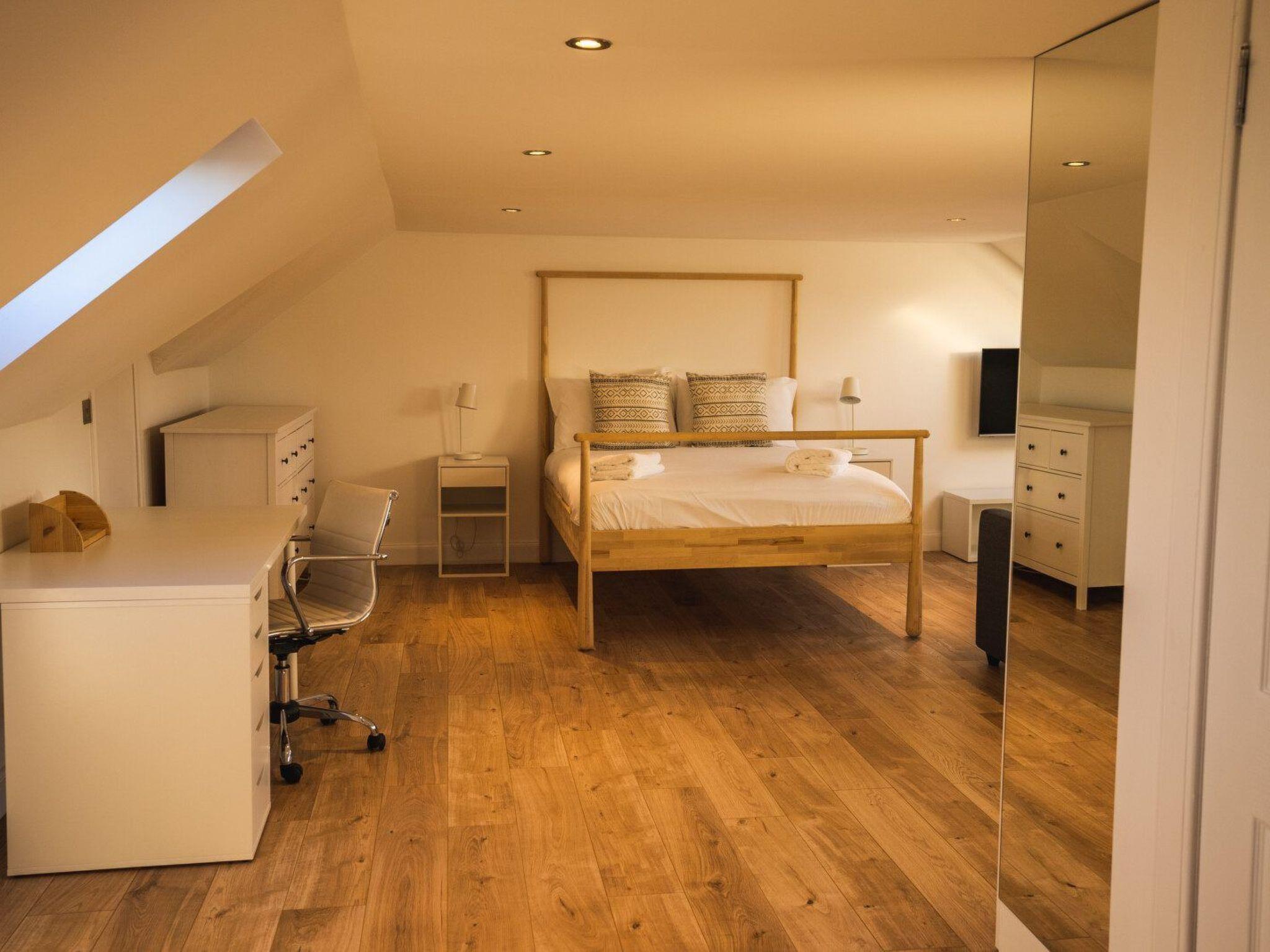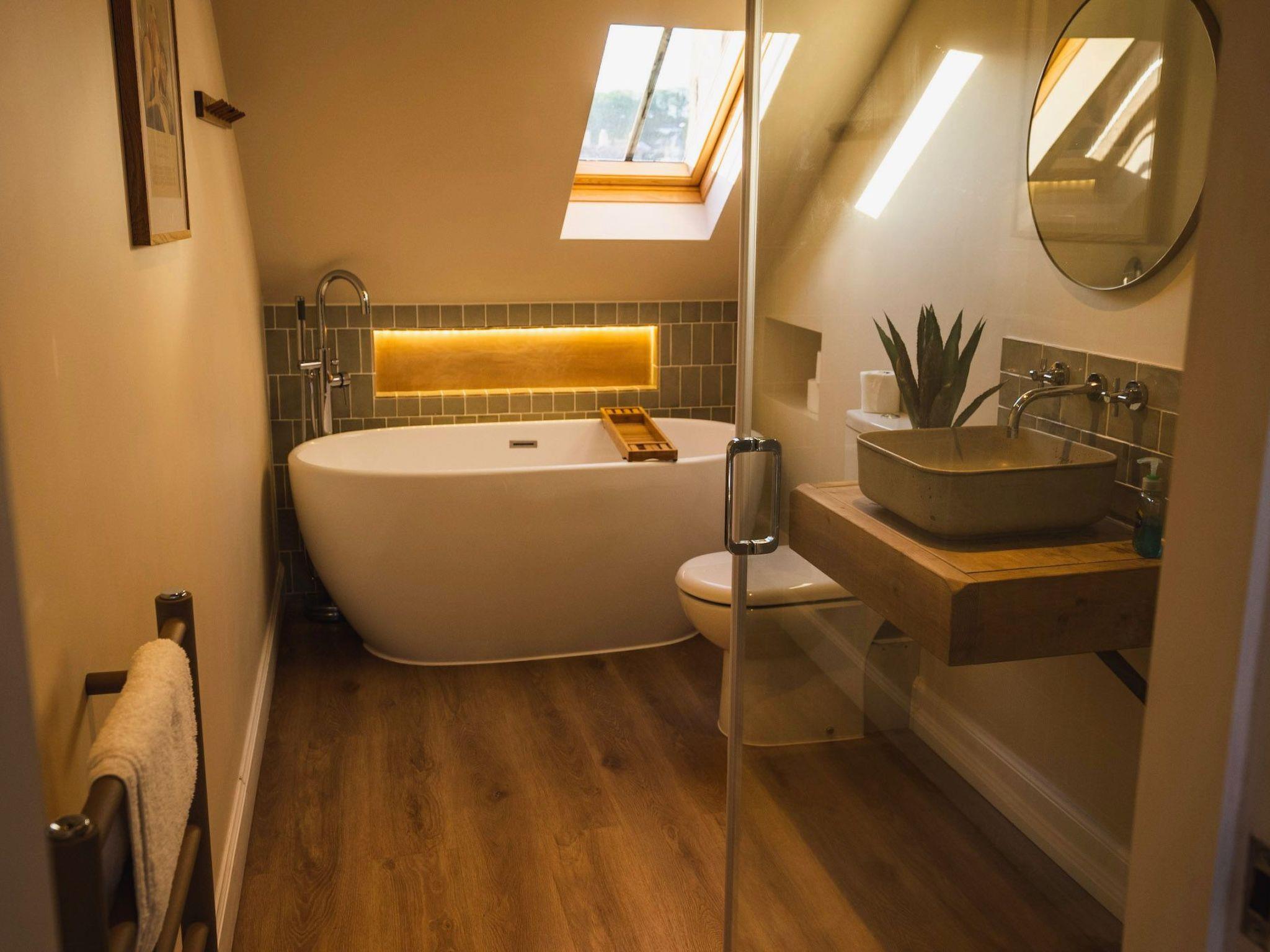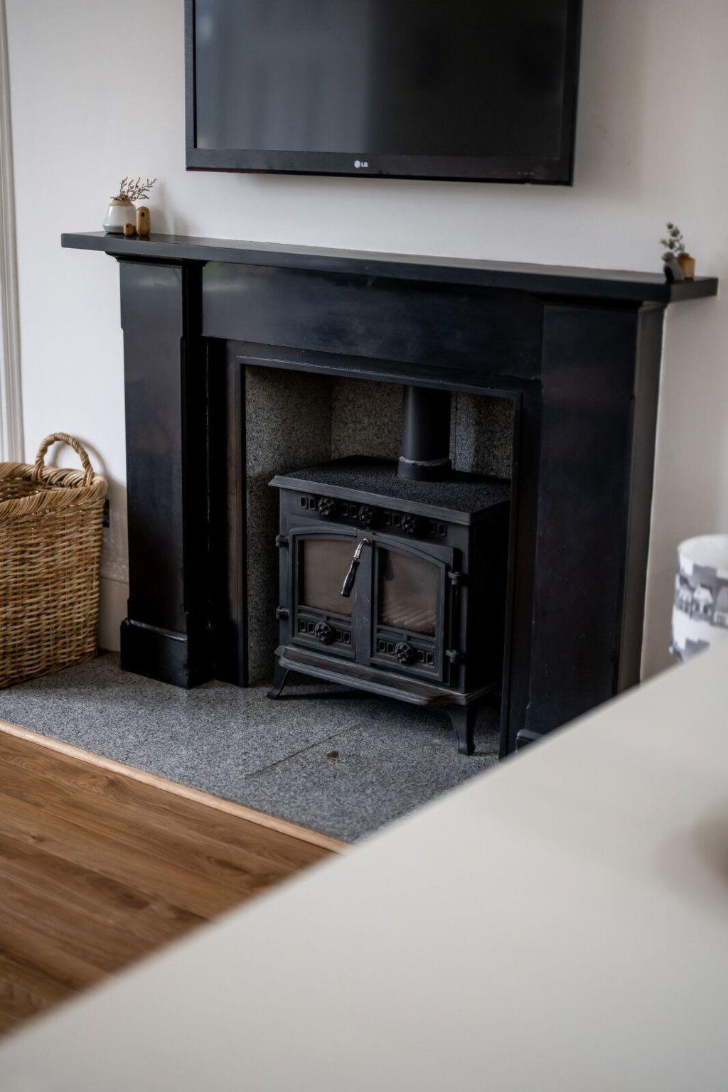 Inside, the home combines classic elegance with modern functionality. The fully equipped kitchen features a gas cooker and dishwasher, while a washing machine and clothes dryer ensure a stress-free stay. Gather around the wood-burning stove after a day of seaside adventure and enjoy cosy evenings in good company.