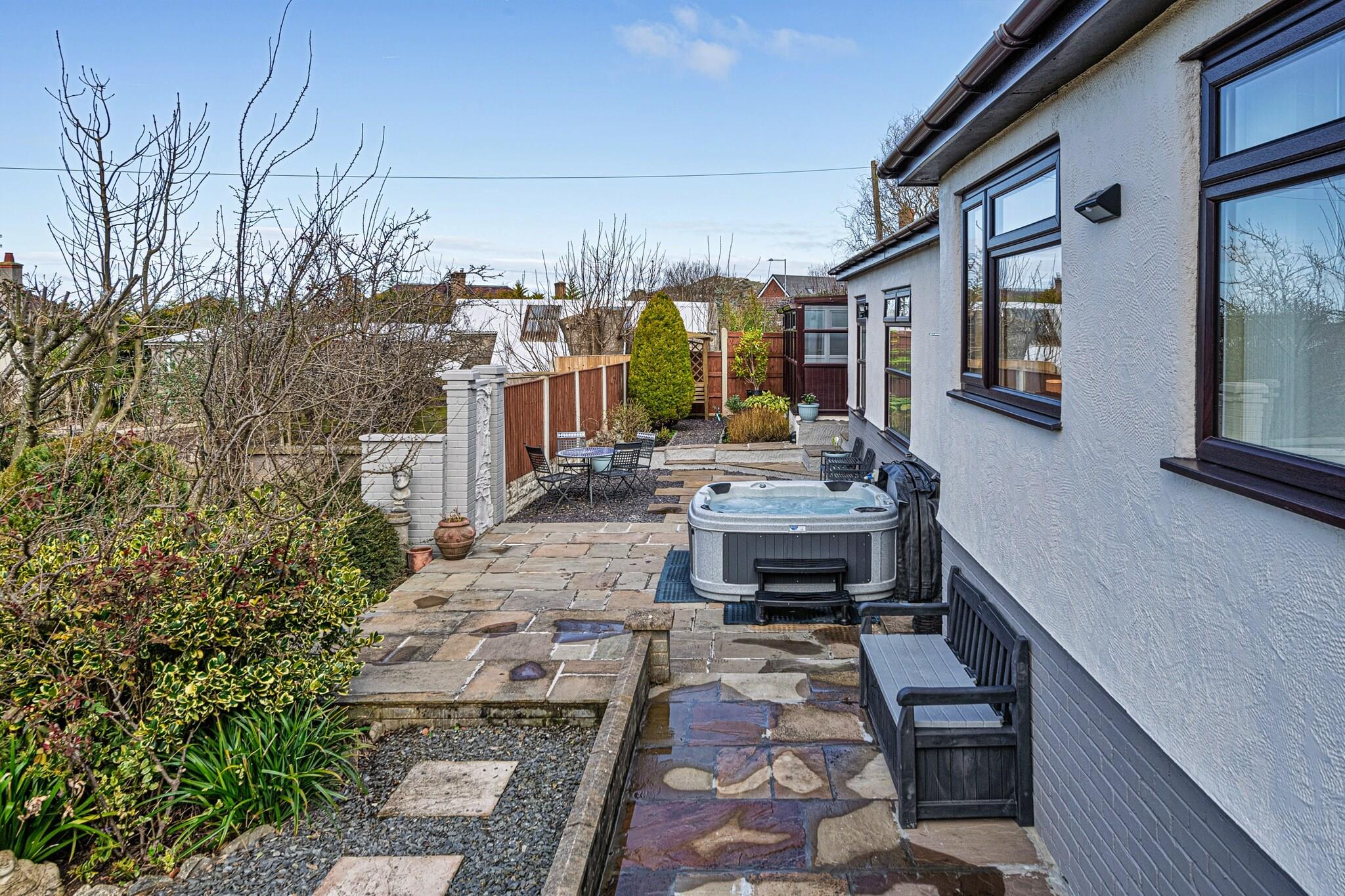 This delightful bungalow is an ideal retreat, featuring two well-appointed bedrooms, including a king-size room with stunning views of the garden and mountains, and a twin room perfect for children or additional guests. With a capacity to accommodate up to four people, it’s an excellent choice for families or small groups. The spacious living area includes a Smart TV and Wi-Fi, while the highlight of the property is the private terrace with a luxurious four-person hot tub. After a day of exploration, unwind in the hot tub, soaking in the fresh air and relaxing under the stars. The large, enclosed garden also offers plenty of space for outdoor enjoyment, and secure off-road parking is available for two vehicles. Nestled in the picturesque village of Dyserth, the property is conveniently located just half a mile from the famous Dyserth waterfall, perfect for a scenic walk. The surrounding area offers a wealth of attractions, including Rhuddlan Castle, nature reserves, and the beautiful beaches of Prestatyn and Talacre. Families will enjoy nearby attractions like the SeaQuarium and Pavilion Theatre in Rhyl, while outdoor enthusiasts can explore Snowdonia National Park, which is just a short drive away. The bungalow’s fully equipped kitchen ensures you have everything you need for a comfortable stay, with an induction hob, double oven, dishwasher, and American-style fridge/freezer. The stylish bathroom features a waterfall shower over the bath, adding a touch of luxury to your stay.