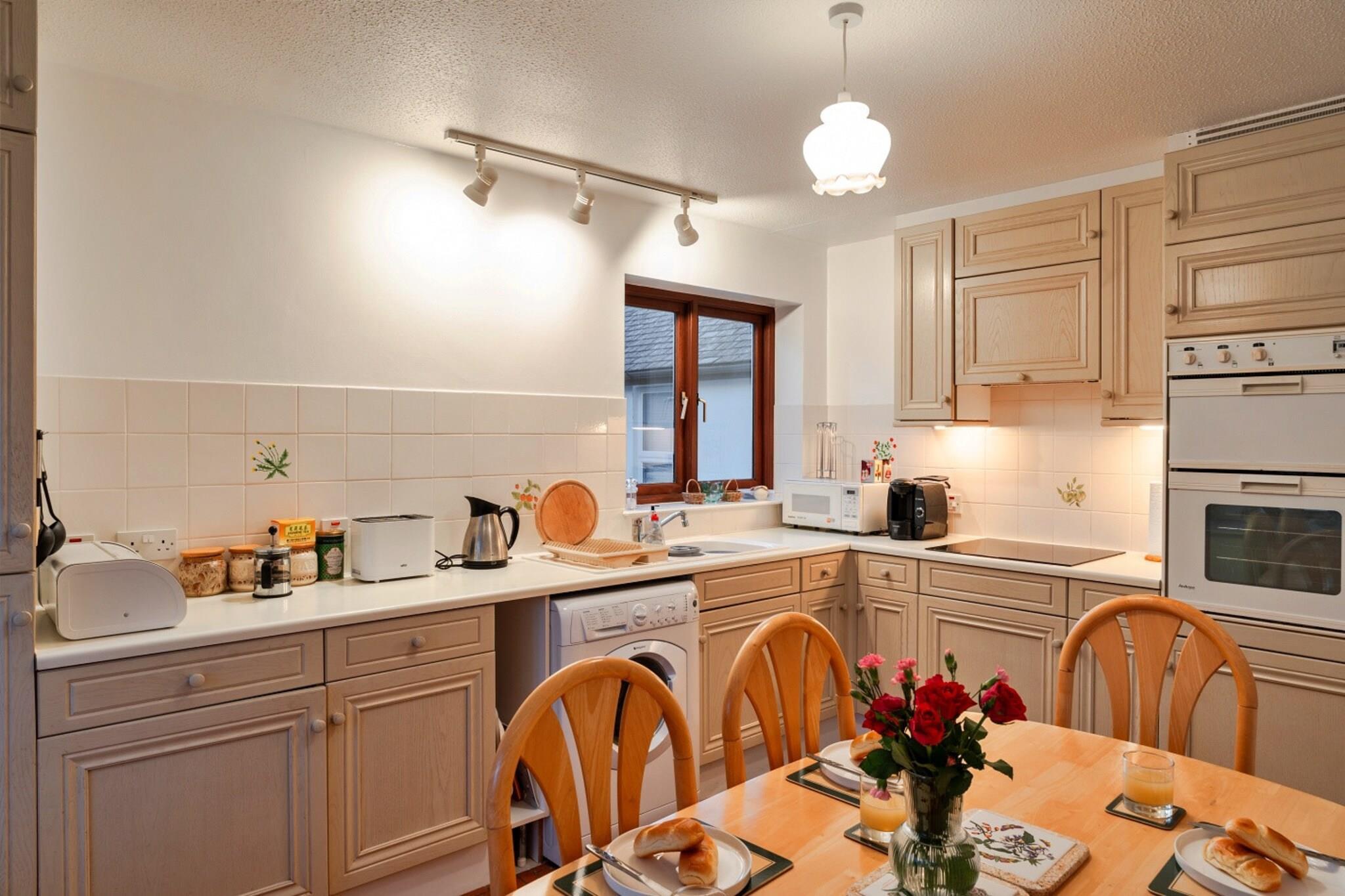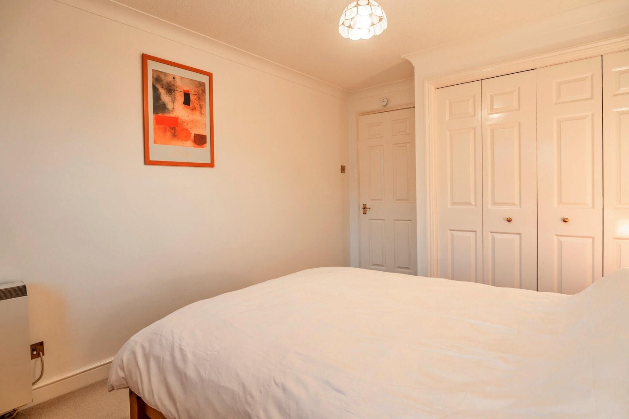 This charming holiday apartment is ideally located in the heart of Falmouth, Cornwall, offering a comfortable and relaxing retreat just a short distance from the town's renowned beaches, picturesque harbour, and lively town centre. Perfect for couples, small families, or those seeking a peaceful getaway, it blends convenience and comfort with the charm of Cornwall. The apartment features a bright and inviting living room, with comfortable striped seating, a large flat-screen TV, and tasteful wooden furnishings. Natural light pours in through the window, creating a warm atmosphere perfect for unwinding after a day of exploration. The fully equipped kitchen combines functionality and style, featuring classic wooden cabinetry, under-cabinet lighting, and all the amenities needed to make your stay enjoyable, whether you're preparing a morning coffee or a family dinner. The serene bedroom includes a plush king-sized bed, crisp white linens, and a vintage-style bedside table with a lamp for a cozy touch. The second bedroom offers flexibility with a single trundle bed that can be pulled out to provide an additional sleeping space. The family bathroom includes a bathtub and an overhead shower. Falmouth is renowned for its stunning sandy beaches, including Gyllyngvase Beach, Swanpool Beach, and Castle Beach, all ideal for swimming, sunbathing, or enjoying water sports like paddleboarding and kayaking. Visit Pendennis Castle, a historic fortress offering spectacular coastal views and fascinating exhibits. The town centre is a charming mix of independent shops, art galleries, and cafes, perfect for exploring, with plenty of opportunities to sample local Cornish treats.