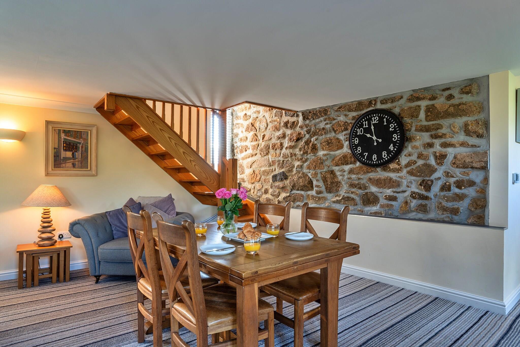 Escape to Trennal Barn, a beautifully converted holiday cottage nestled in the tranquil Cornish countryside of Germoe, near Penzance. This spacious, pet-friendly cottage is the perfect base for families, friends, or couples eager to explore Cornwall’s stunning beaches, scenic trails, and charming coastal towns. The cottage features contemporary decor and modern amenities, creating a warm and welcoming atmosphere for your stay. Enjoy the open-plan living area flooded with natural light from large bifold doors that lead to your private garden. In the evenings, cozy up by the wood-burning stove while watching TV or browsing the internet. Accommodating up to five guests, the accommodation includes a master bedroom with a king-size bed and a second bedroom with a double bed and an additional single. A spacious family bathroom offers both a shower and a separate bath for your convenience. Just a short drive away, discover the stunning sands of Praa Sands and Porthleven, the iconic St Michael’s Mount, and the vibrant market town of Penzance. With its ideal location for exploring Cornwall’s attractions, Trennal Barn promises a memorable getaway. Book your stay today!