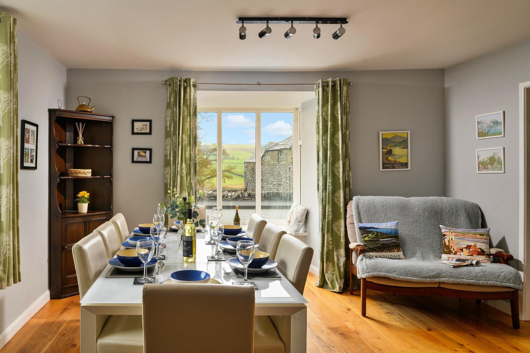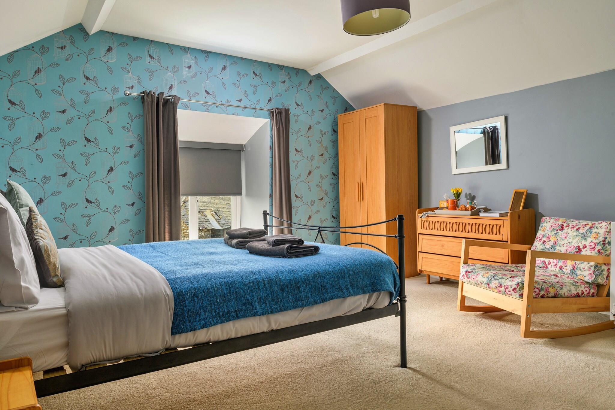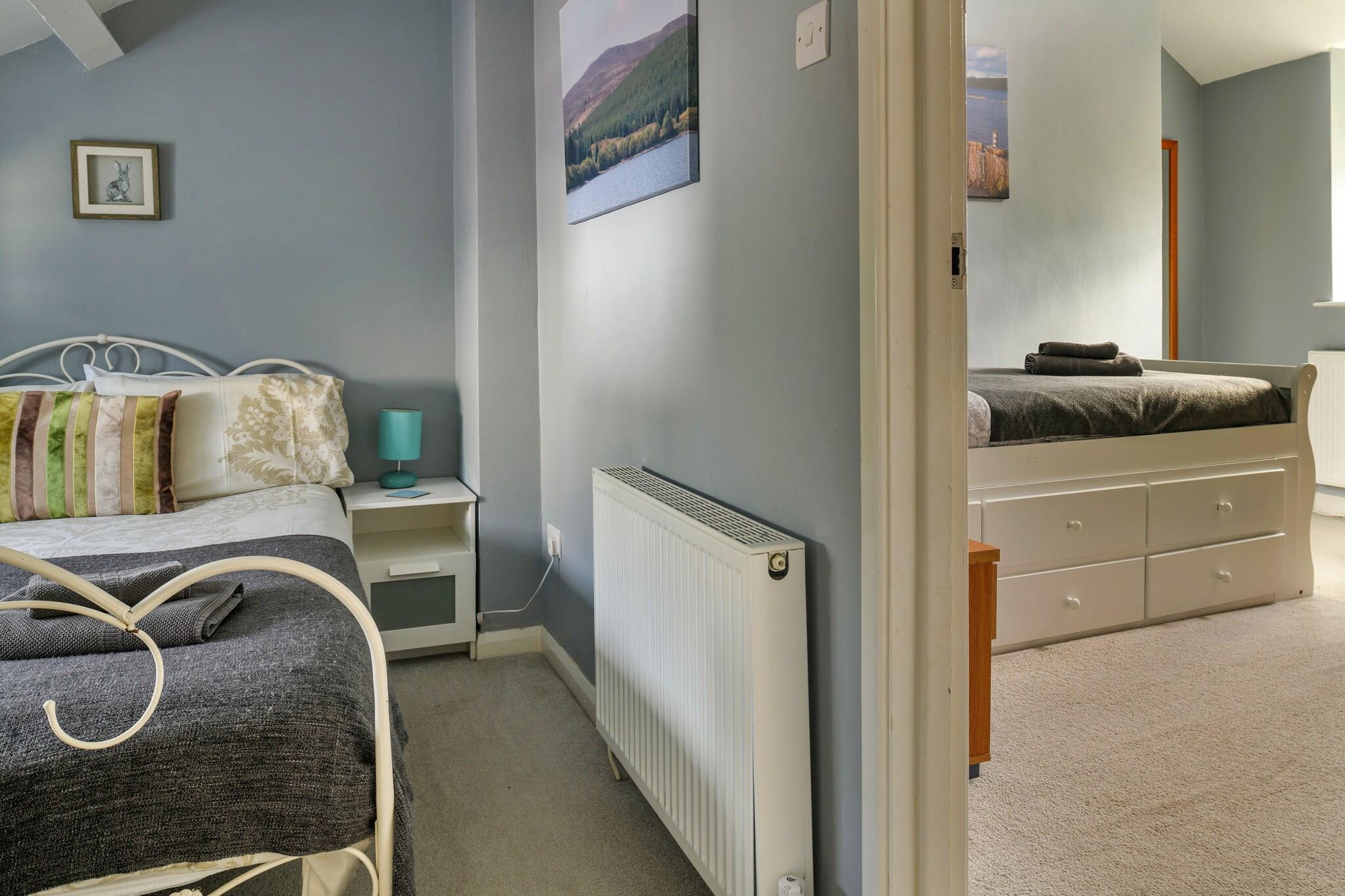 This charming holiday cottage, located on the edge of Snowdonia, comfortably accommodates up to eight guests with its five well-appointed bedrooms. The cottage offers a mix of king-size, double, and single bedrooms, including a ground-floor king-size room with an en-suite toilet and shower. The property is pet-friendly, allowing dogs, and includes amenities such as a log burner in the living room, a modern kitchen, and a utility room ideal for dog walkers. Additionally, a travel cot and high chair are available upon request. There are three parking spaces, and guests are advised to use the rear entrance for safety, especially with children or pets. Nestled in the hamlet of Glasfryn, the cottage is ideally located for exploring the natural beauty and attractions of North Wales. Nearby highlights include a Championship Karting track just a mile away, the scenic Llyn Alwen reservoir (4 miles), and Llyn Brenig (5 miles), with a visitor center and plenty of outdoor activities like boat rentals and cycling. Other notable attractions include the high-altitude Sportsman’s Arms pub (9 miles), Betws y Coed (9 miles), and the iconic Snowdon, which is just a 38-minute drive away. The area is rich with picturesque towns, including Bala, Ffestiniog, and Llangollen, as well as the charming seaside locations of Llandudno and Harlech. The cottage is equipped with a well-sized kitchen-dining area, featuring modern appliances such as a dishwasher, fridge, freezer, and a gas hob. The kitchen is ideal for preparing meals for the whole family or group. The property also includes a bathroom with a toilet and a separate WC on the first floor, ensuring convenience for all guests.