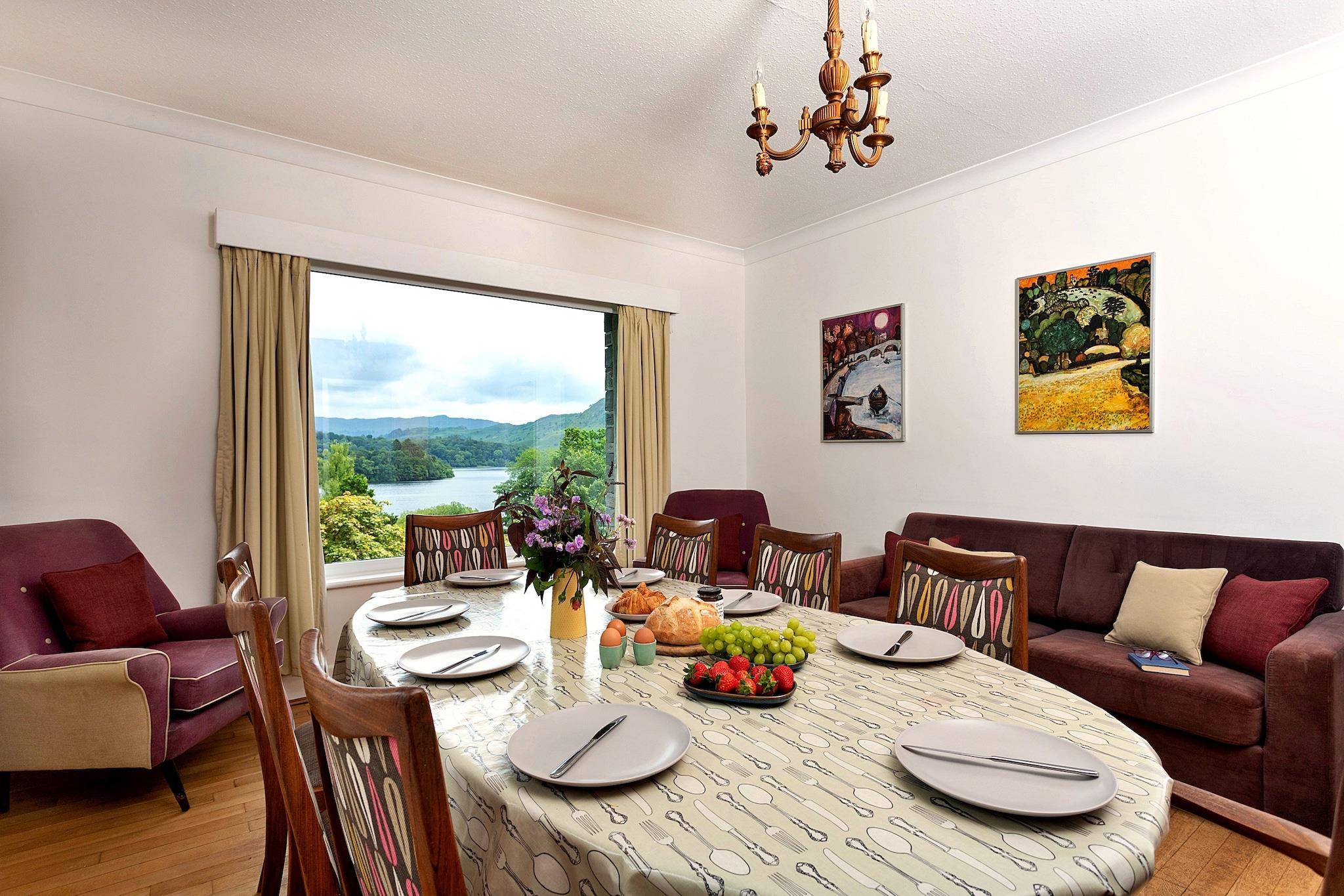 This spacious and welcoming cottage offers a perfect blend of comfort and natural beauty, accommodating up to 8 guests across four bedrooms. The ground floor features a twin room with an en-suite shower and a games room with a table tennis table. The first floor boasts a large living/dining room with stunning views of Grasmere Lake, a cosy wood burner, and a 40" Smart TV. The modern kitchen is fully equipped with a breakfast bar, electric cooker, microwave, fridge, freezer, and dishwasher. The cottage is pet-friendly, welcoming up to four dogs, with the first two staying free of charge. A private parking area for up to 4 cars and exclusive access to the lake for water activities further enhance its appeal. Located just a short stroll from the charming village of Grasmere, the cottage offers easy access to a range of excellent restaurants, tea rooms, and pubs. Nature lovers will appreciate the abundance of nearby walking trails, including the beautiful Grasmere and Rydal Water circuit. The surrounding area is home to local wildlife, such as red deer and red squirrels, ensuring guests can enjoy a serene, nature-filled experience. The location also provides a peaceful and scenic retreat, perfect for relaxation and exploration. The property is equipped with all essential amenities to ensure a comfortable stay, including underfloor oil central heating, Wi-Fi, and an initial supply of logs for the wood burner. The cottage also includes a family bathroom with a bath and shower over it, plus a separate shower room. For families with young children, a cot, highchair, baby monitor, and stair gate are available on request.