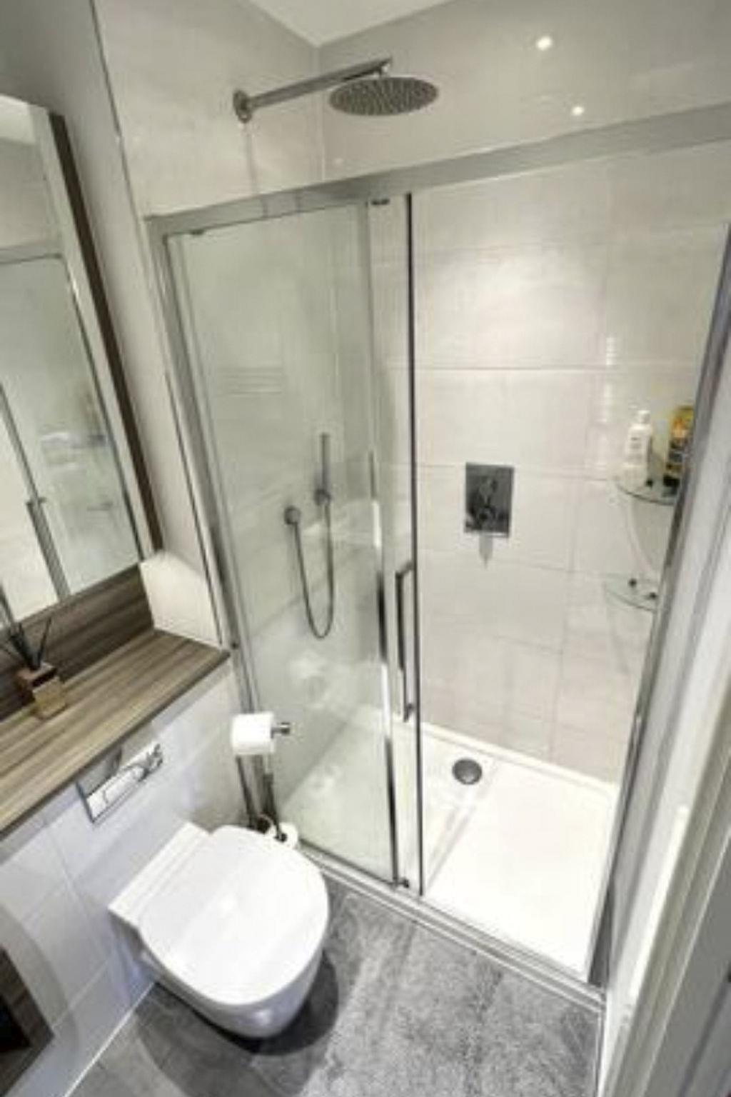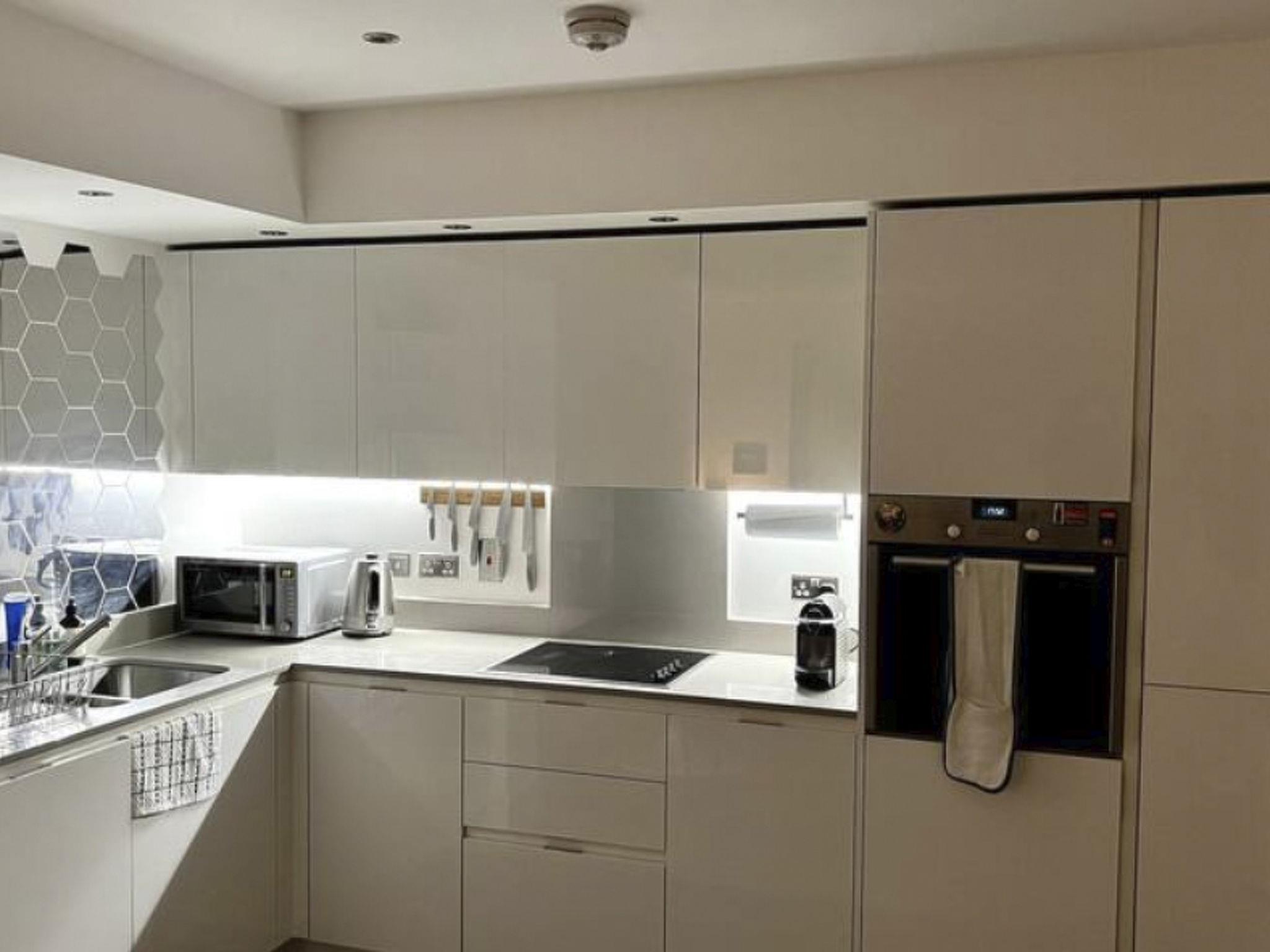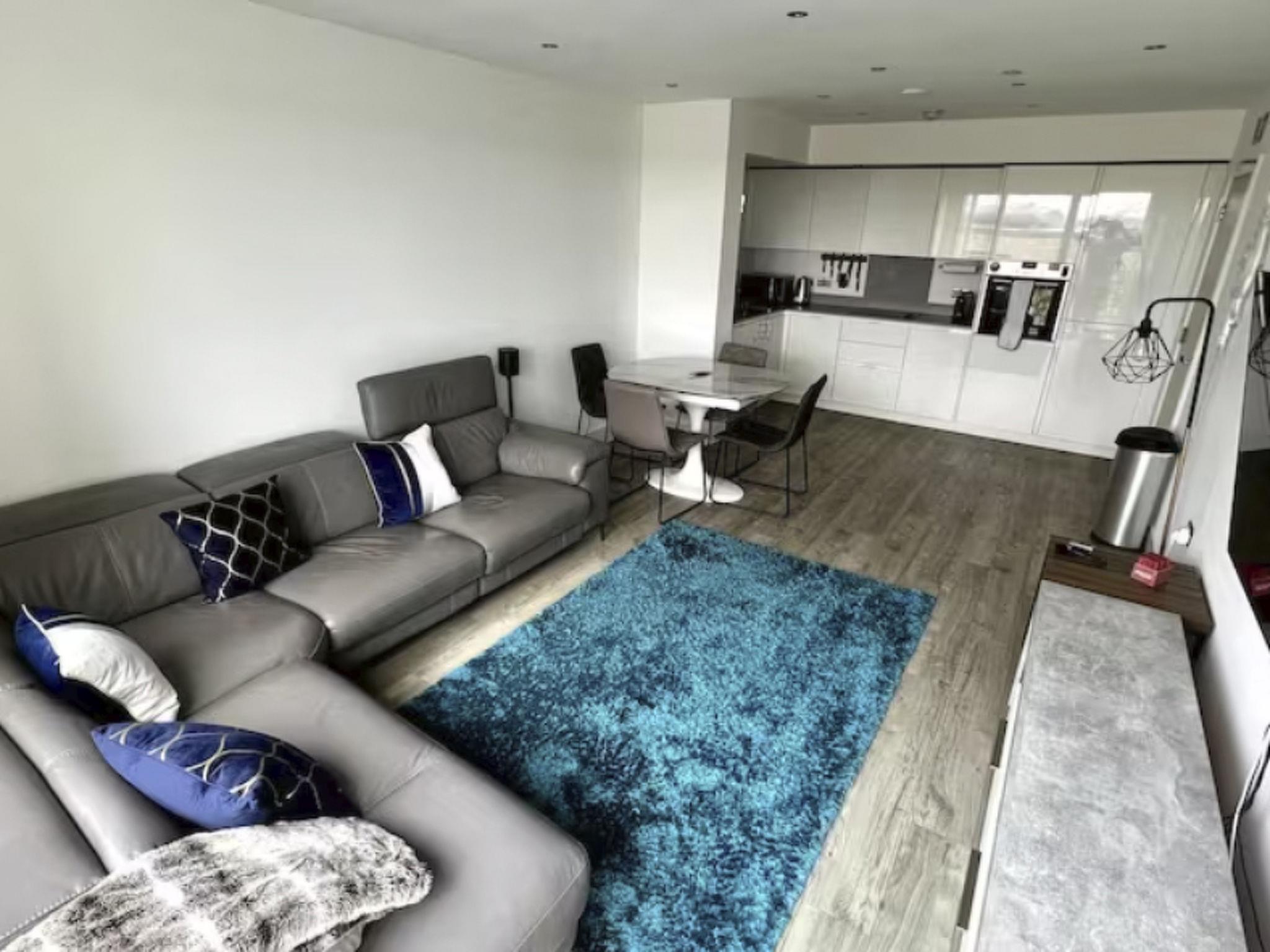 This beautiful top-floor modern apartment has a Super King Bed, 2 modern bathrooms, a fully-equipped kitchen, a comfortable lounge and a balcony complete with stunning views of London.