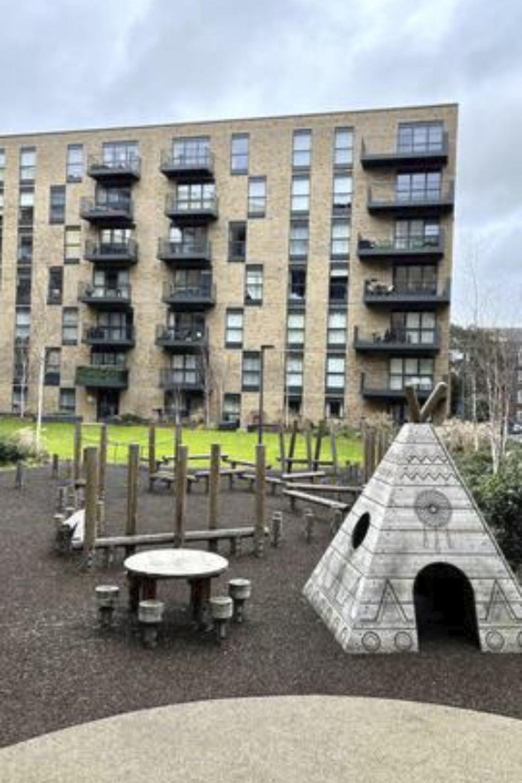A communal green area with children's playground is within the deveopment. The apartment also has it's own balcony, with fantastic views over the London skyline