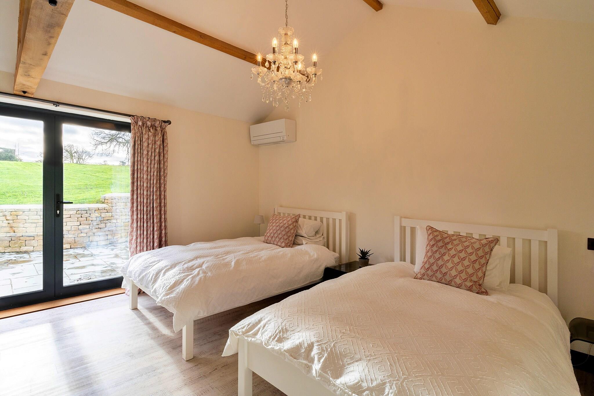 This charming, ground-floor stable conversion offers a perfect retreat for families and friends, with a spacious layout that accommodates up to six guests. The cottage features three well-appointed bedrooms, including a master bedroom with a king-size bed and en suite shower room. The second bedroom offers twin beds, while the third bedroom is ideal for younger guests, with a set of bunk beds. The open-plan kitchen, dining, and family room is perfect for gatherings, and guests can enjoy a seamless indoor-outdoor experience with bifold doors leading to a sun terrace and hot tub, where you can relax and enjoy the stunning countryside views. Located in the heart of the Cotswolds, this cottage is surrounded by areas of outstanding natural beauty. The charming towns of Cheltenham and Stow on the Wold are approximately a 20-minute drive away, offering a variety of shops, restaurants, and cultural attractions. Visitors can explore the local countryside, wildlife, and walking trails, while the nearby regency spa town of Cheltenham provides a vibrant cultural scene with Michelin-starred dining and independent shops. The location is perfect for those looking to unwind and connect with nature. Inside, the property boasts modern amenities, including air conditioning in the living and twin room, underfloor heating, and electric heaters throughout. The kitchen is fully equipped for self-catering, and there is a large family bathroom with a shower, basin, and WC. For outdoor enjoyment, the property offers ample space, a hot tub, and a terrace with sofa seating, perfect for alfresco dining. Additional amenities include off-road parking for two vehicles, Wi-Fi, and a mix of heating options to ensure comfort year-round.
