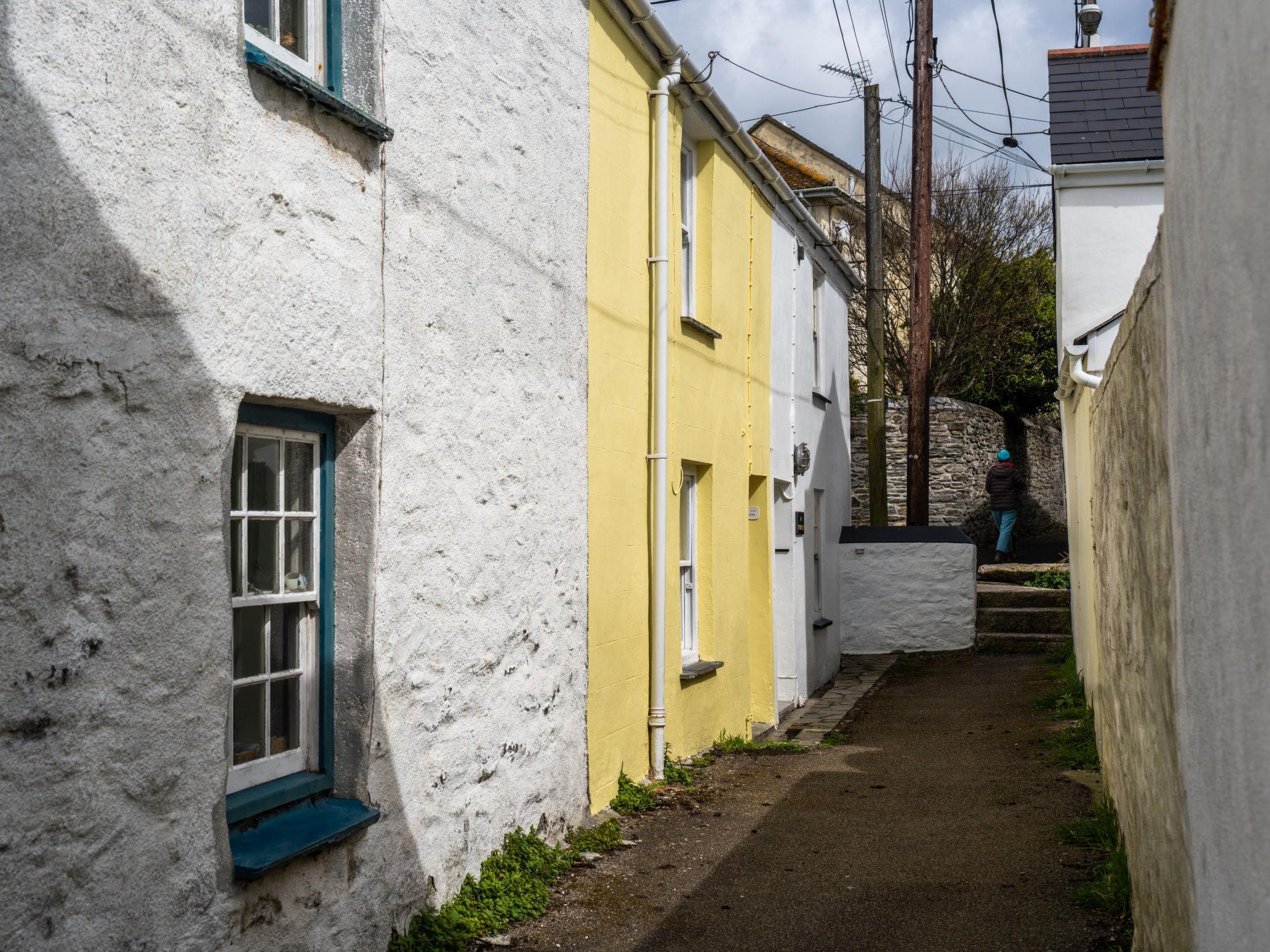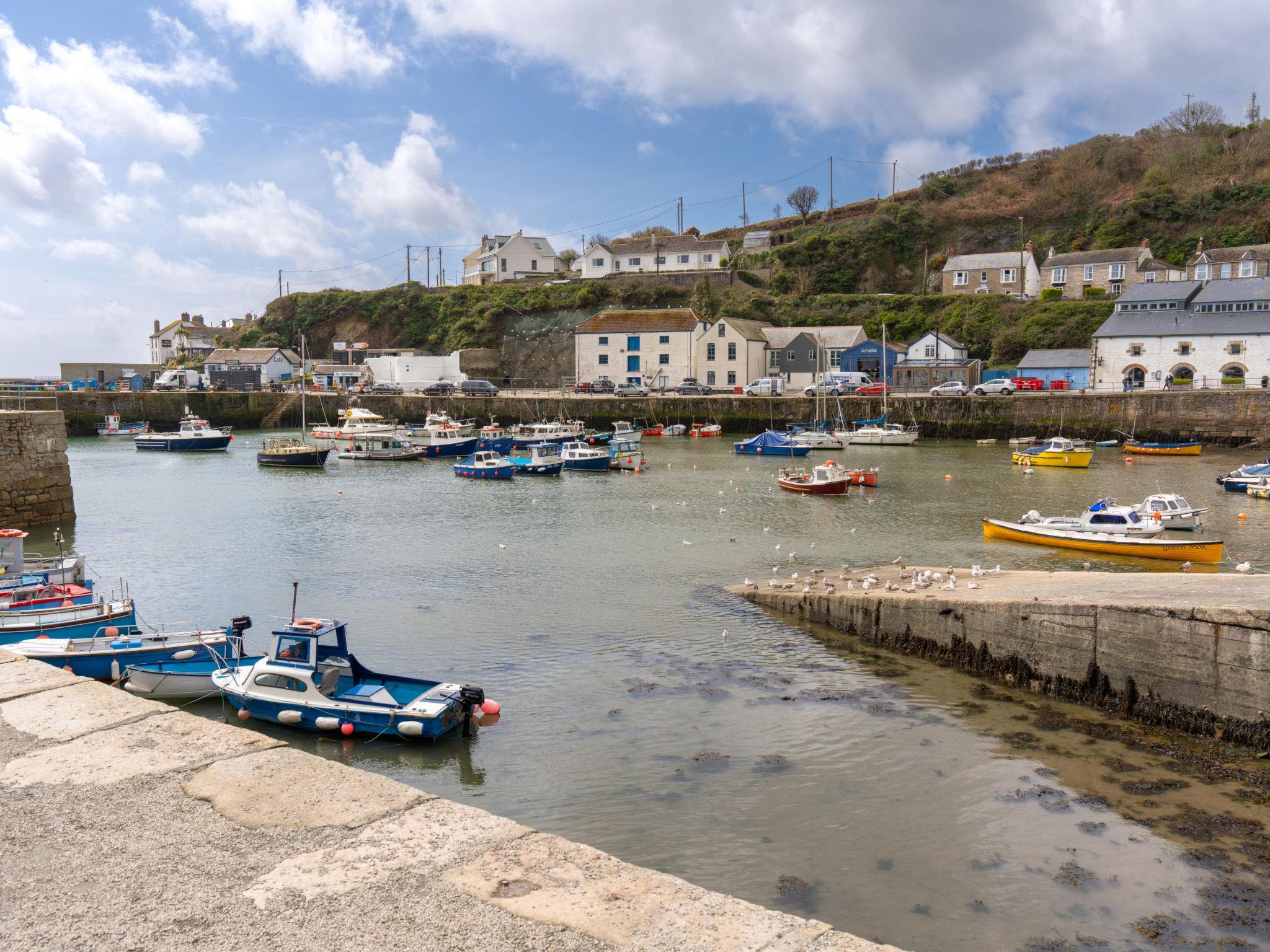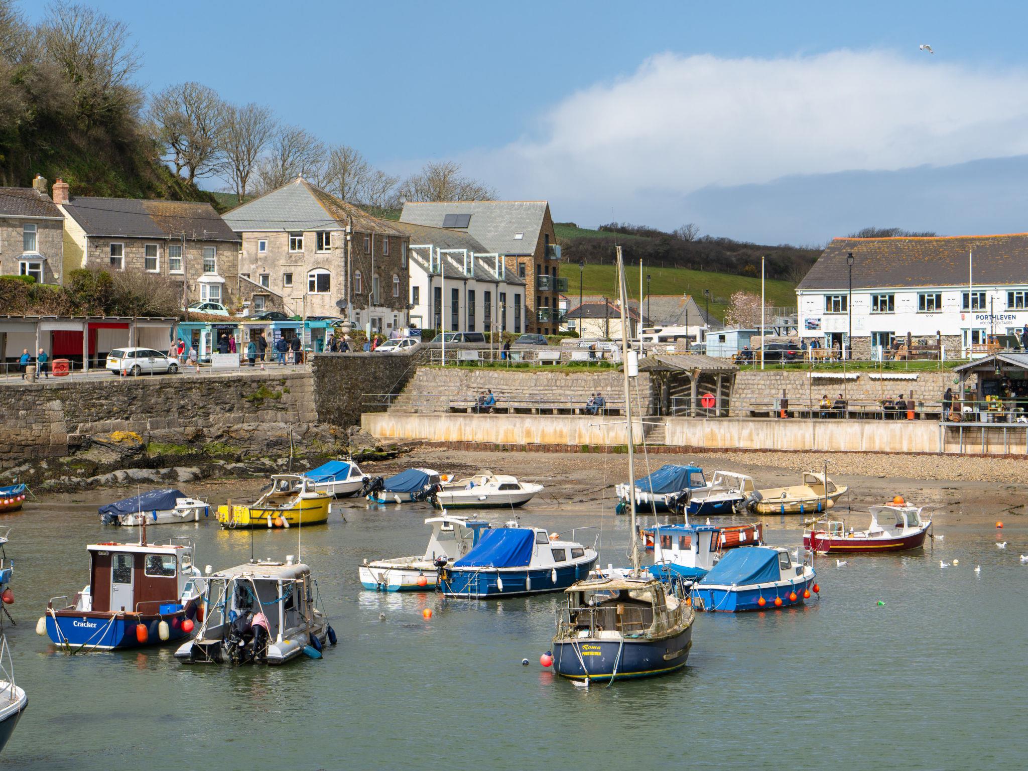 Porthleven: Apartment block. Public parking. Supermarket 100 m, restaurant, sandy beach 300 m.