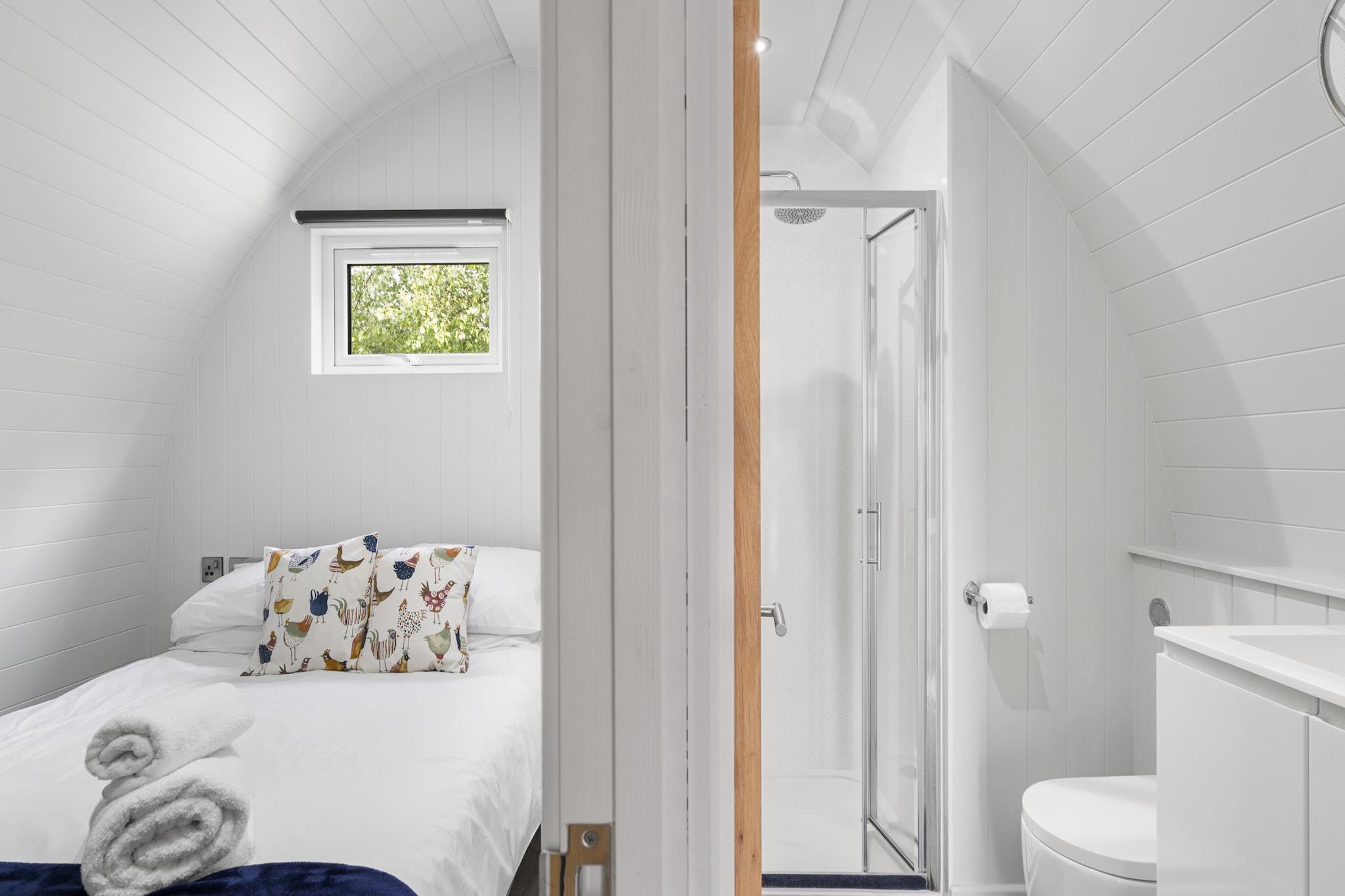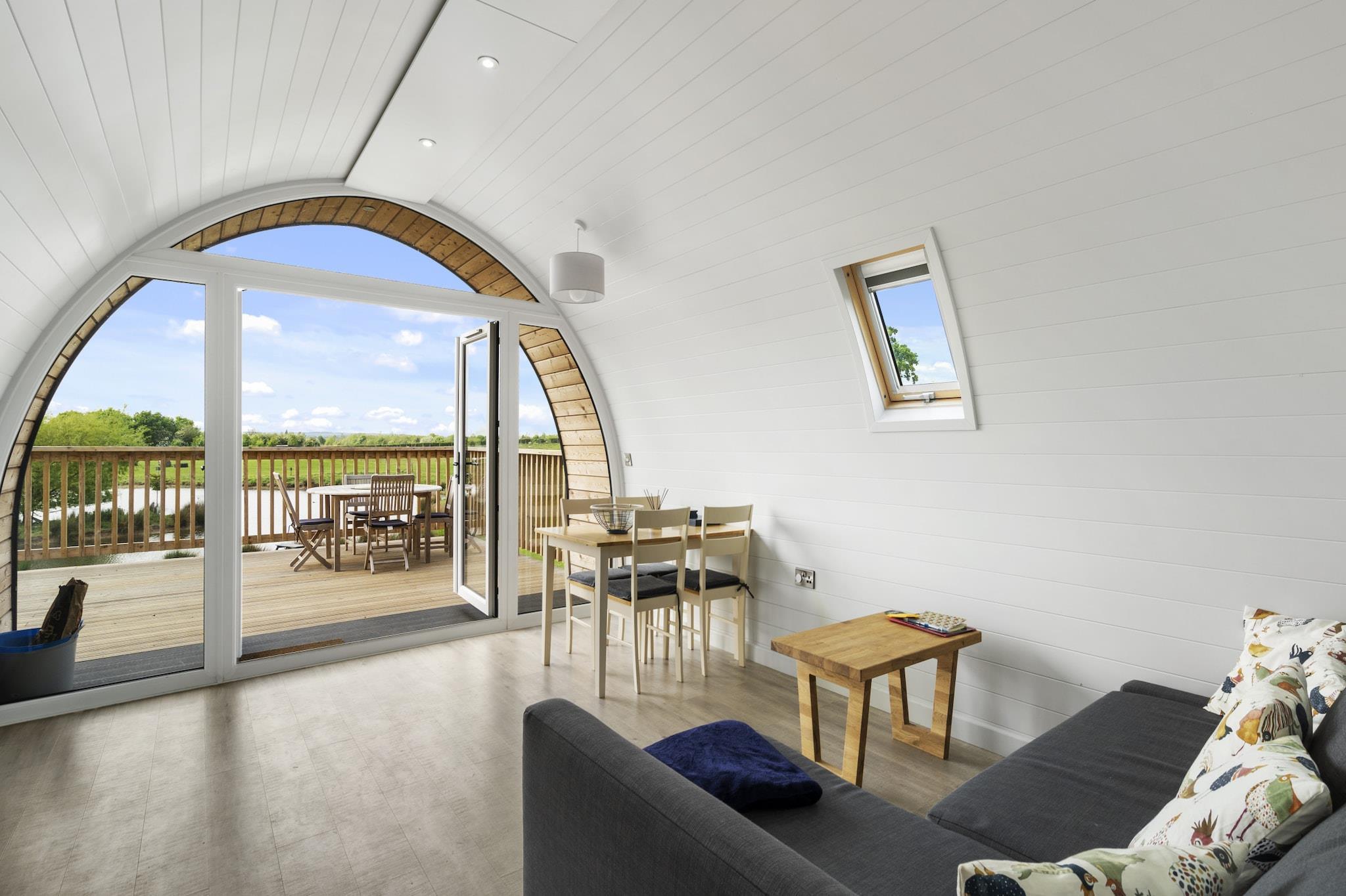 This cozy chalet accommodates up to six guests with two bedrooms — one featuring a double bed and the other two single beds — and a double sofa bed in the living room. Ideal for families and couples, the property is pet-friendly for up to two well-behaved pets (with a nightly fee). A private wood-fired hot tub offers serene lake views, and the stay includes free access to an on-site farm park where guests can meet animals like alpacas and lambs. A BBQ is available for warm summer evenings, and guests also receive discounts at the farm’s local-produce shop. Located just a few minutes' drive from the centre of Hertford and the A10, this chalet offers the perfect balance between rural peace and urban convenience. Nearby attractions include Hertford Castle with its public gardens, and the Chadwell Way Sculpture Trail — a scenic five-mile walking route through Hertford, Ware, and Great Amwell. Local pubs, cafés, and shopping options are easily accessible, making it a well-connected yet peaceful retreat. Inside, guests will find an open-plan kitchen, dining, and living area, along with a private shower room. The kitchen comes equipped with all the essentials, including a stove, fridge, kettle, and dining space, while heating, bed linen, towels, and final cleaning are all included in the stay. Additional rules apply such as no lake swimming and restrictions on open flames inside, with check-in available on select days from 3–6 p.m.