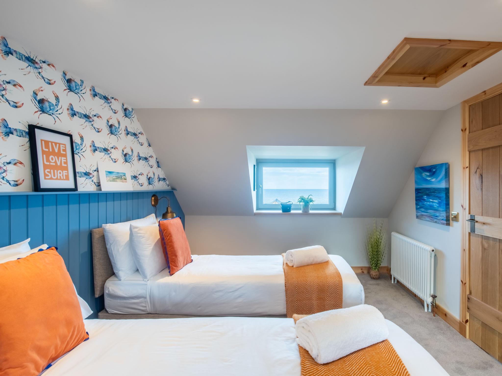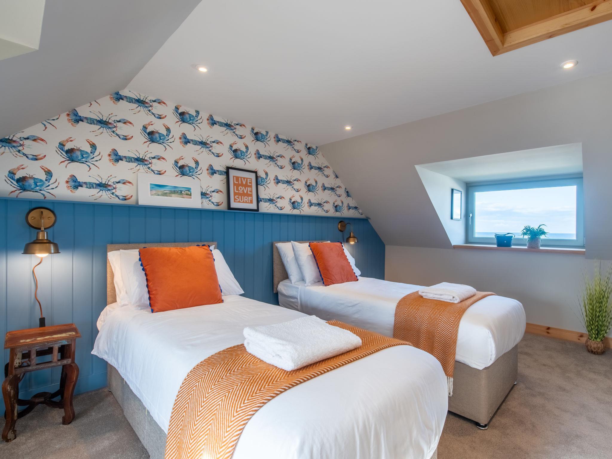 4-room house. Beautiful and tasteful furnishings: living/dining room with dining table, digital TV and heating stove. 1 double bedroom with shower/WC. Kitchen (oven, 4 ceramic glass hob hotplates, toaster, kettle, microwave, freezer). Exit to the garden. Upper floor: 1 room with 2 beds. 1 double bedroom with 1 double bed. Bath or shower/WC. Partial view of the sea. Please note: non-smoking house. TV only EN. Smoke alarm.