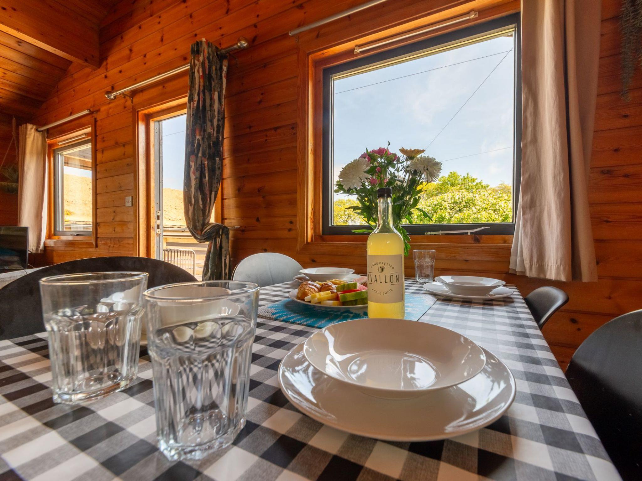 Please note as this is an eco concious site you will need to bring your own towels. Beautiful, cosy chalet "Lodge 5", surrounded by trees. On the outskirts, 10 km from the centre of Launceston, 1 m along the wooded area, 20 km from the sea, 10 m from the lake, 200 km from the beach, in the countryside, in the woods. For shared use: trees, orchard. Central parking spaces. Grocery 11 km, supermarket 11 km, bakery 10 km, café 3 km, bus stop "North Petherwin Bus Shelter" 6 km, railway station "Liskeard" 38 km, sandy beach "Crackington Haven" 18 km, lake Roadford Lake 20 km. Sailing school 20 km, tennis 12 km, minigolf 21 km, fishing possibilities 20 km. Nearby attractions: Summerleaze Beach 21 km, Halvana Plantation 25 km, Tintagel Castle 28 km, Trethorne Leisure Park 15 km, Boscastle Historical Fishing Port 25 km, Hidden Valley Puzzle Park 15 km. Well-known lakes can easily be reached: Roadford Lake 20 km. Hiking paths: Nines Stone Circle 29 km, Crackington Haven Circular Walk 20 km. Please note: suitable for families. On the estate animal husbandry. The complex has another 5 chalets for rent.
