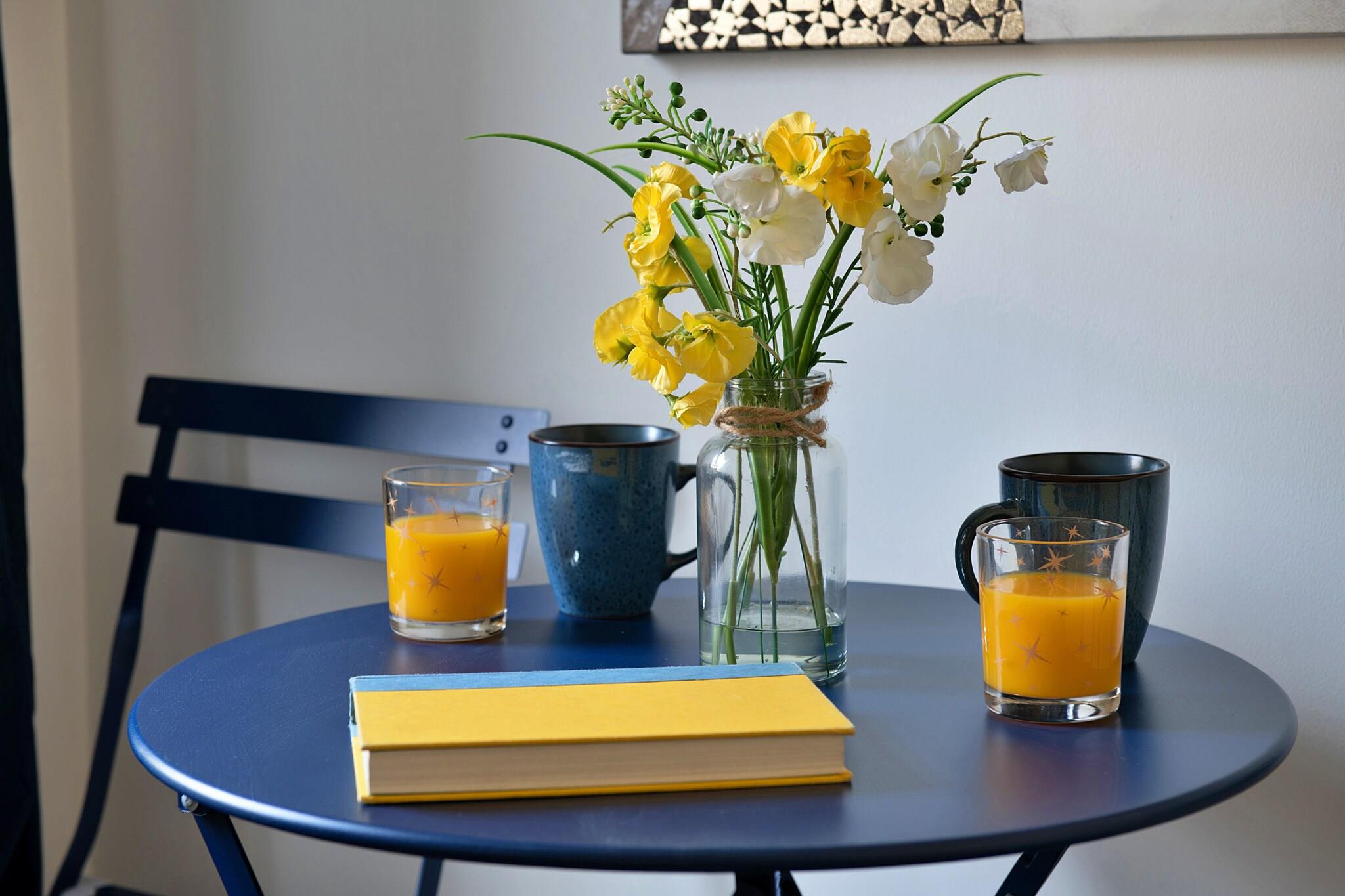 Living room(double sofa bed, TV, dining table, seating area), Kitchen(electric kettle, toaster, oven, fridge), bedroom(double bed), bathroom(shower), Internet access, Garden Furniture , balcony, heating(central), heating, dishes and cutlery