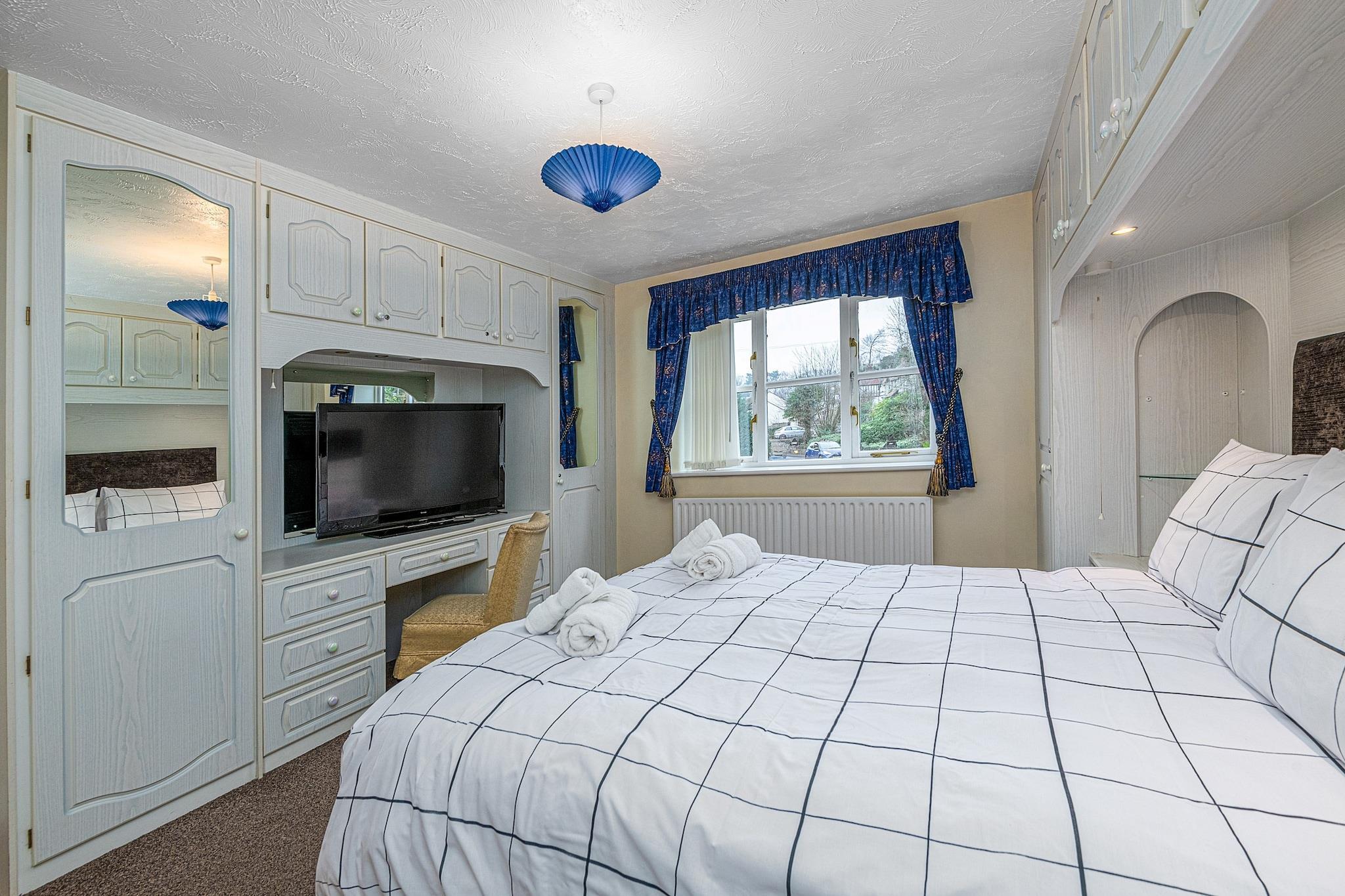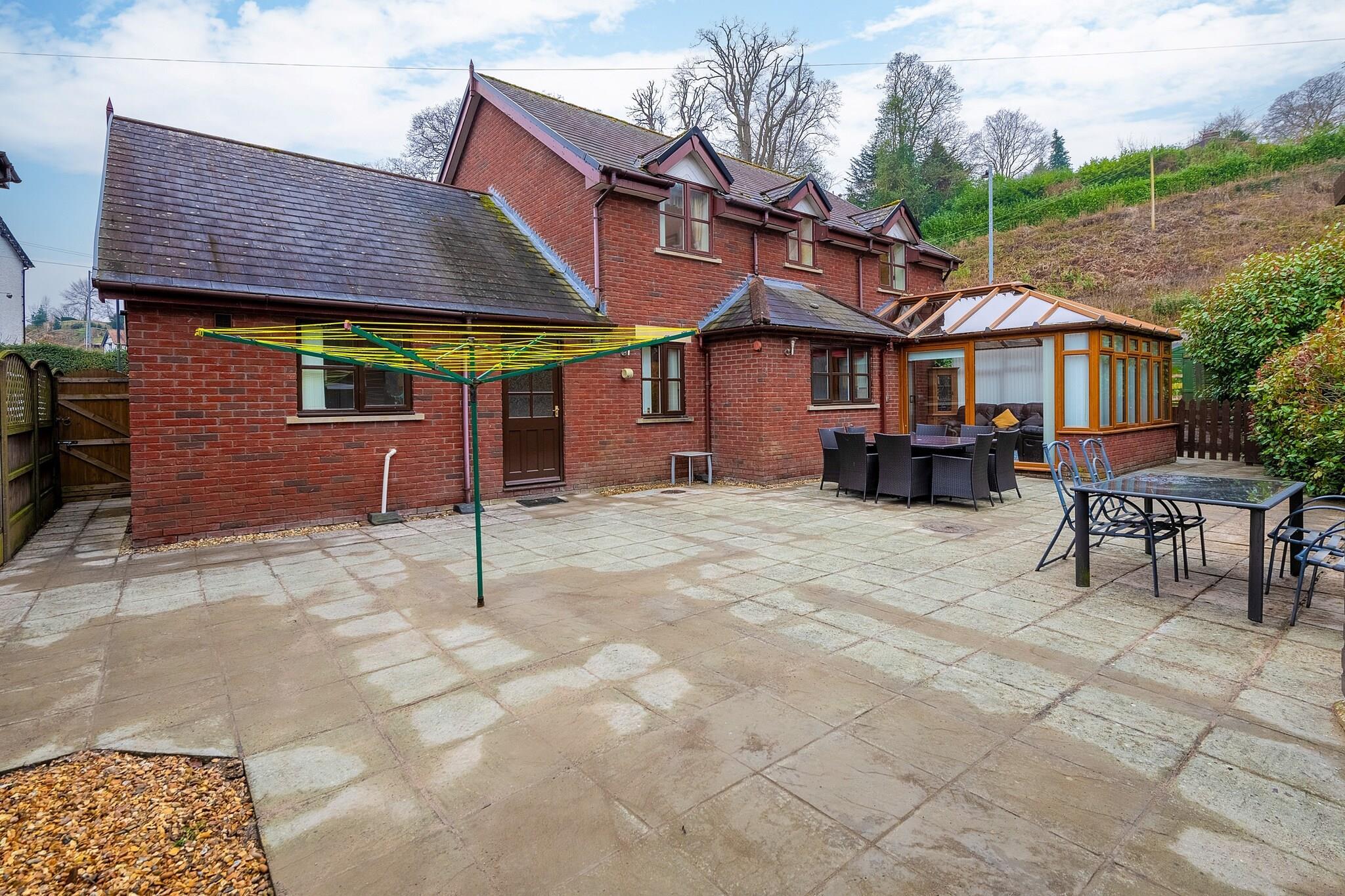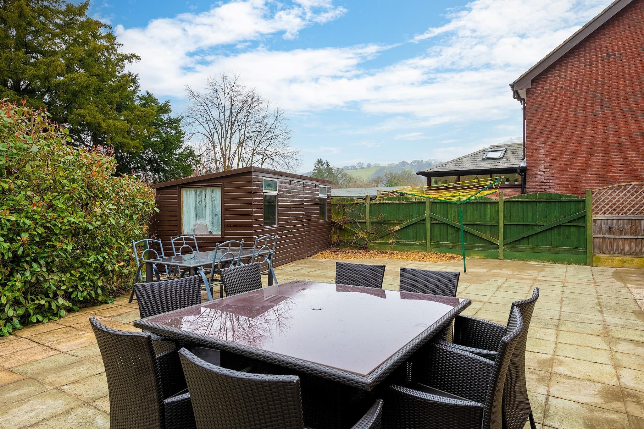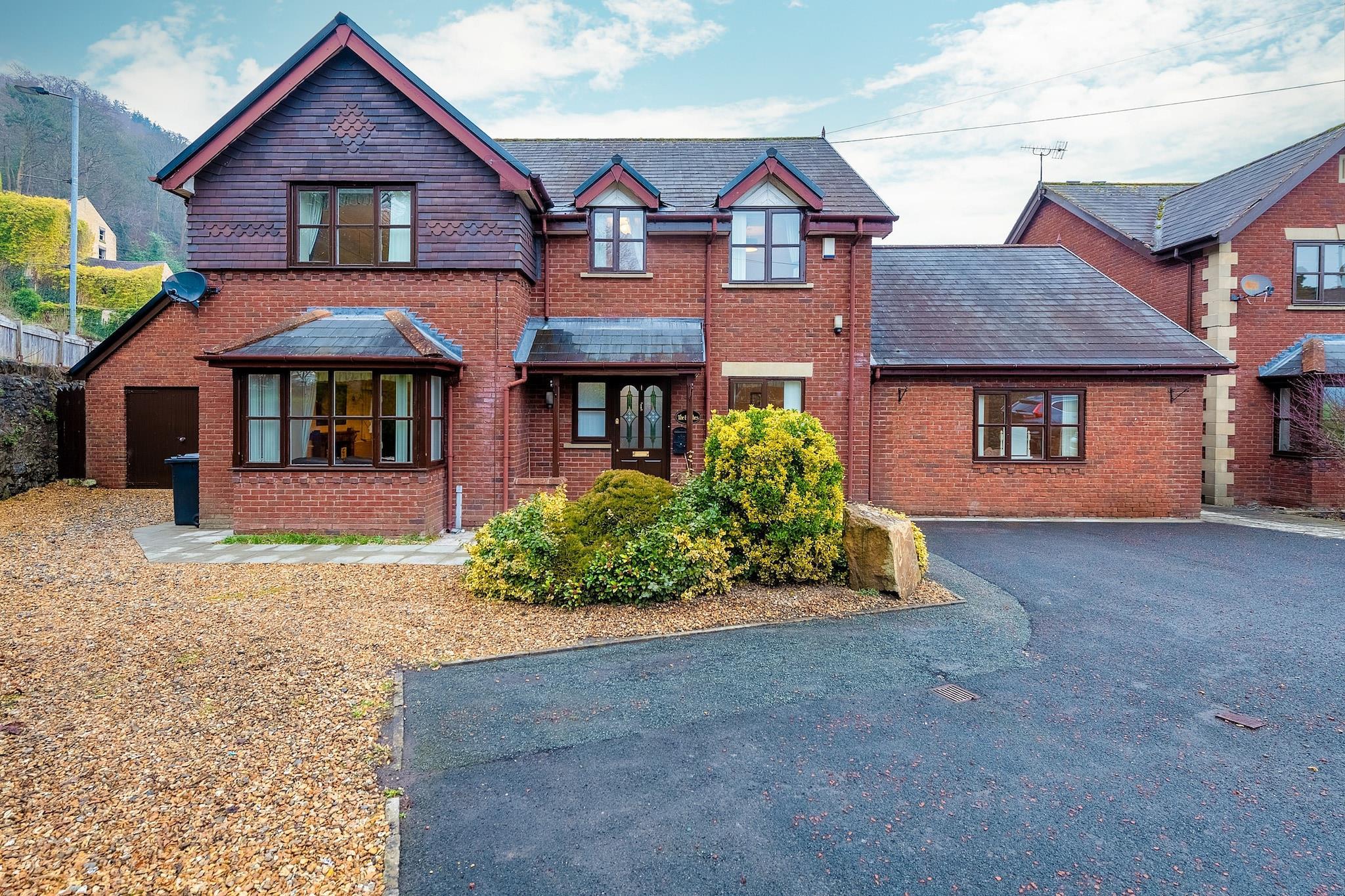 This modern, well-equipped five-bedroom house offers a spacious and comfortable retreat for up to 10 guests. Perfect for families or groups, the property features two king-size bedrooms with en-suite facilities, a double room, and two twin rooms, one of which includes a TV. The house boasts a range of amenities, including a large kitchen with a Rangemaster range, microwave, fridge/freezer, and dishwasher, as well as a utility room with a washing machine. The house also has a conservatory, a sitting room with an electric fire and basic SKY TV, and a snug with Freeview TV. Outside, the enclosed patio garden includes a summerhouse and offers breathtaking views of the Castell Dinas Brân ruins. Located just a four-minute walk from the heart of Llangollen, guests have easy access to local shops, pubs, and the town's attractions. The property is also within reach of scenic canal boat trips, water sports, and walking trails. For those looking to explore further, nearby National Trust properties like Chirk Castle and Erddig are easily accessible. Llangollen is situated close to the Offa’s Dyke Path, ideal for hiking enthusiasts, and the dramatic landscapes of Snowdonia are just an hour's drive away. Additional amenities include a travel cot, highchair, and stairgate for younger guests, along with off-road parking for three cars. The house is pet-friendly and welcomes two well-behaved dogs. For convenience, bed linen, towels, and Wi-Fi are provided, while a booking fee, security deposit, and optional accidental damage cover are additional costs.