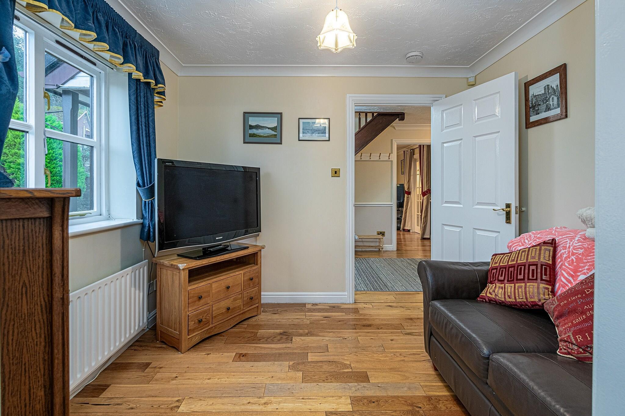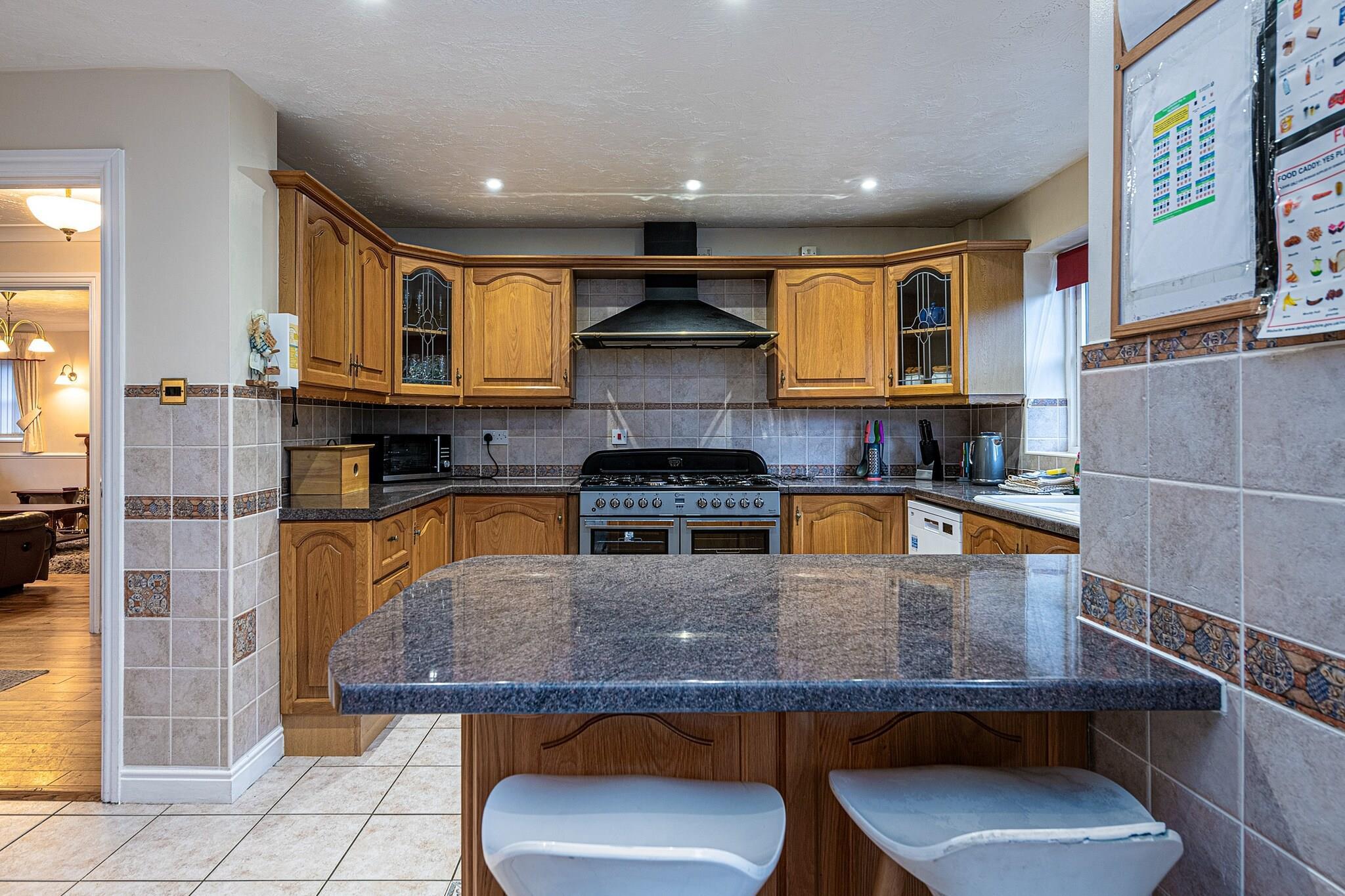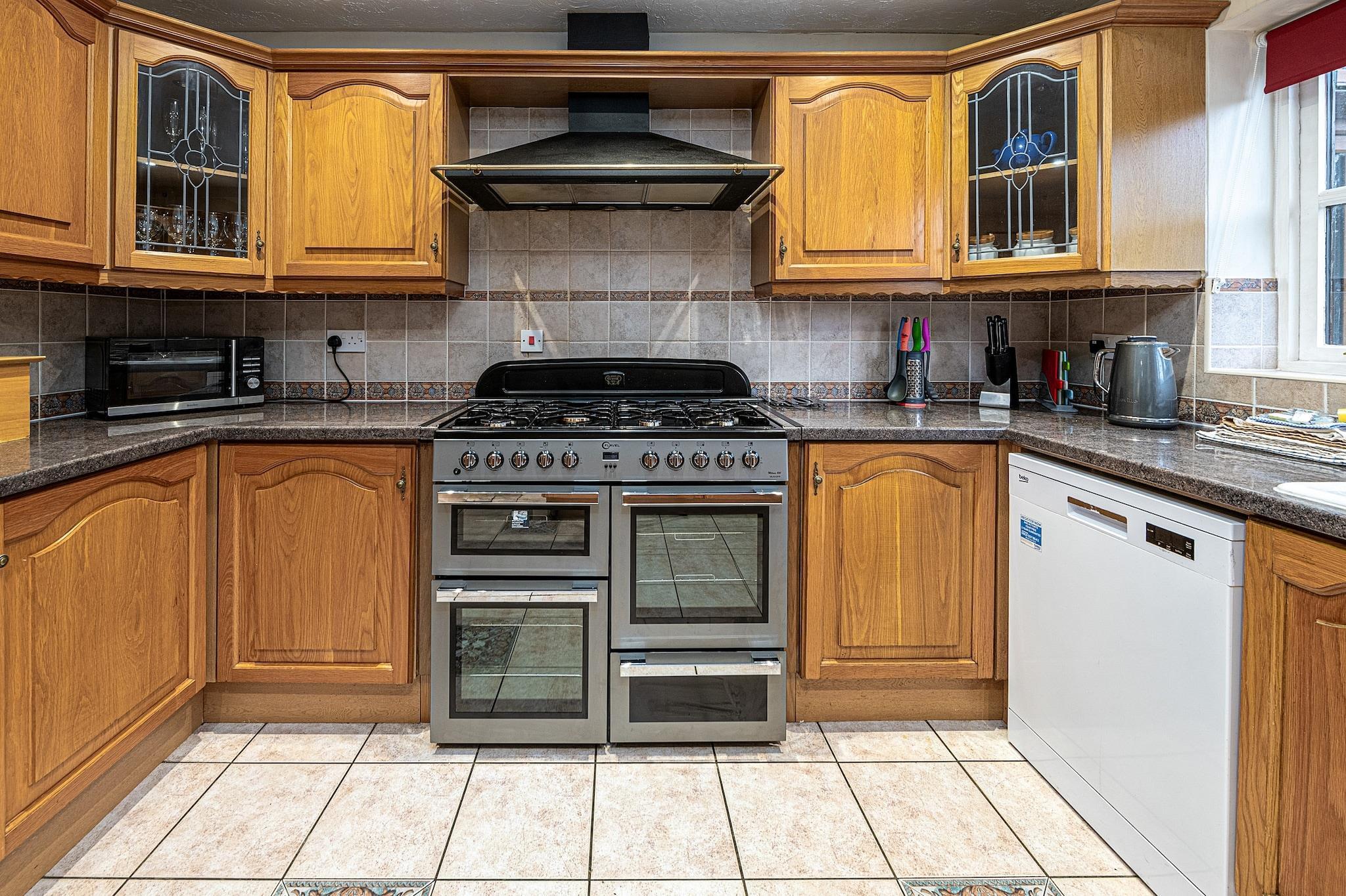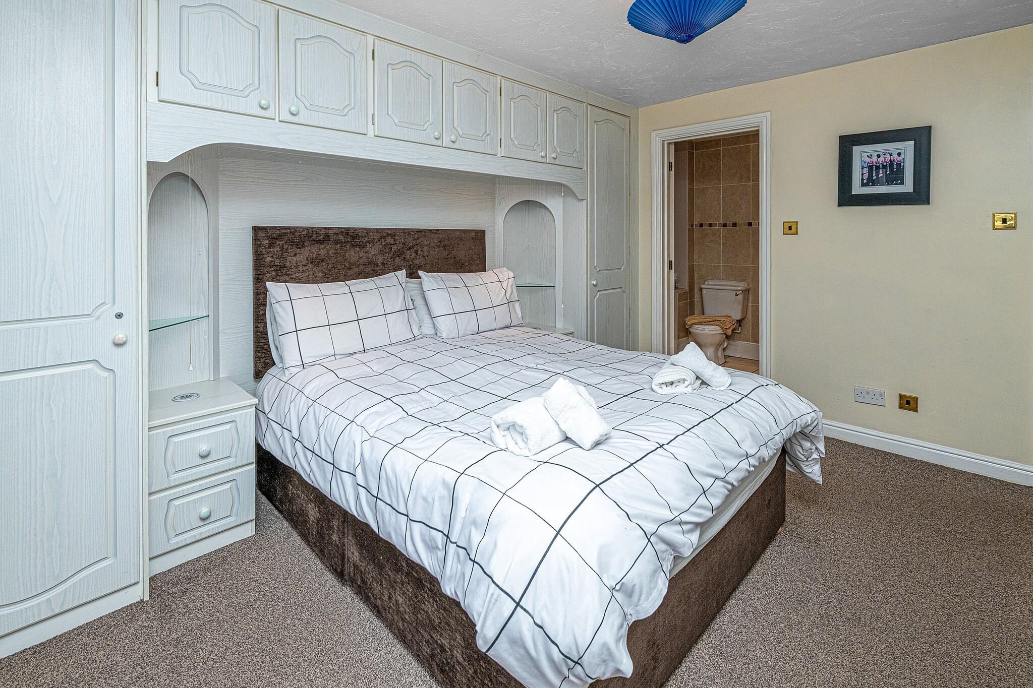 This modern, well-equipped five-bedroom house offers a spacious and comfortable retreat for up to 10 guests. Perfect for families or groups, the property features two king-size bedrooms with en-suite facilities, a double room, and two twin rooms, one of which includes a TV. The house boasts a range of amenities, including a large kitchen with a Rangemaster range, microwave, fridge/freezer, and dishwasher, as well as a utility room with a washing machine. The house also has a conservatory, a sitting room with an electric fire and basic SKY TV, and a snug with Freeview TV. Outside, the enclosed patio garden includes a summerhouse and offers breathtaking views of the Castell Dinas Brân ruins. Located just a four-minute walk from the heart of Llangollen, guests have easy access to local shops, pubs, and the town's attractions. The property is also within reach of scenic canal boat trips, water sports, and walking trails. For those looking to explore further, nearby National Trust properties like Chirk Castle and Erddig are easily accessible. Llangollen is situated close to the Offa’s Dyke Path, ideal for hiking enthusiasts, and the dramatic landscapes of Snowdonia are just an hour's drive away. Additional amenities include a travel cot, highchair, and stairgate for younger guests, along with off-road parking for three cars. The house is pet-friendly and welcomes two well-behaved dogs. For convenience, bed linen, towels, and Wi-Fi are provided, while a booking fee, security deposit, and optional accidental damage cover are additional costs.