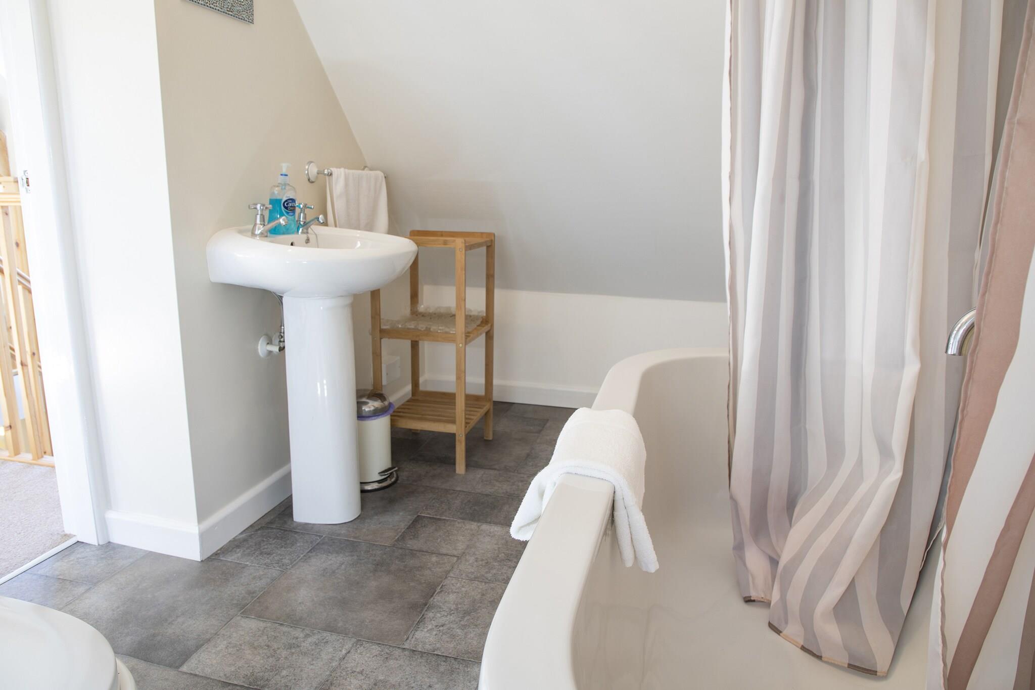 This charming and luxurious one-bedroom cottage is perfect for couples or solo travelers seeking a peaceful country retreat. Located in a converted 19th-century barn, the property features a spacious open-plan living and dining area with comfortable seating, an oak fireplace, and underfloor heating. The kitchen is fully equipped with an oven, hob, dishwasher, microwave, toaster, fridge-freezer, and washing machine, making it ideal for self-catering. The cottage accommodates one well-behaved dog and includes a small cot for an infant upon request. A private parking area is also provided for added convenience. The cottage is nestled in a tranquil rural location near Llangollen, offering stunning views of Castell Dinas Bran and the surrounding Dee Valley. This picturesque setting allows guests to enjoy both the serenity of the countryside and easy access to Llangollen’s vibrant tourist amenities. The area is renowned for its scenic walking trails, and local maps and guides are provided to help guests explore the stunning landscape. The nearest public footpaths and lanes offer ample opportunity for outdoor exploration, with nearby towns and attractions also easily accessible. The upstairs bedroom features a king-sized bed and exposed oak beams, offering breathtaking views of the valley and mountains. The en-suite bathroom includes a double-ended roll-top bath and an over-bath shower for a relaxing retreat. The enclosed courtyard outside features garden furniture, providing a peaceful space to enjoy the surroundings. Bed linens, towels, and a complimentary welcome pack with locally sourced luxuries are provided for guests’ comfort.
